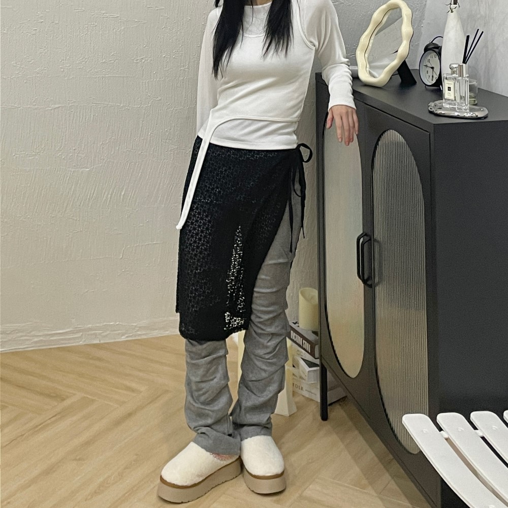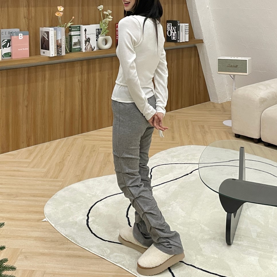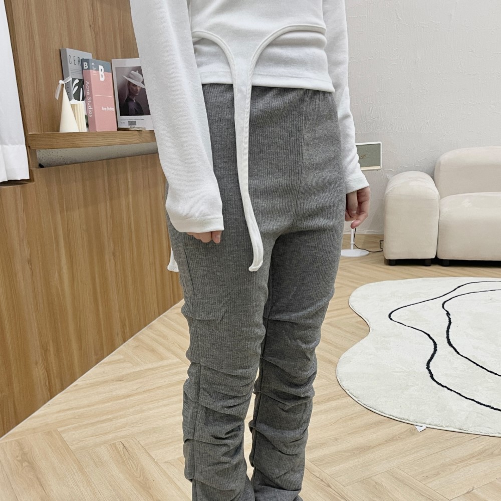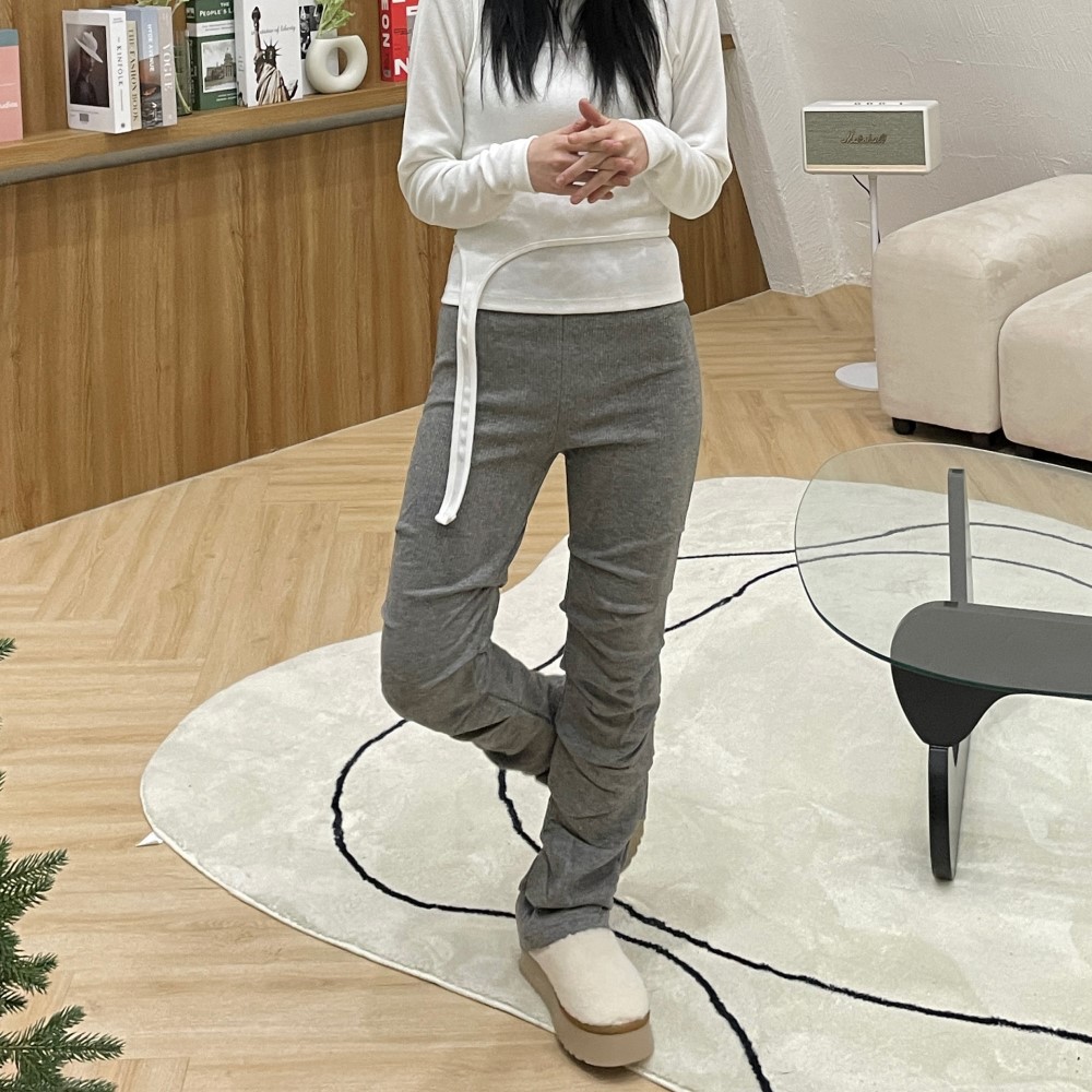 シャーリングリブバレエコアブーツカットタック入りパンツ