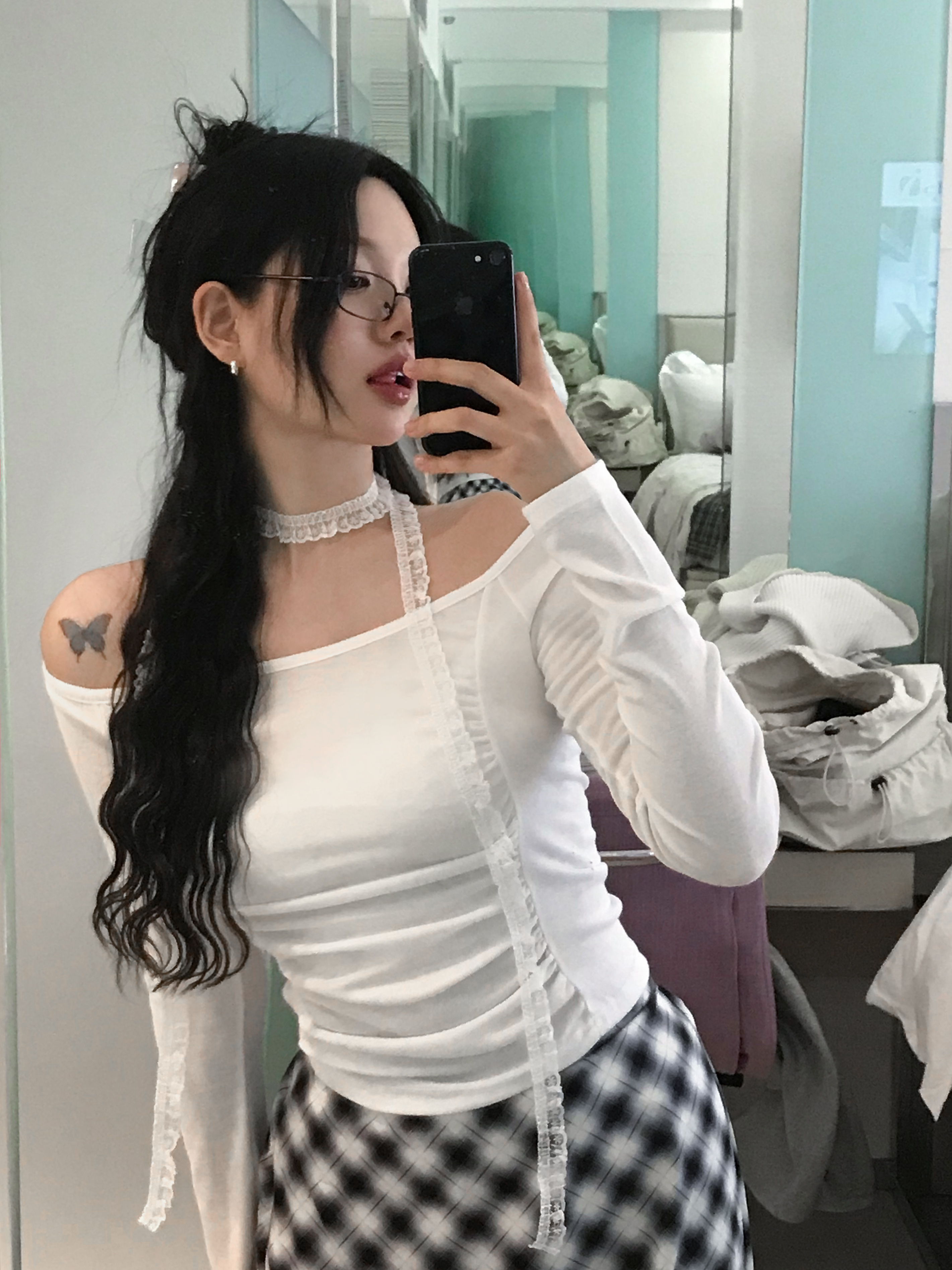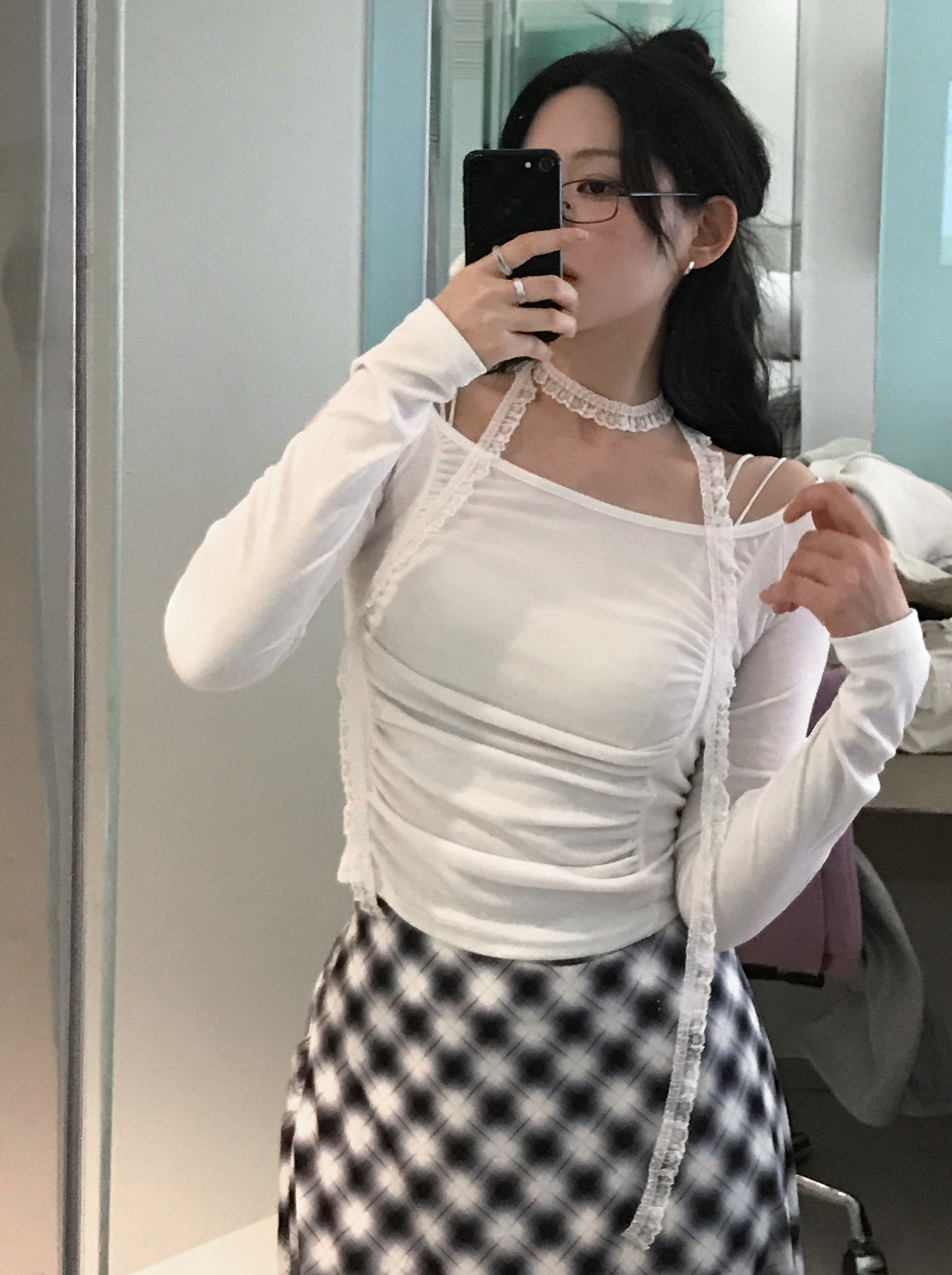 [2pcs]レースタイシャーリングTシャツセット