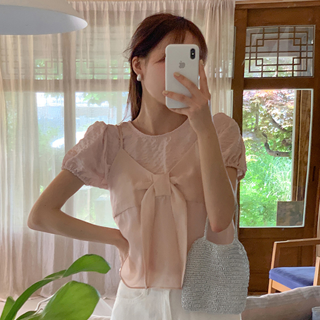 [original]リンクルシャーリングパフ夏半袖ブラウス(3color)