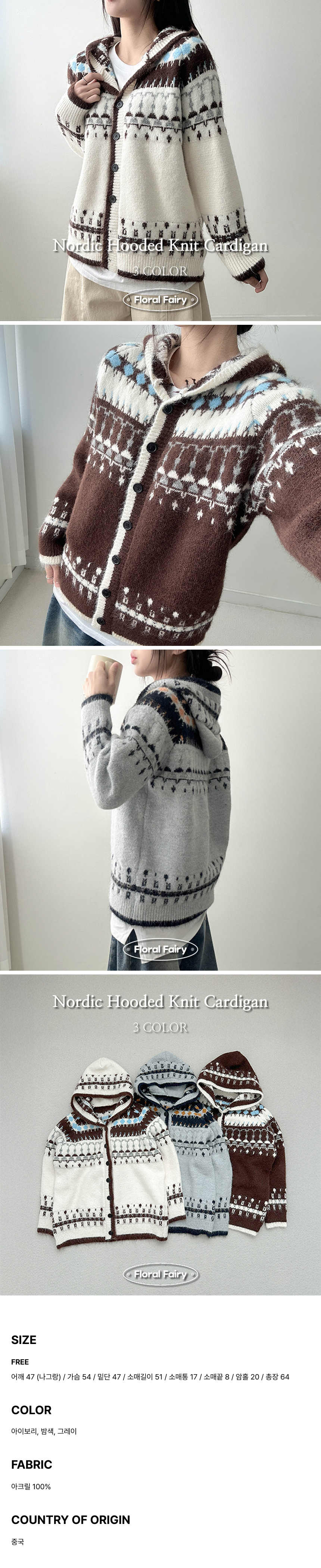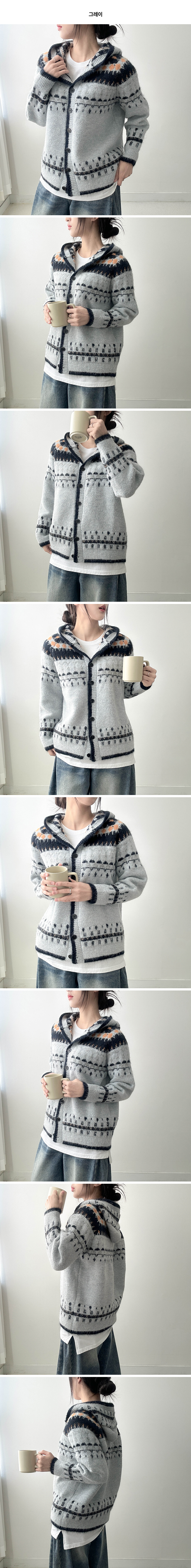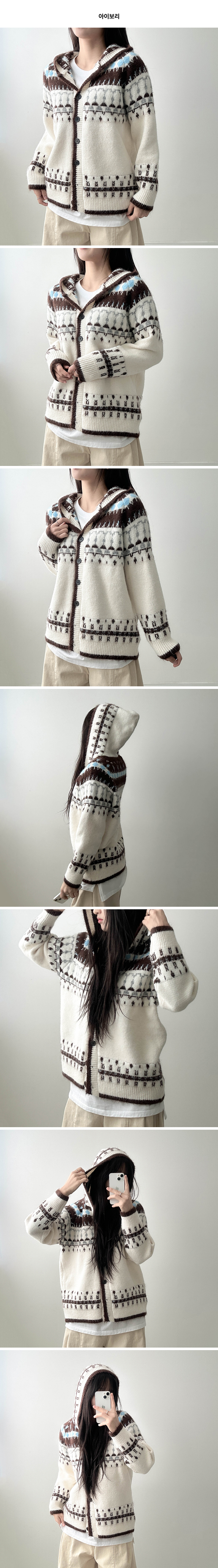 ノルディックVネックフードカーディガン