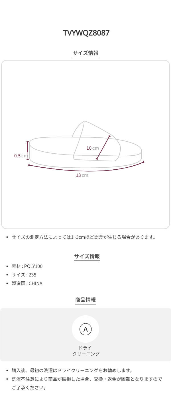 サイズの測定方法によっては1~3cmほど誤差が生じる場合があります。