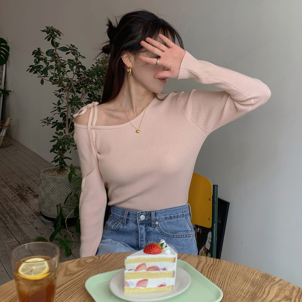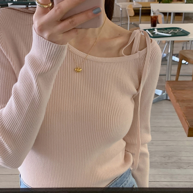 [long&short 2ver] リボンワンショルダーリブスリットニット(6color)