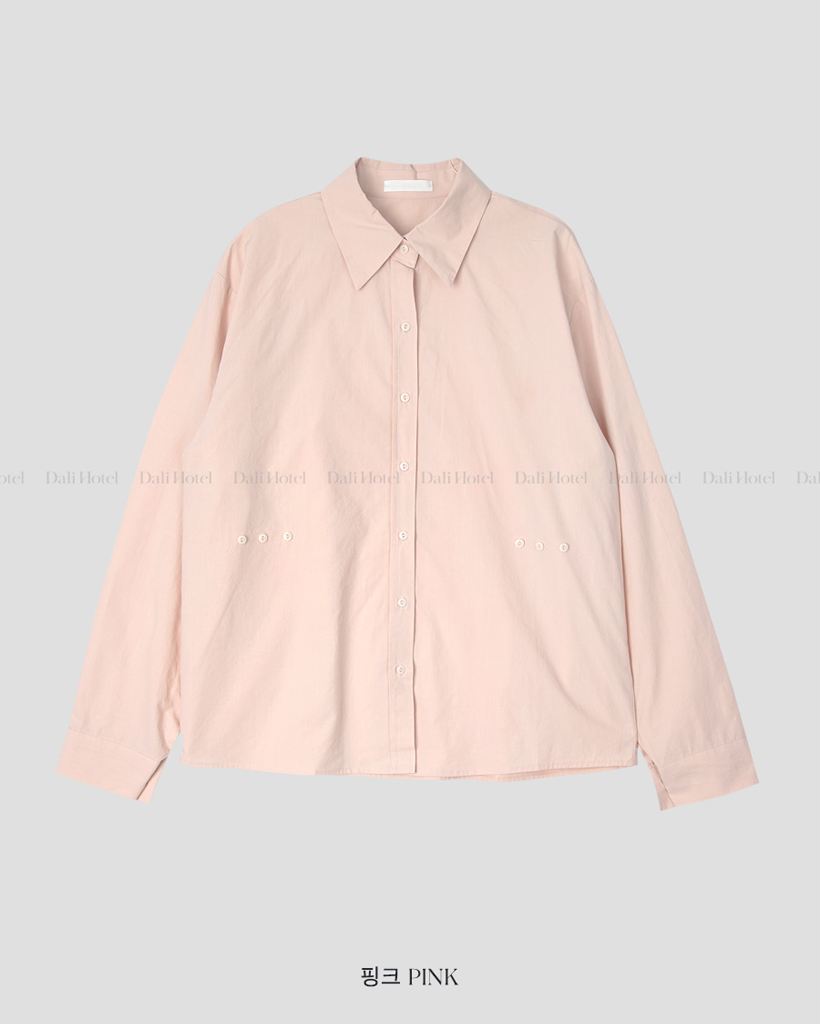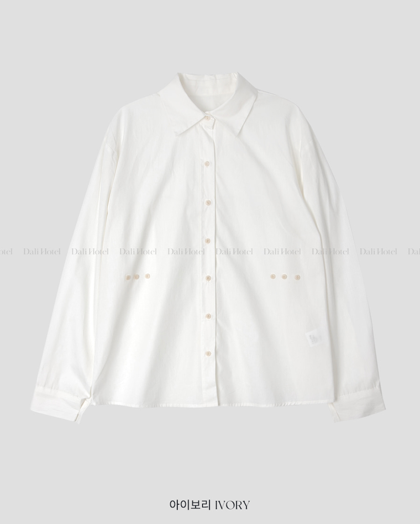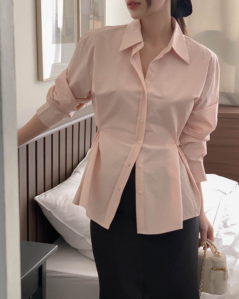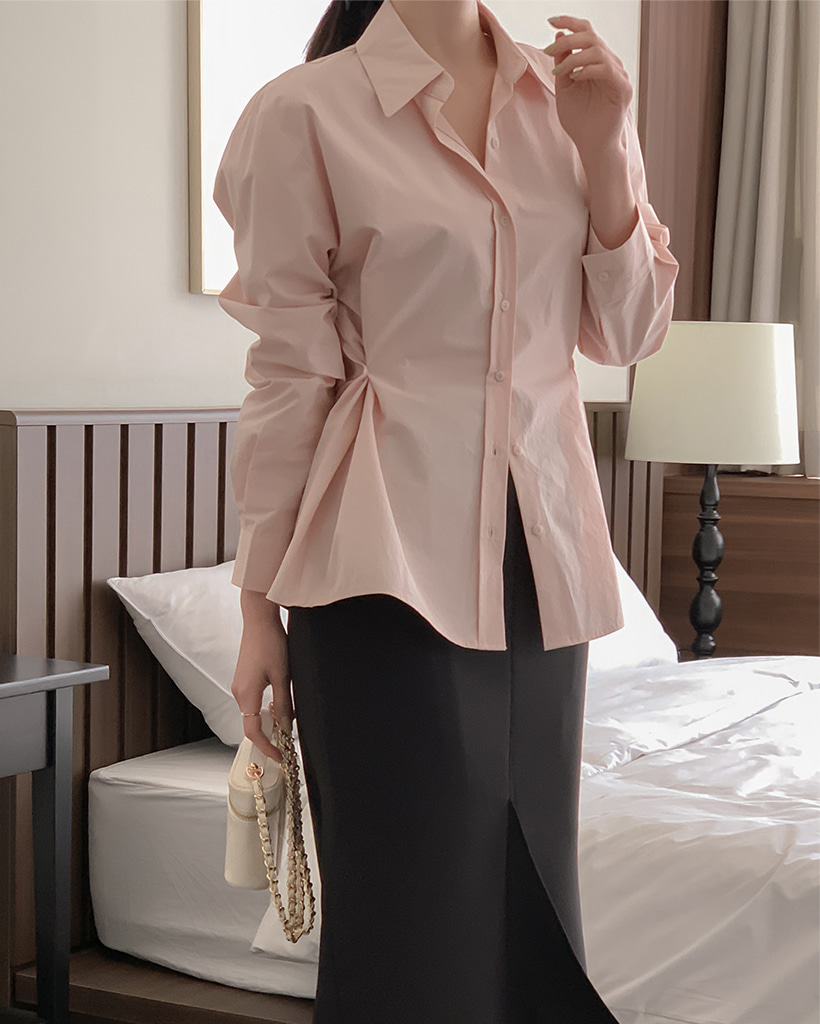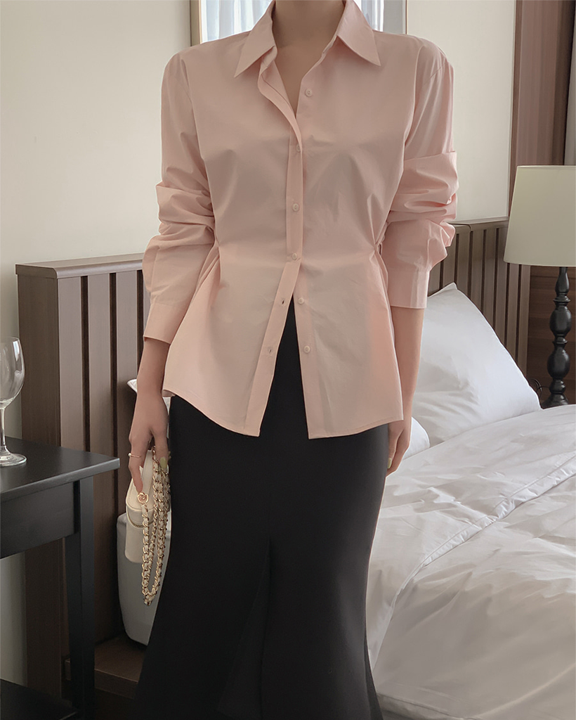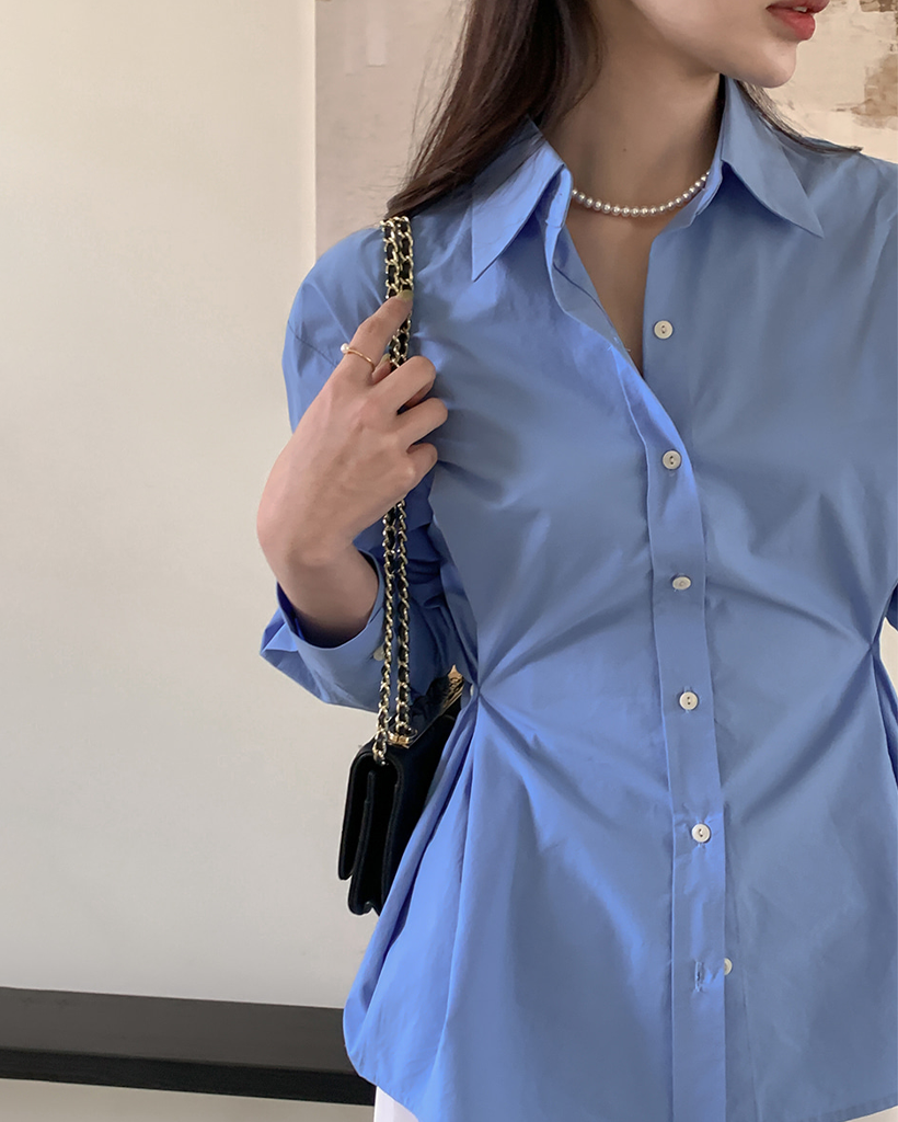 Vネックピンタックコットンシャツ