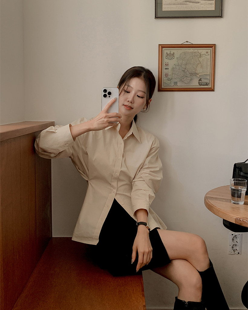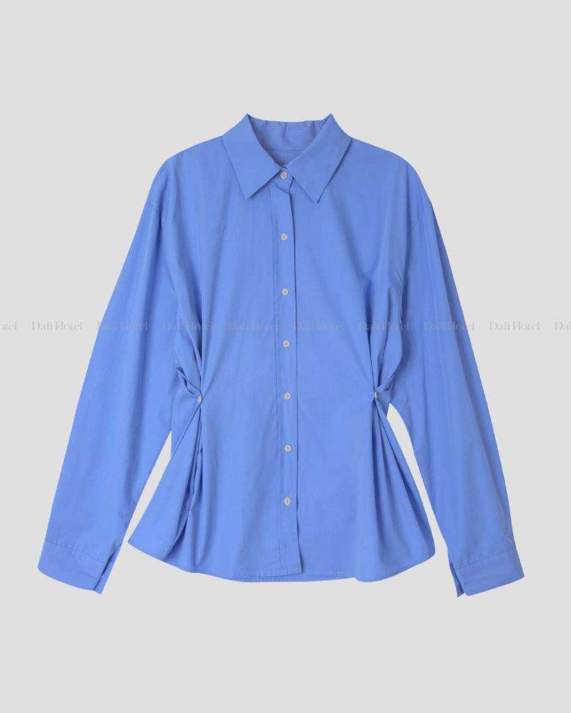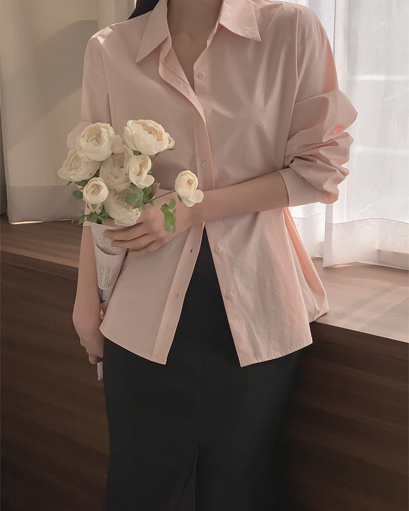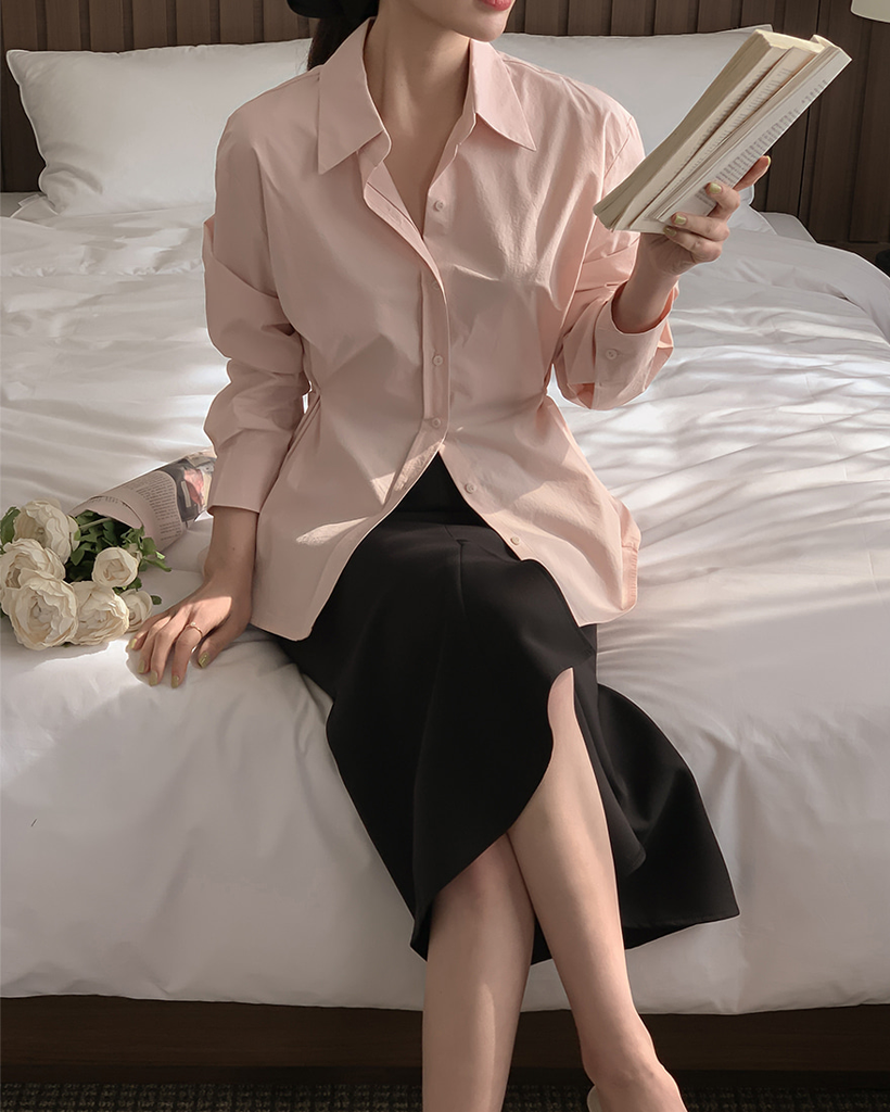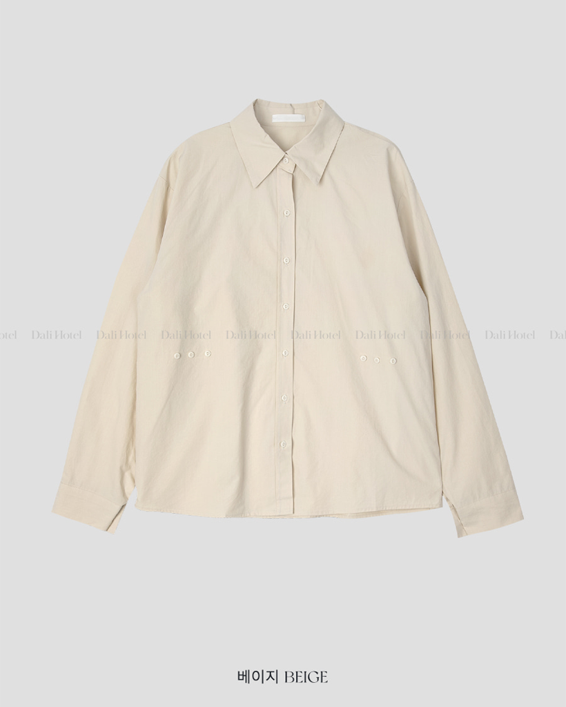 Vネックピンタックコットンシャツ