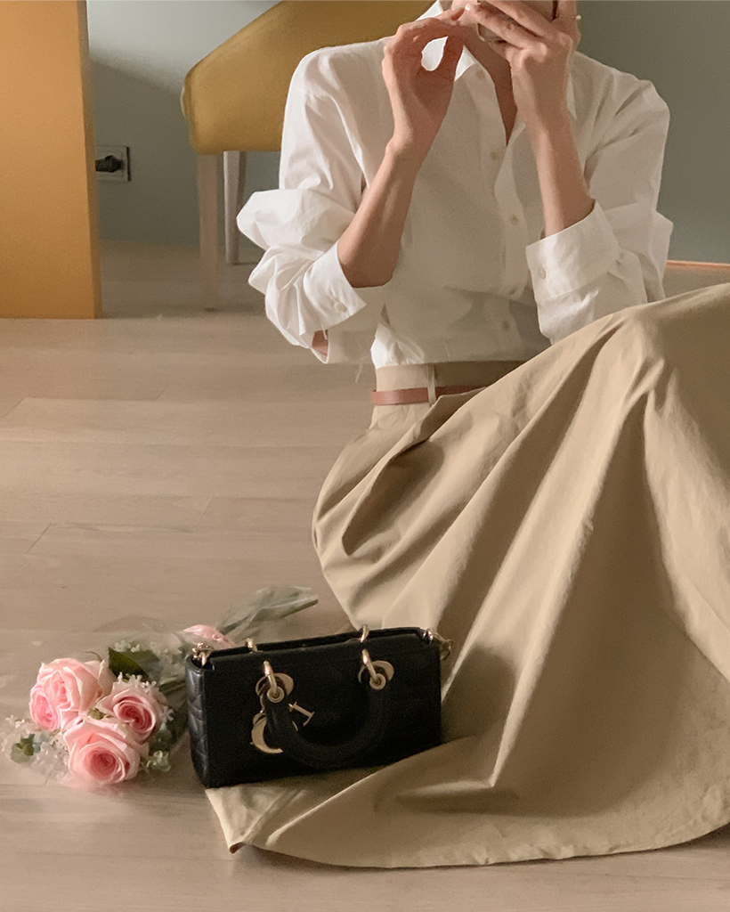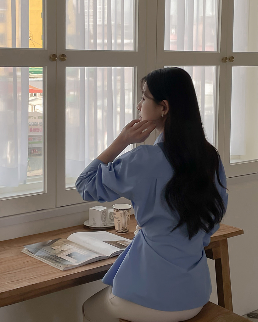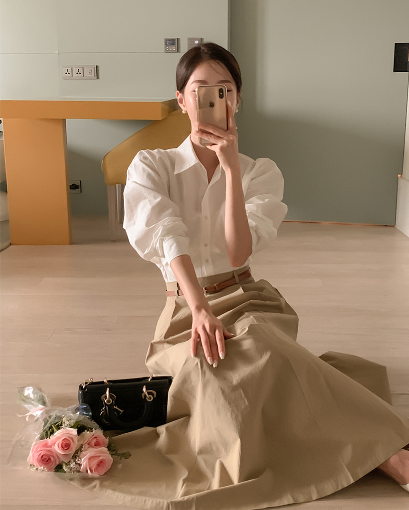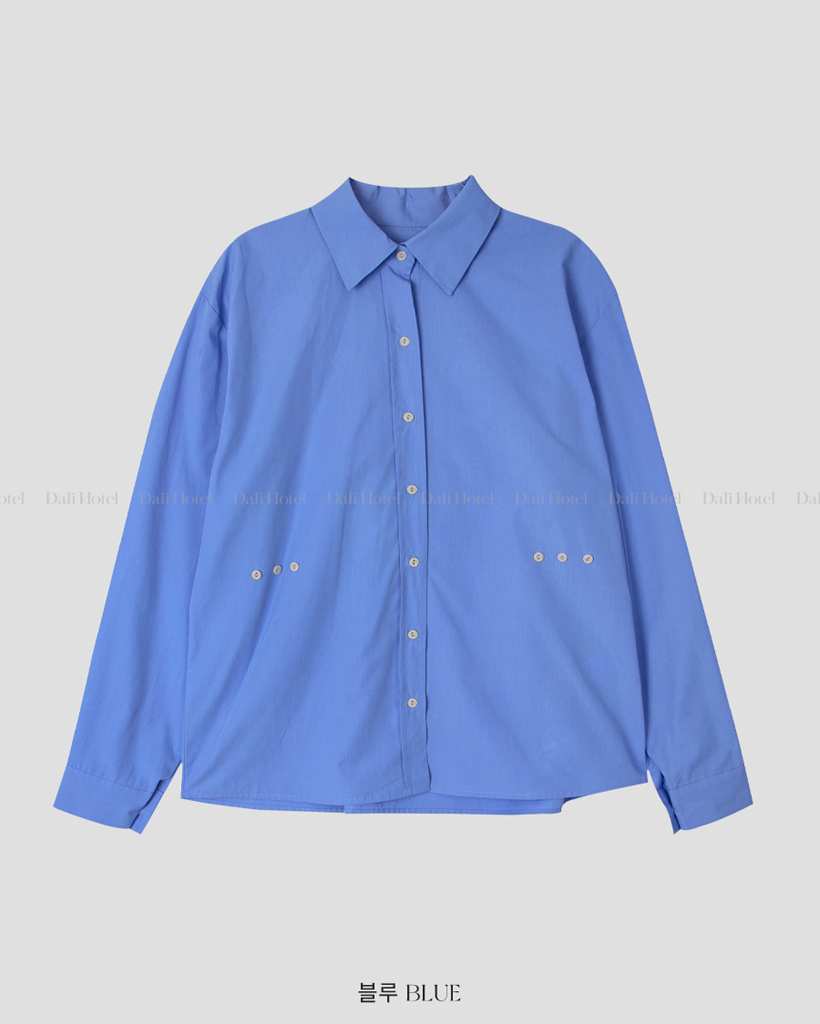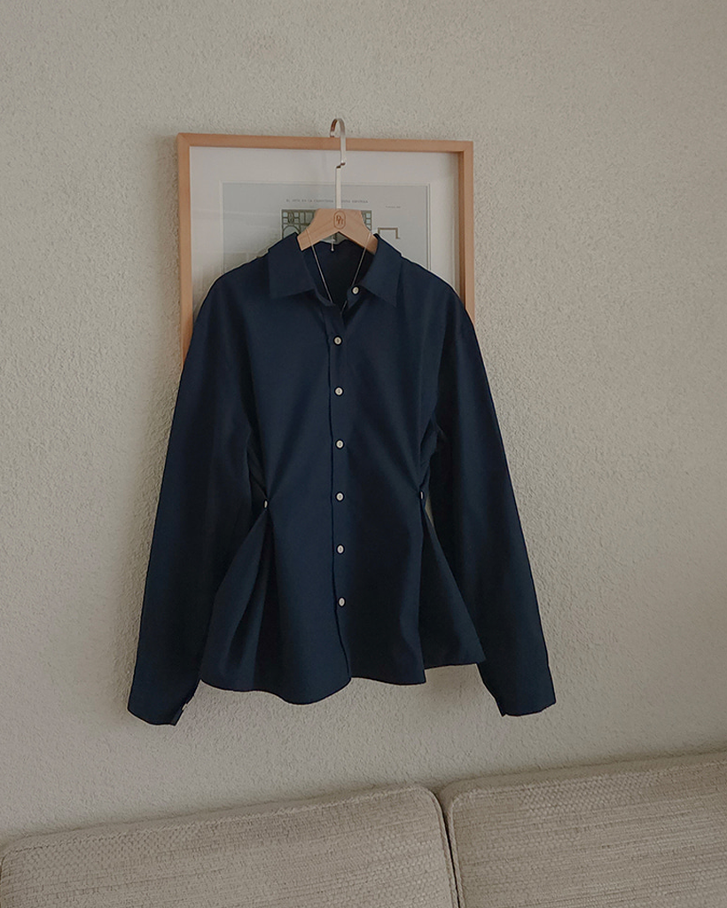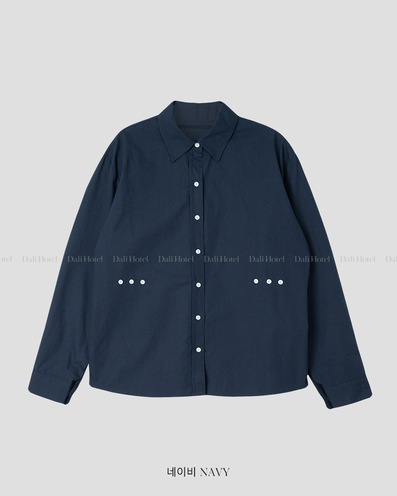 Vネックピンタックコットンシャツ