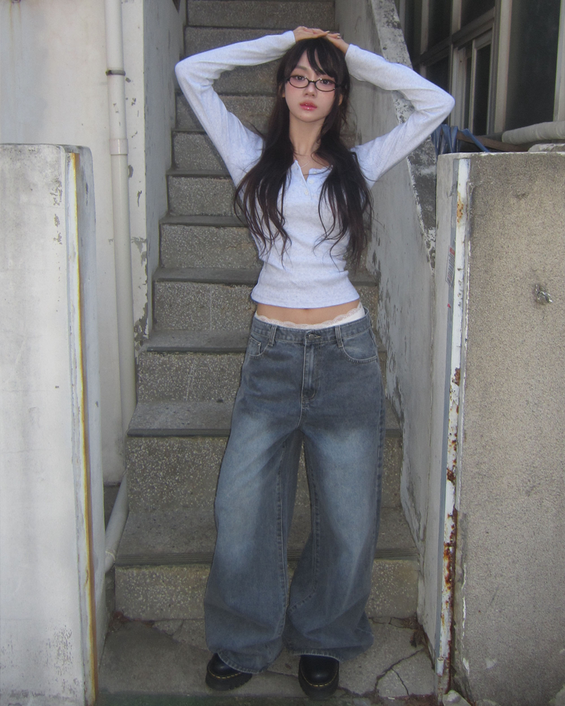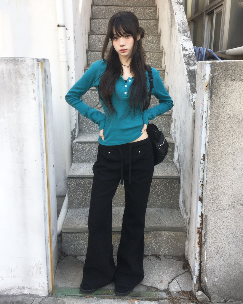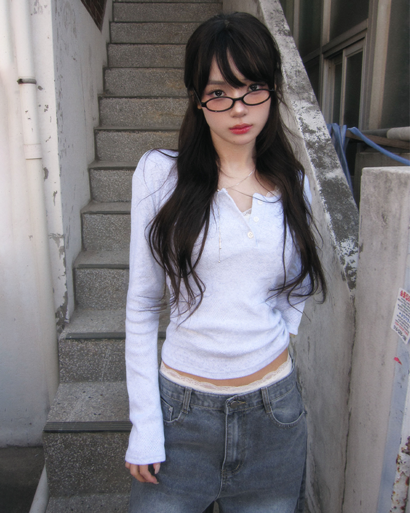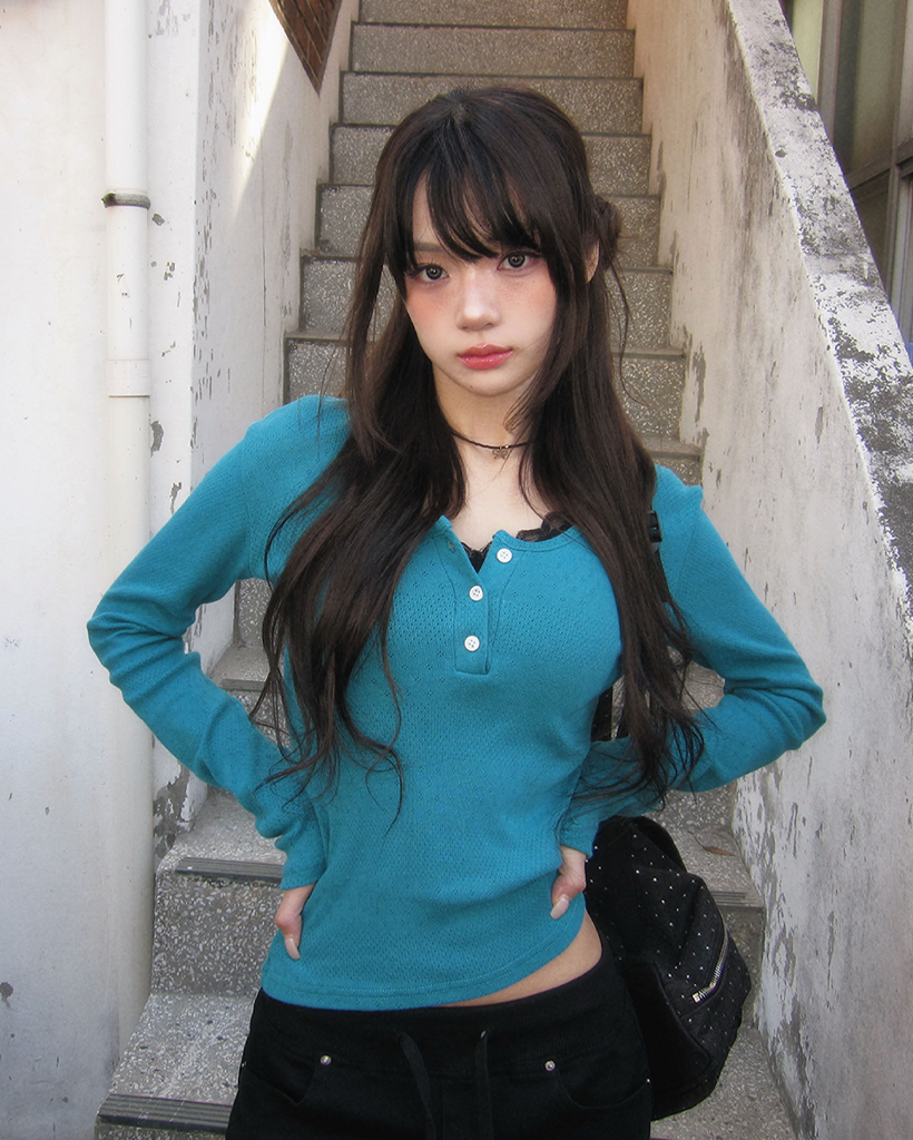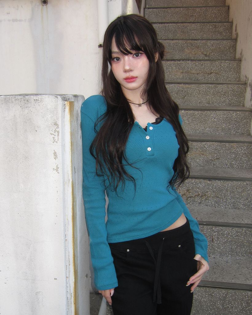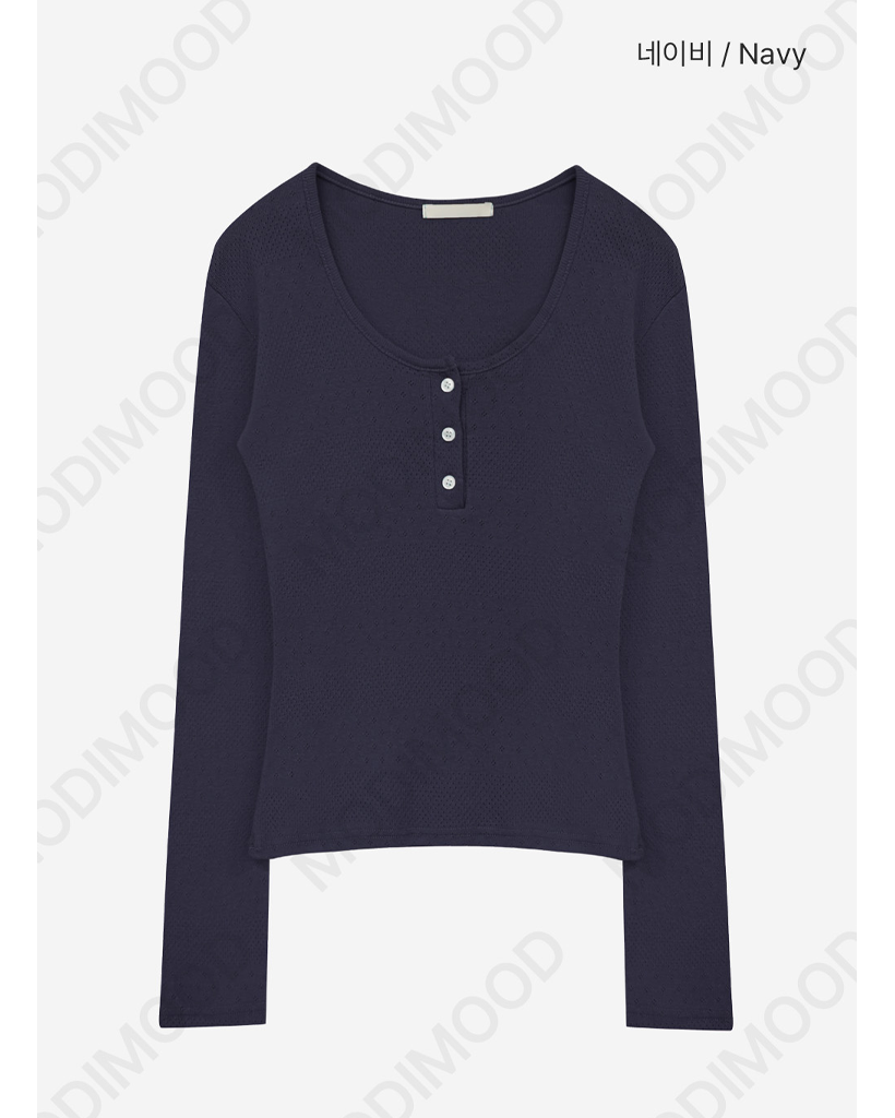 (4color)ヘンリーネックパンチングTシャツ