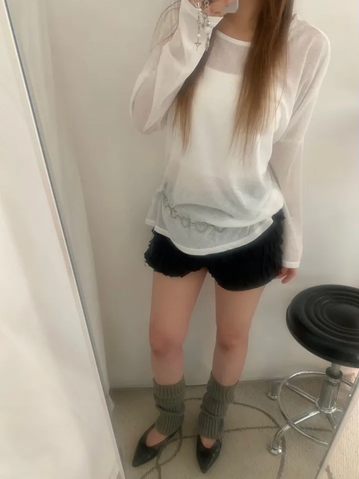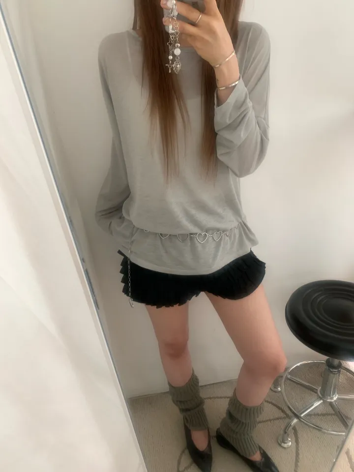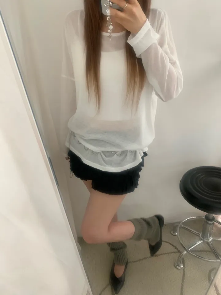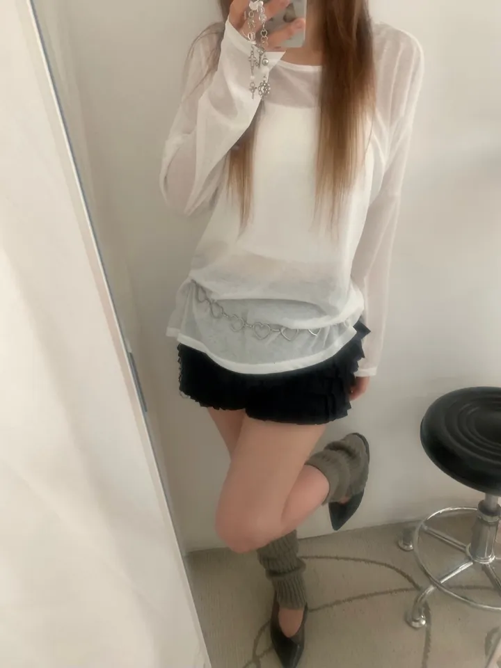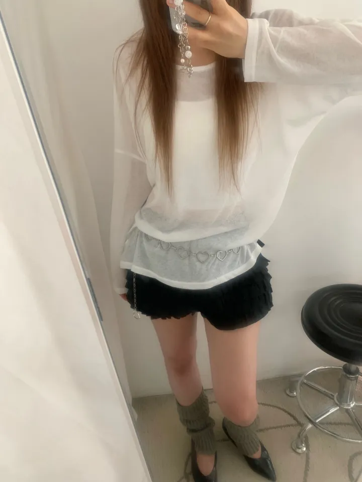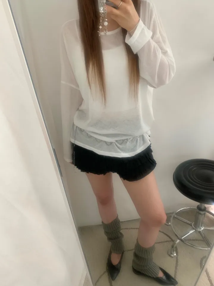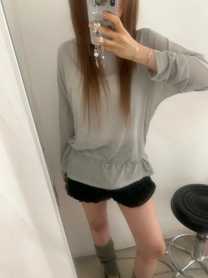 シースルーバックスリットアイレットルーズTシャツ