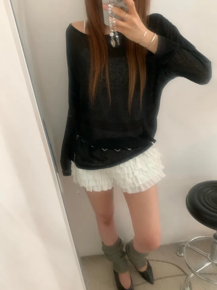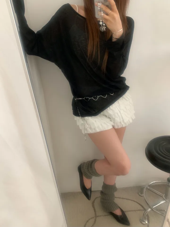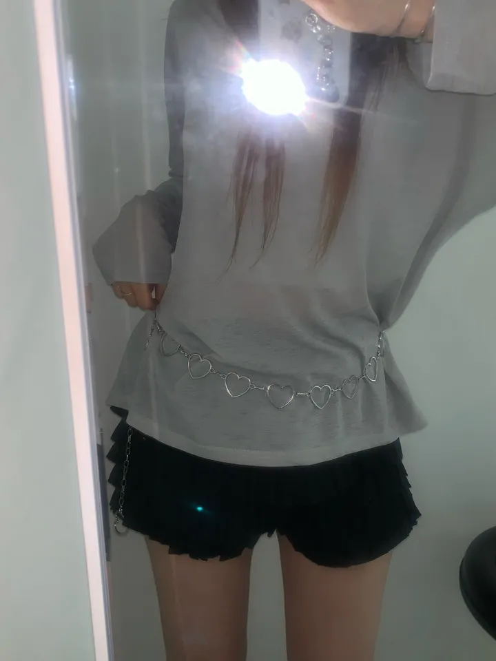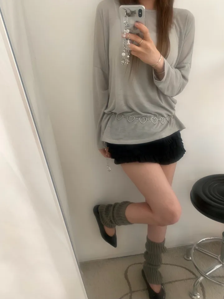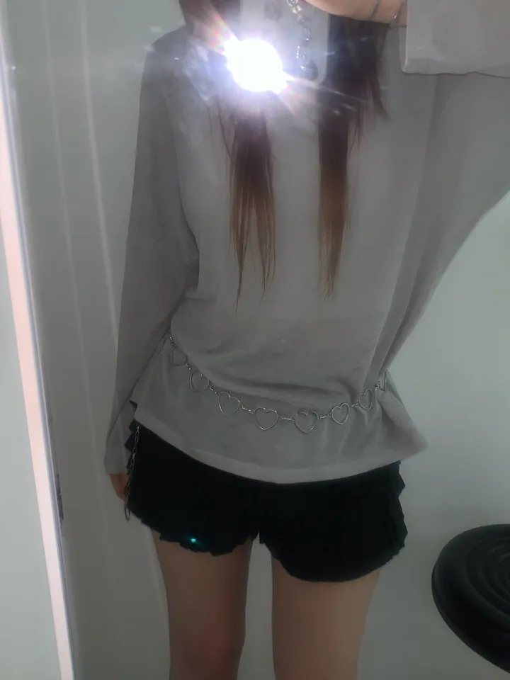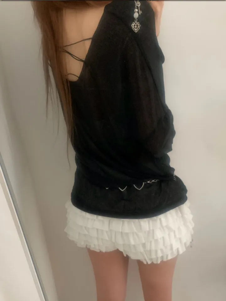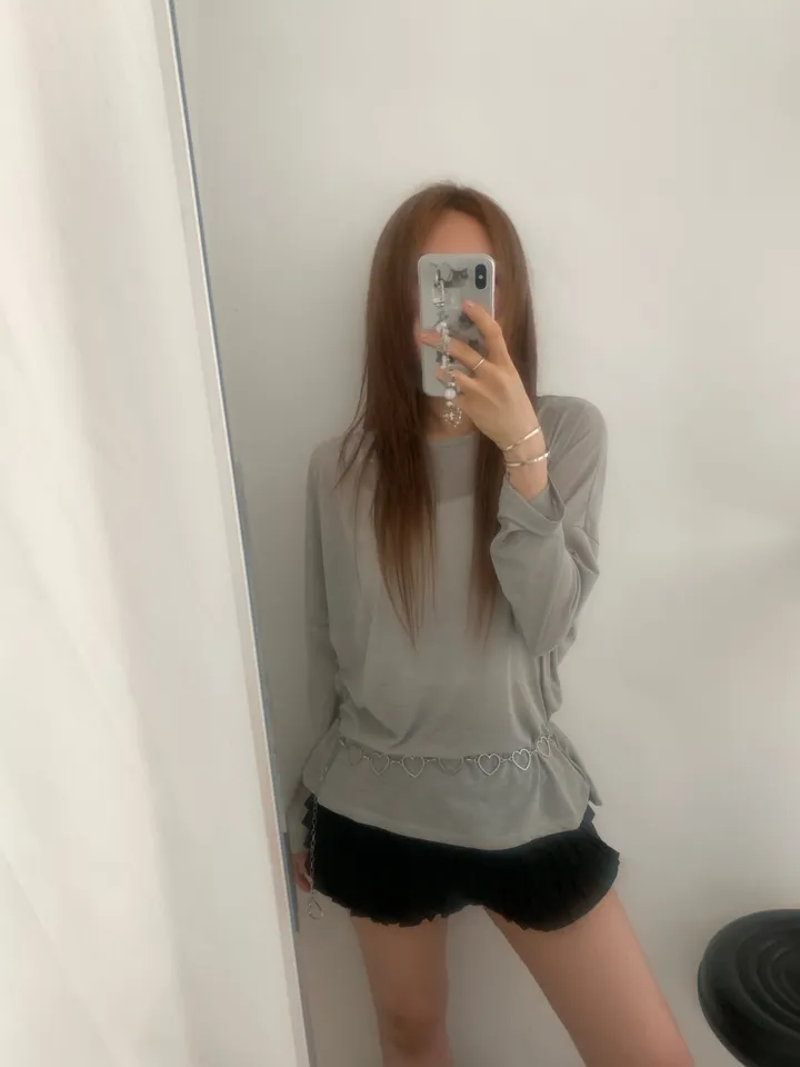 シースルーバックスリットアイレットルーズTシャツ