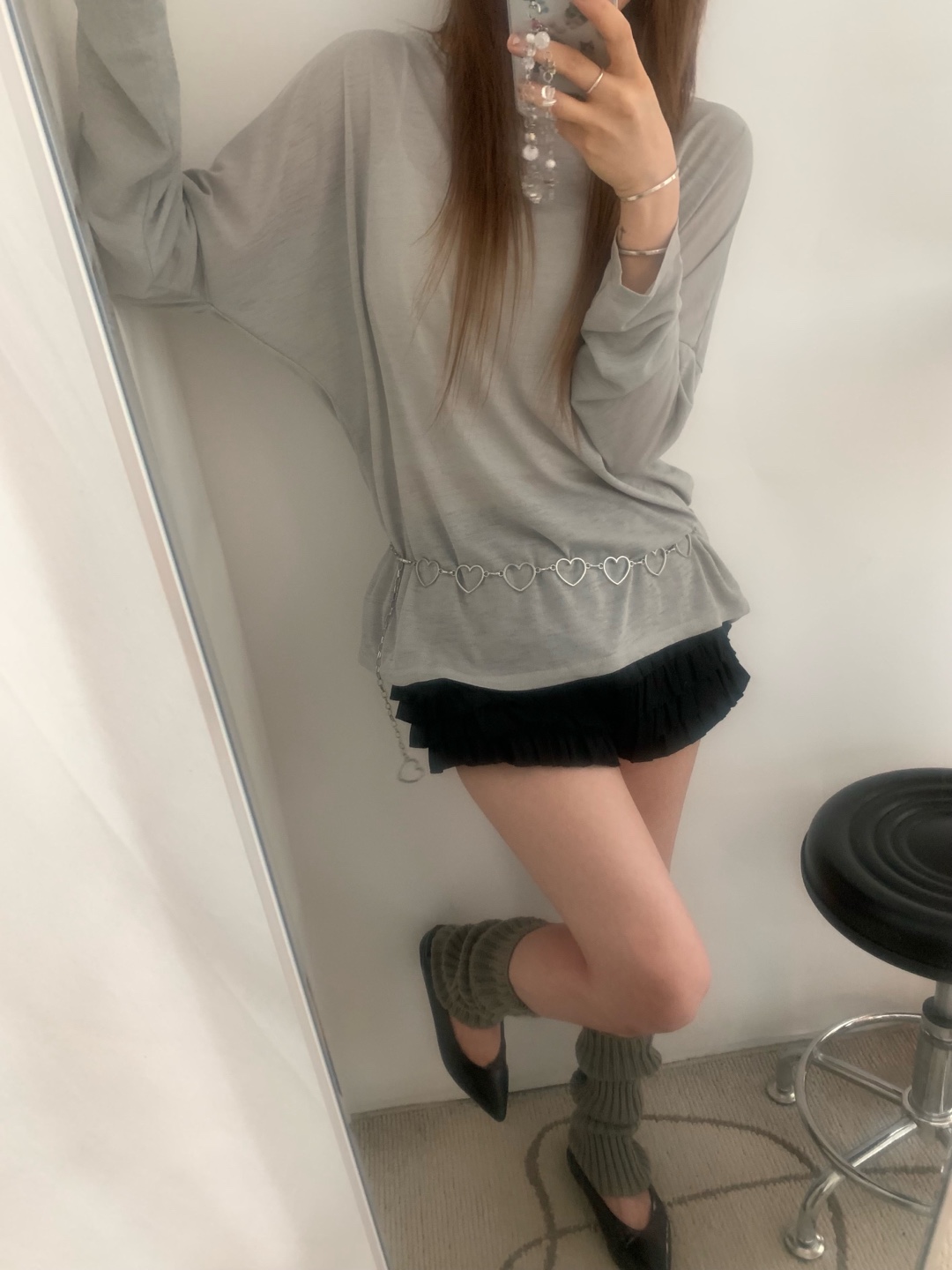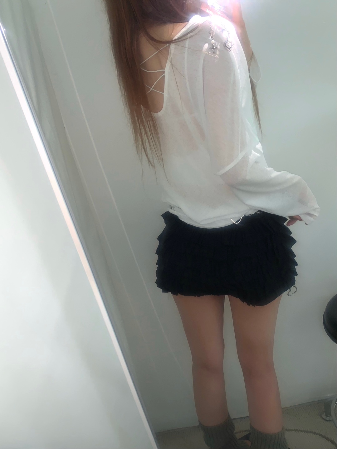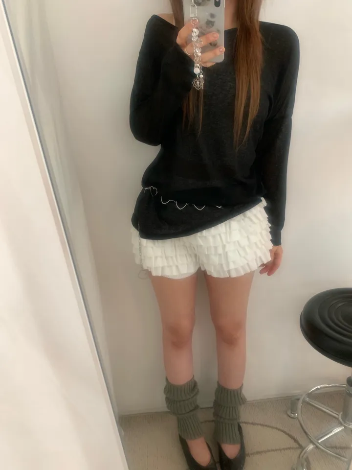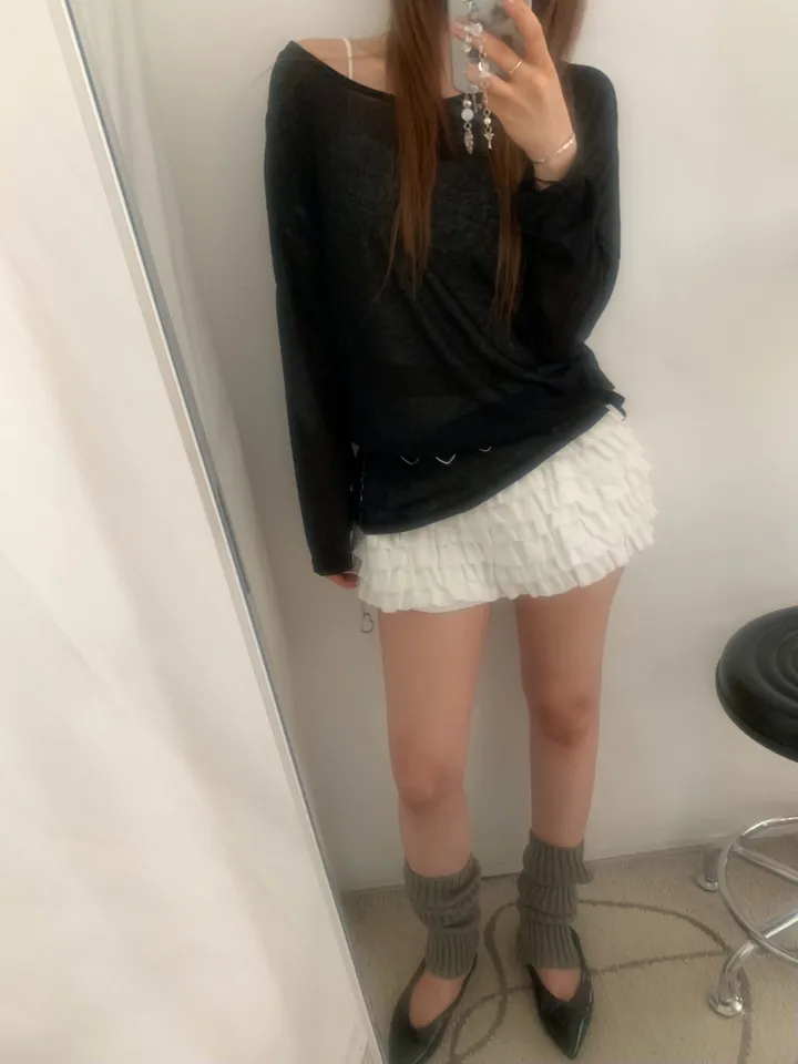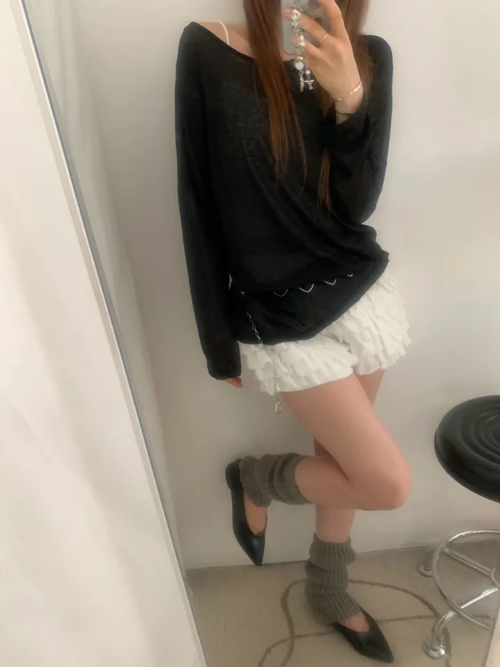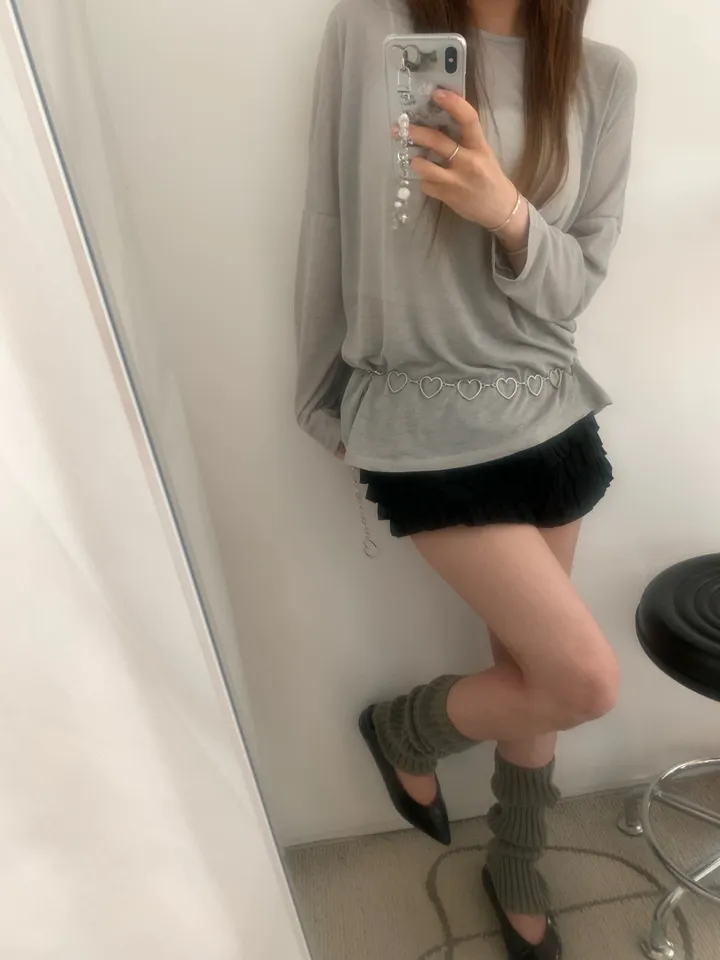 シースルーバックスリットアイレットルーズTシャツ