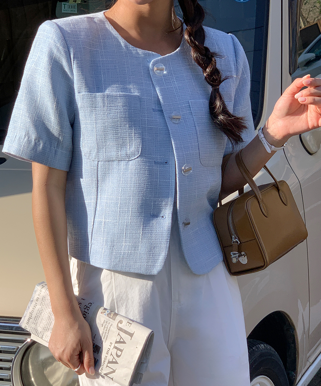 【オケージョン】[original/S-XL]ツイード半袖ジャケット
