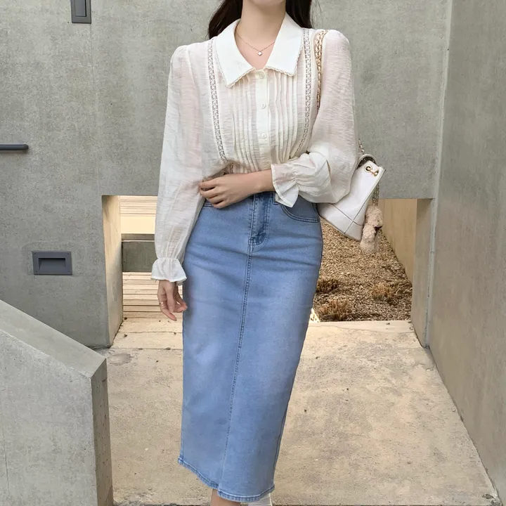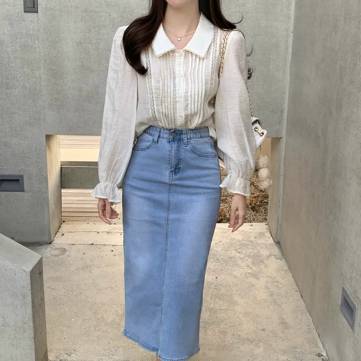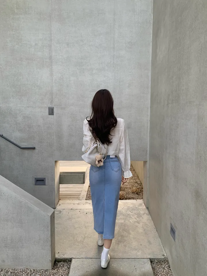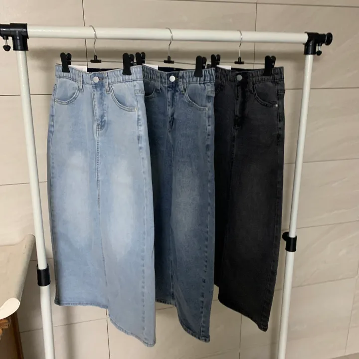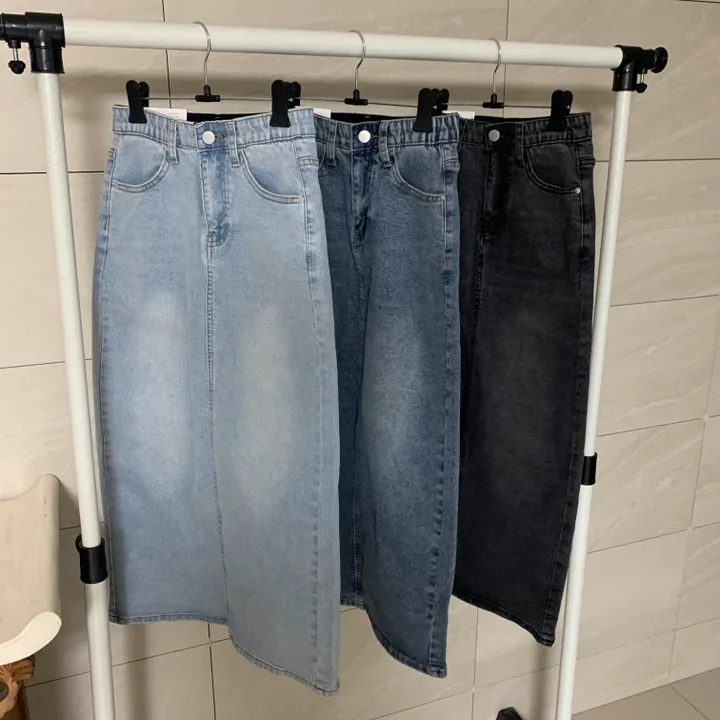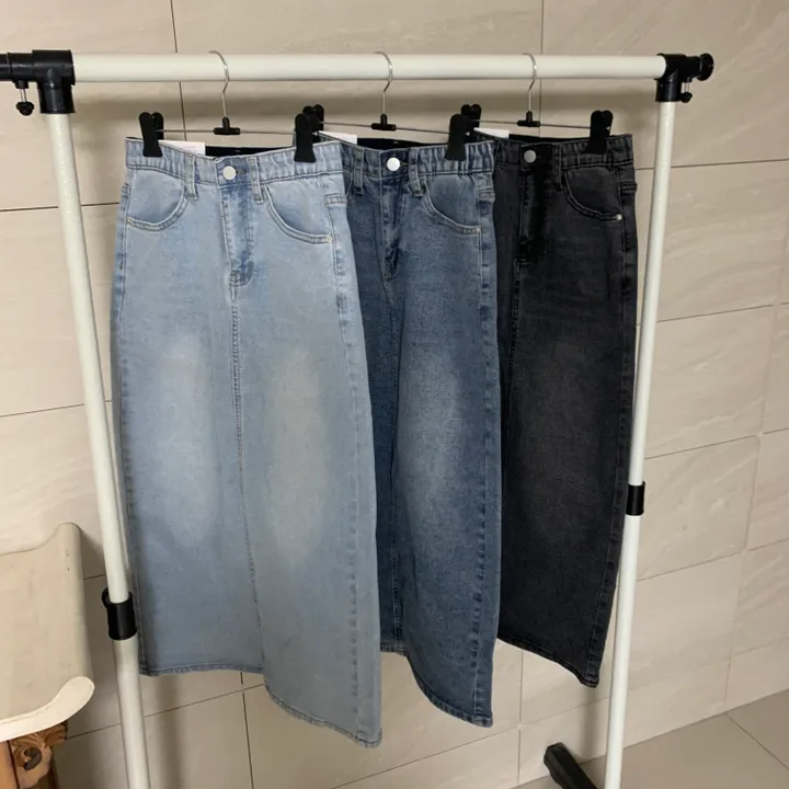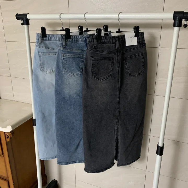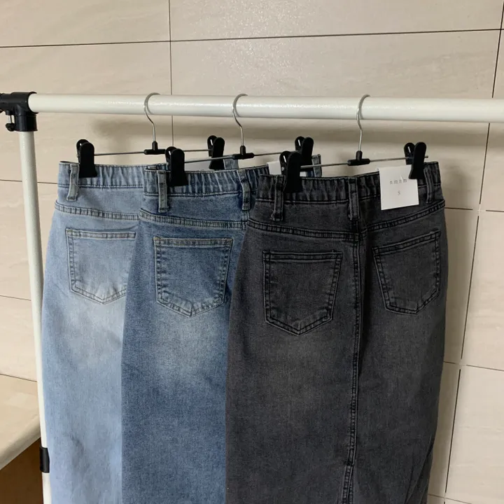Hラインデニムバックスリットロングスカート