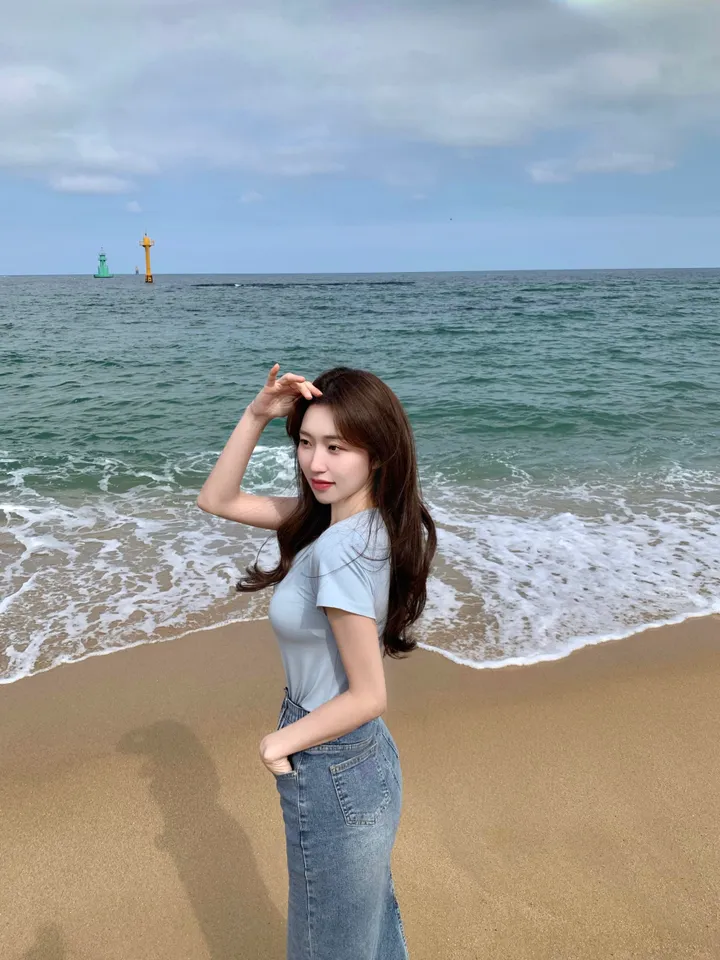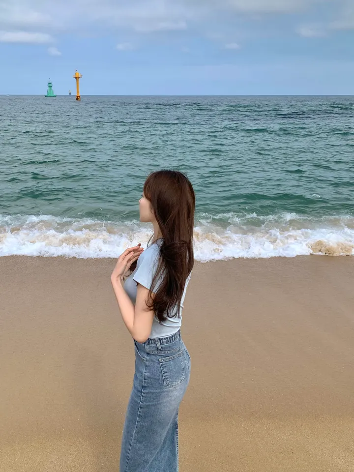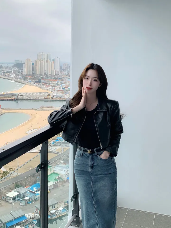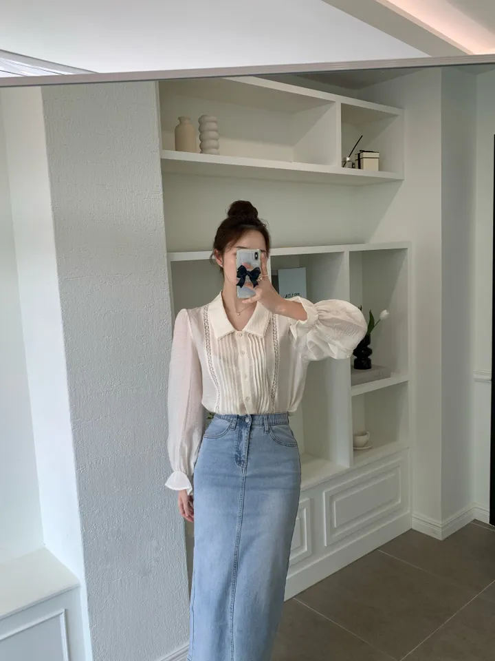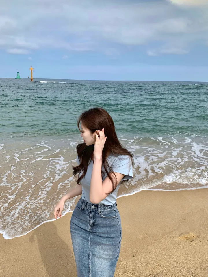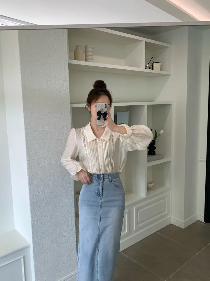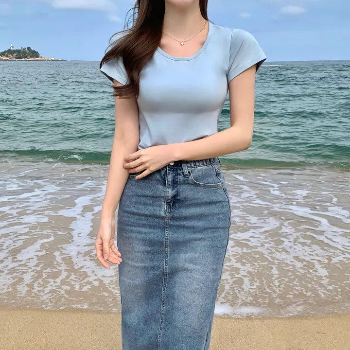 Hラインデニムバックスリットロングスカート