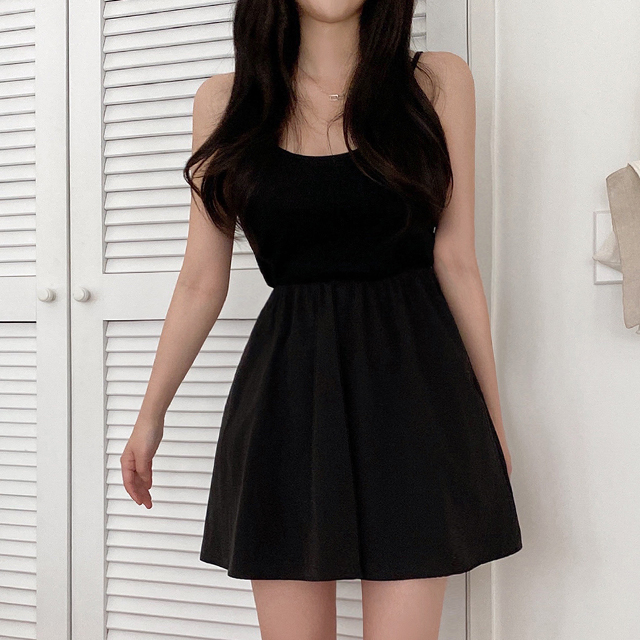 ノースリーブレイヤードビスチェビッグサイズフレアスカートワンピース