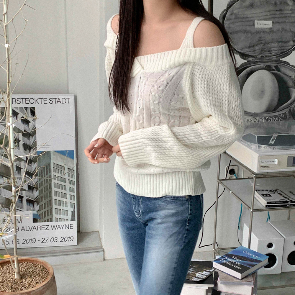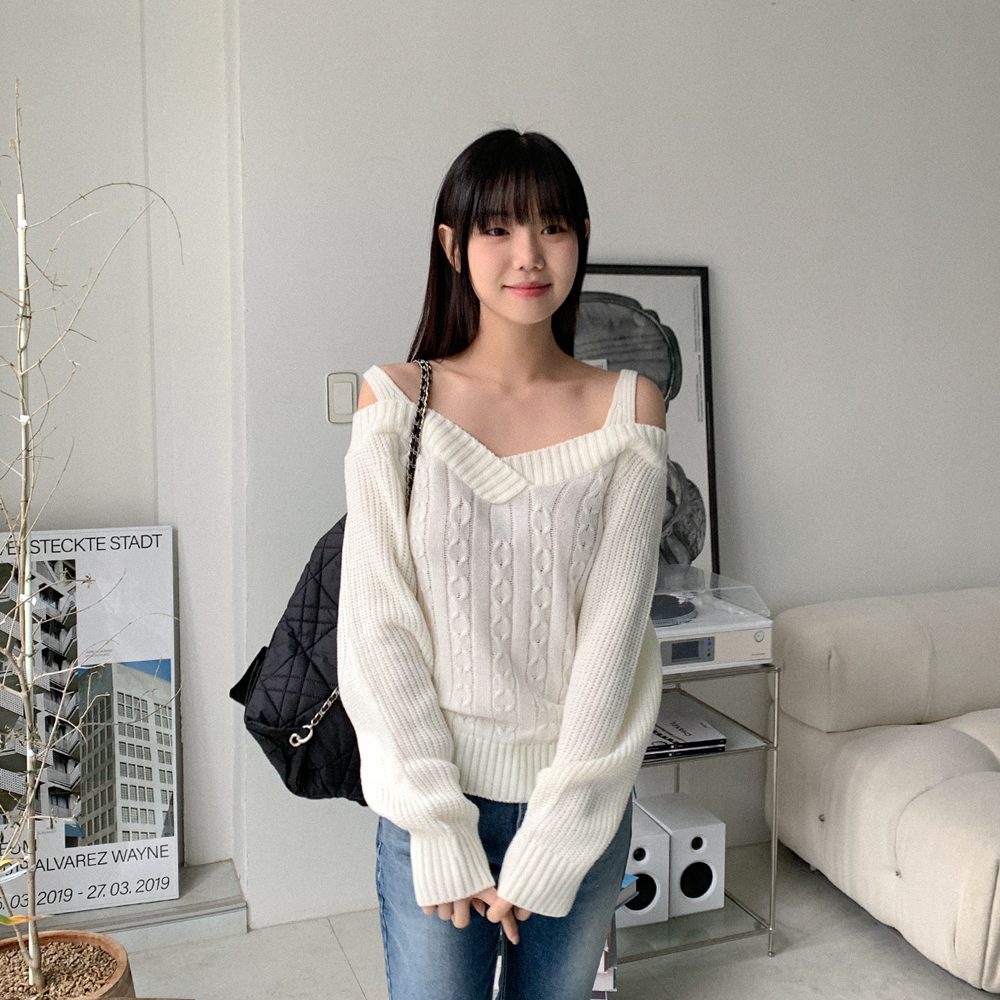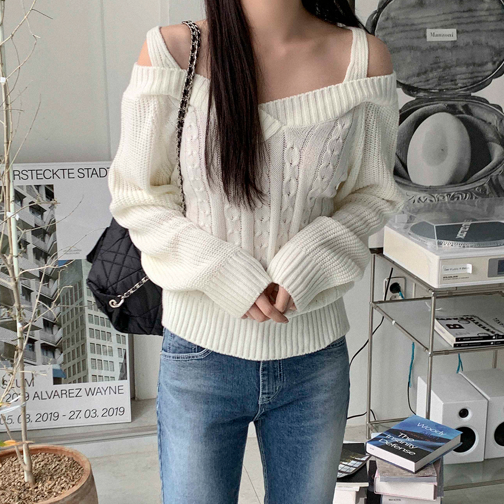 ツイストオフショルニット
