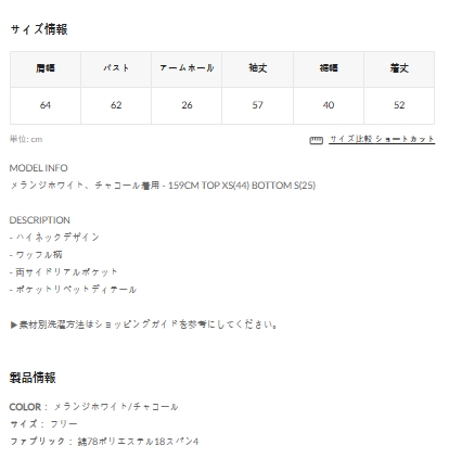 MELANGE WHITE 159CM TOP XS(44) BOTTOM S(25)