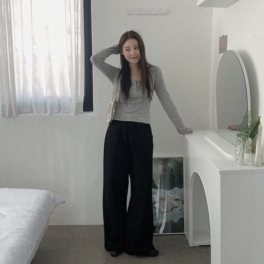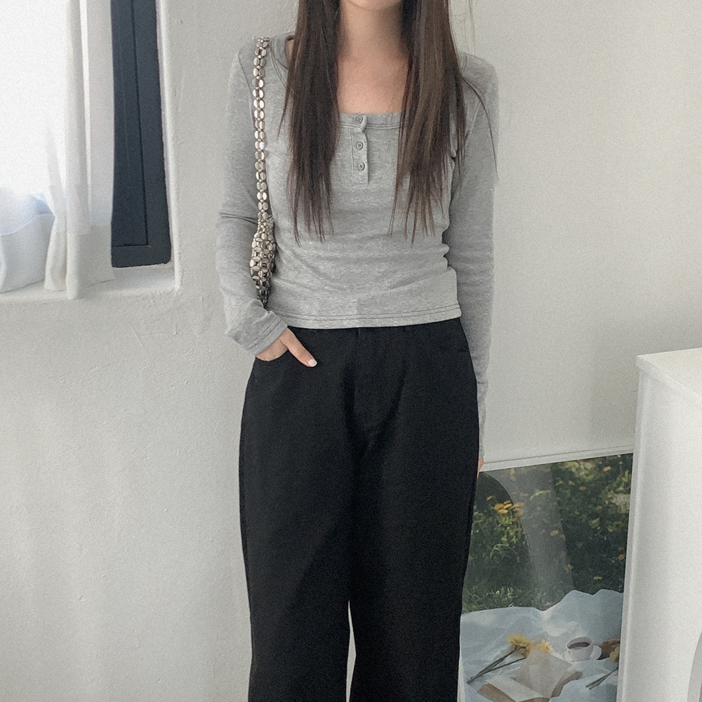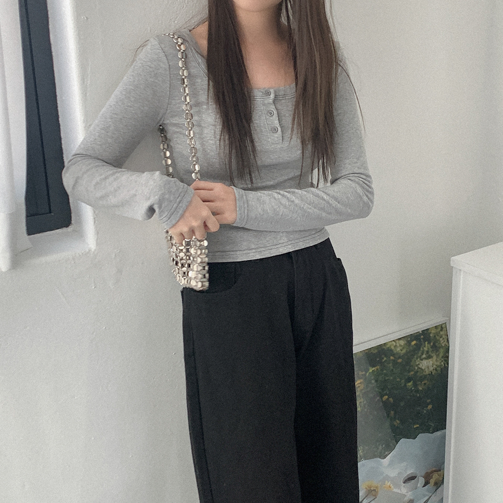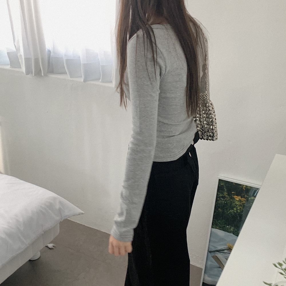 裏起毛 Uネック ボタン付き Tシャツ