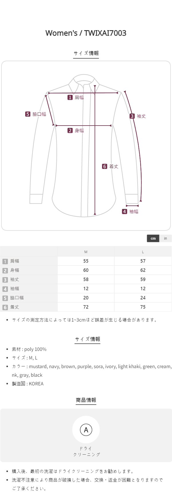 BLACK / GRAY / IVORY / CREAM / GREEN / LIGHT KHAKI / PINK / SORA / PURPLE / BROWN / NAVY / MUSTARD