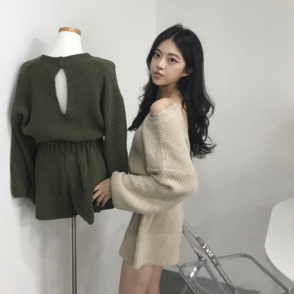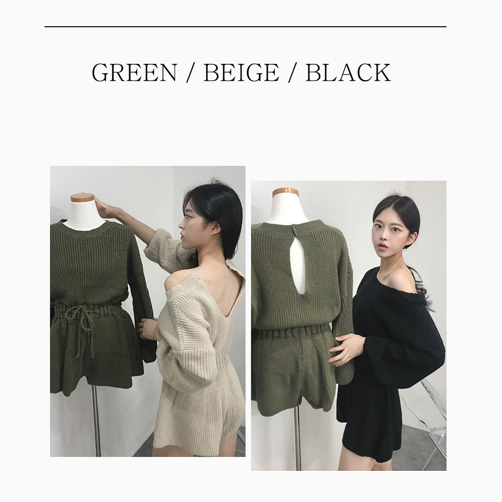 2WAYバックスリットニットショートパンツジャンプスーツ