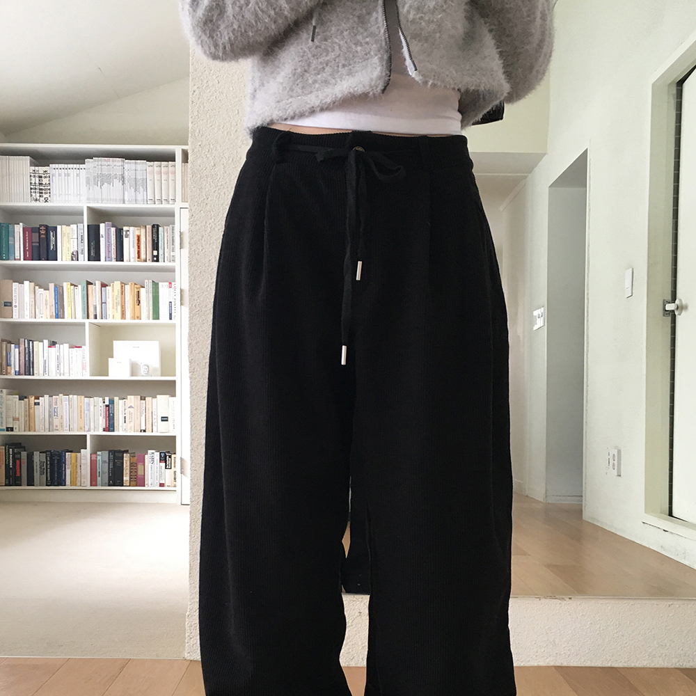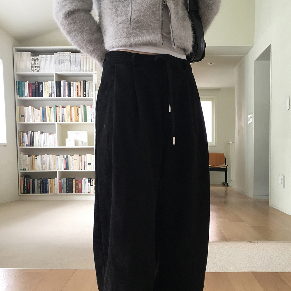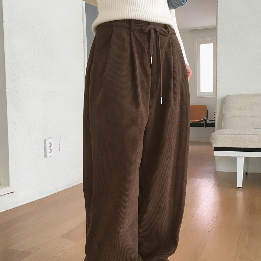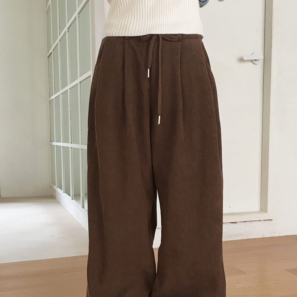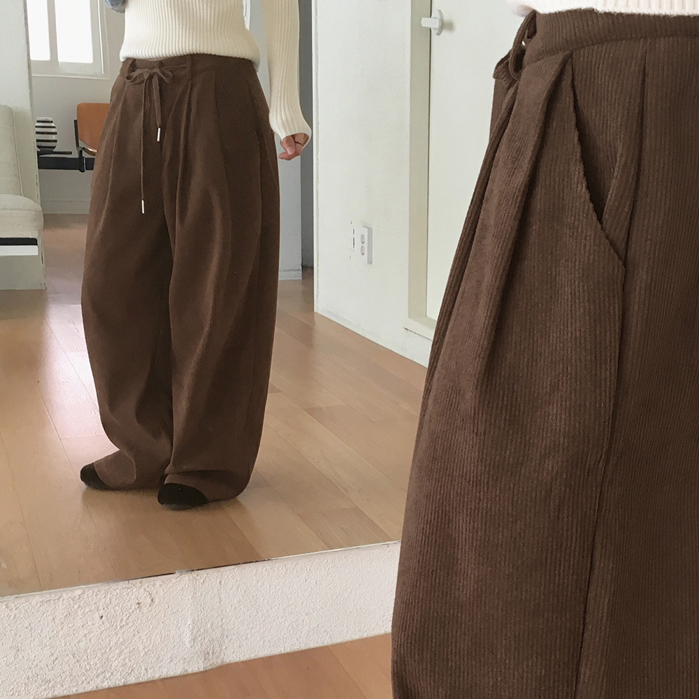 [裏起毛] コーデュロイタック入りストリングロングワイドパンツ