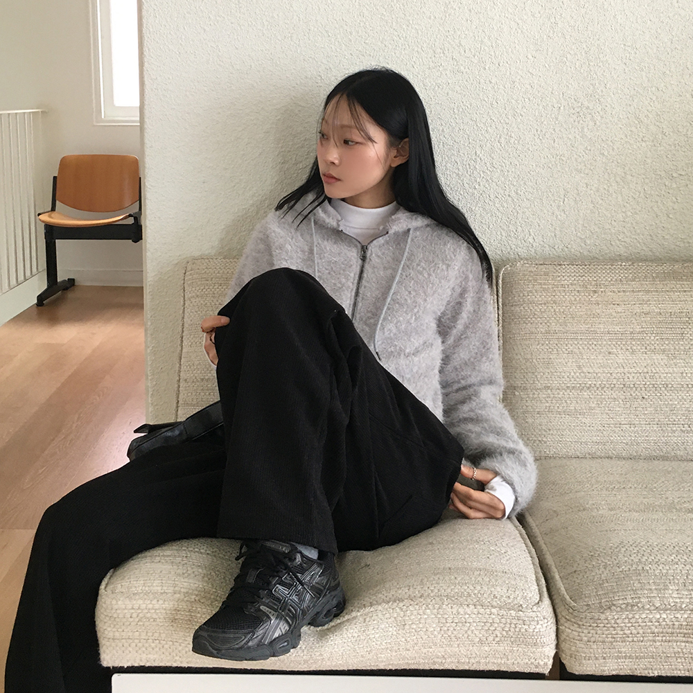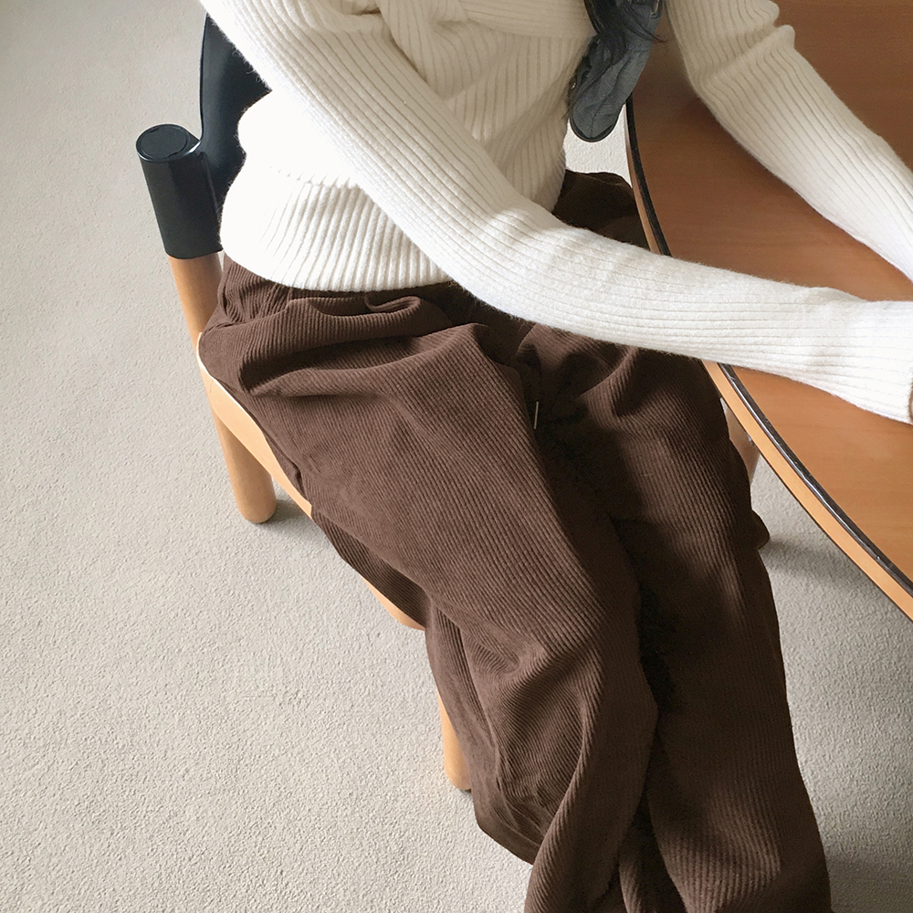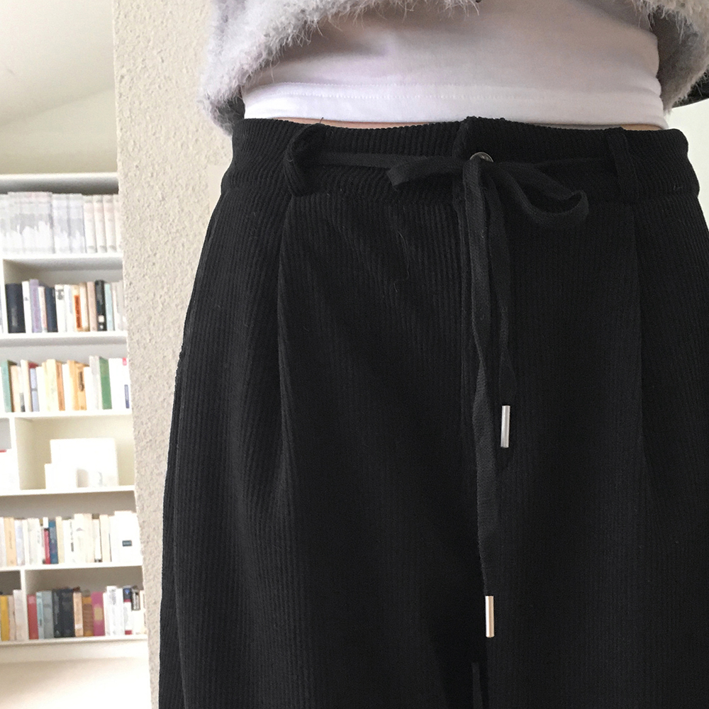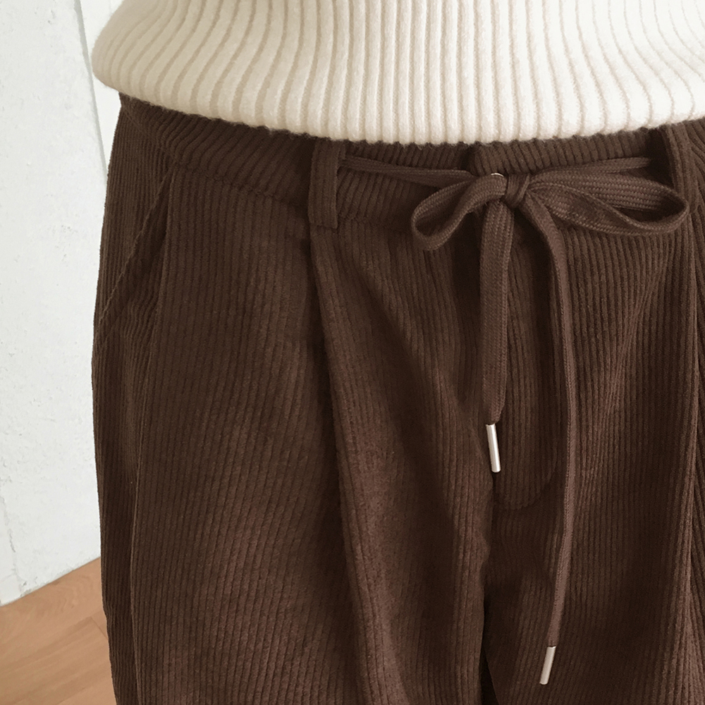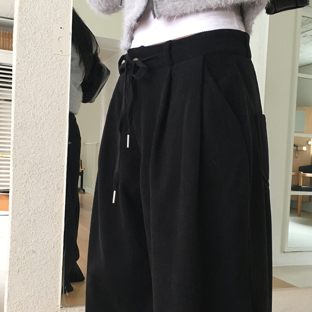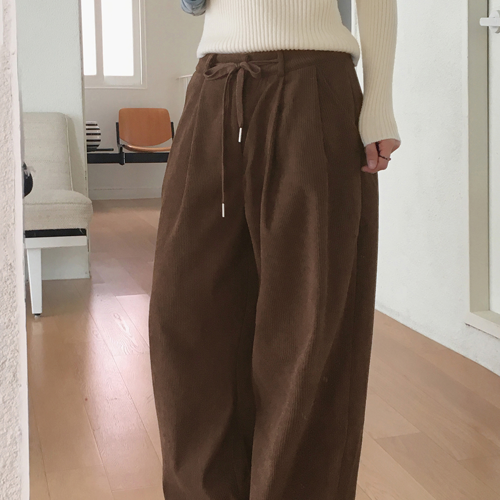 [裏起毛] コーデュロイタック入りストリングロングワイドパンツ