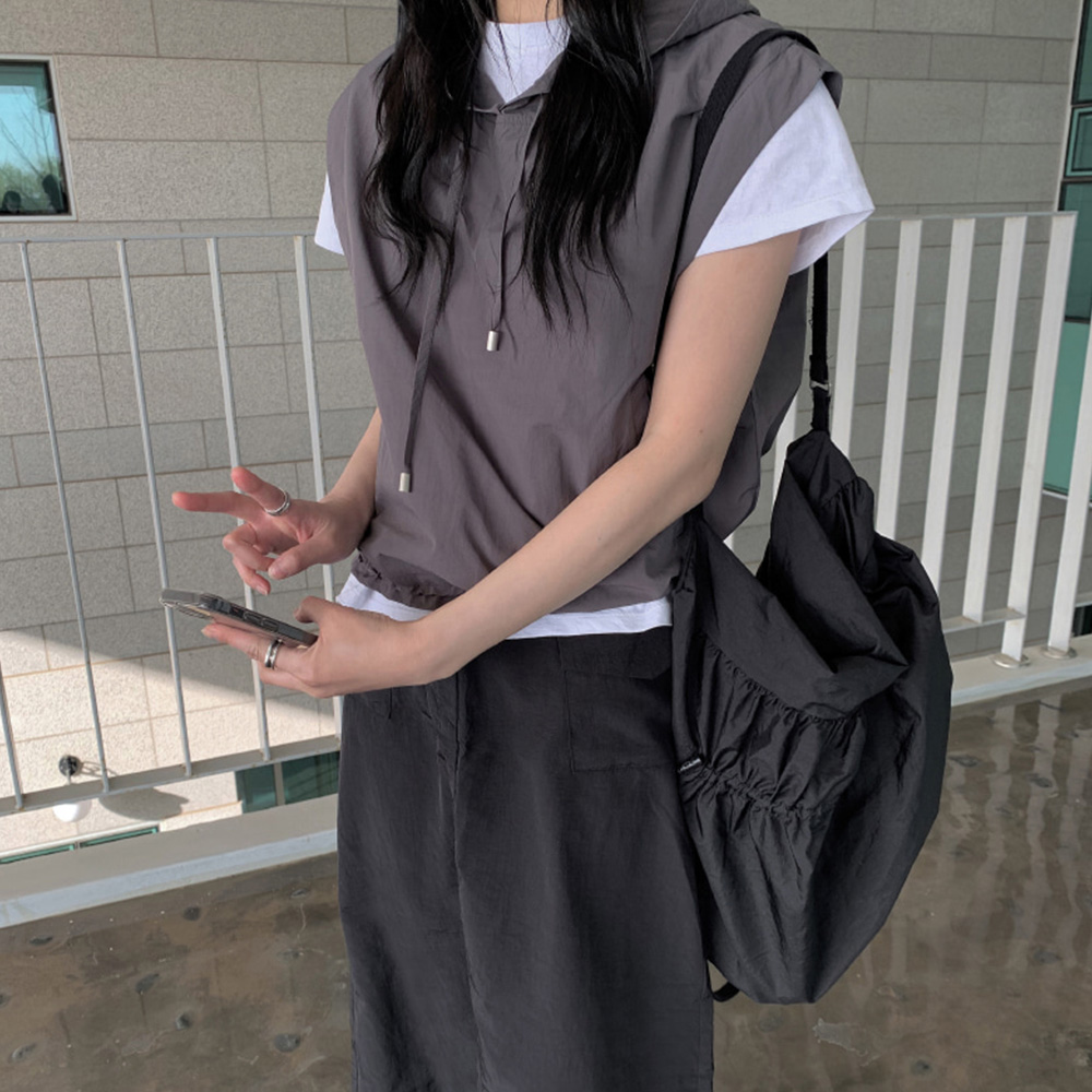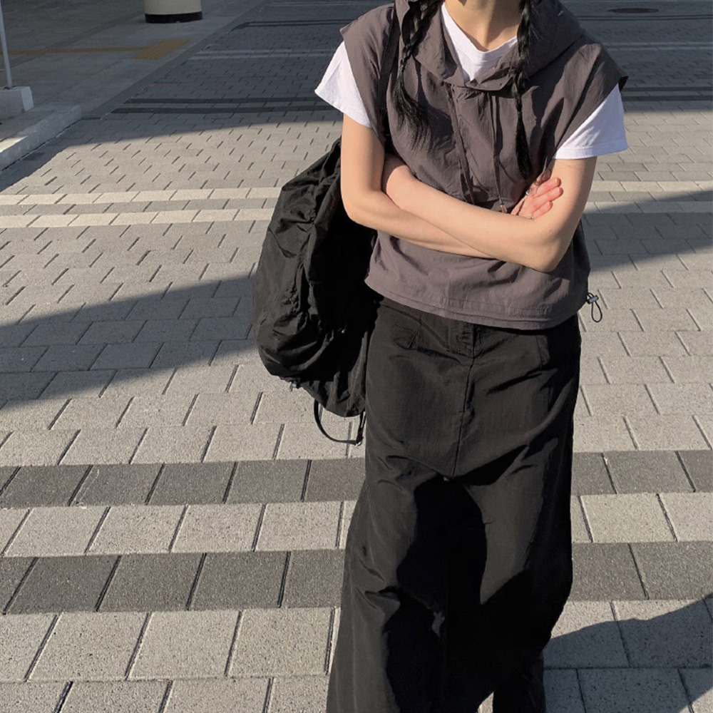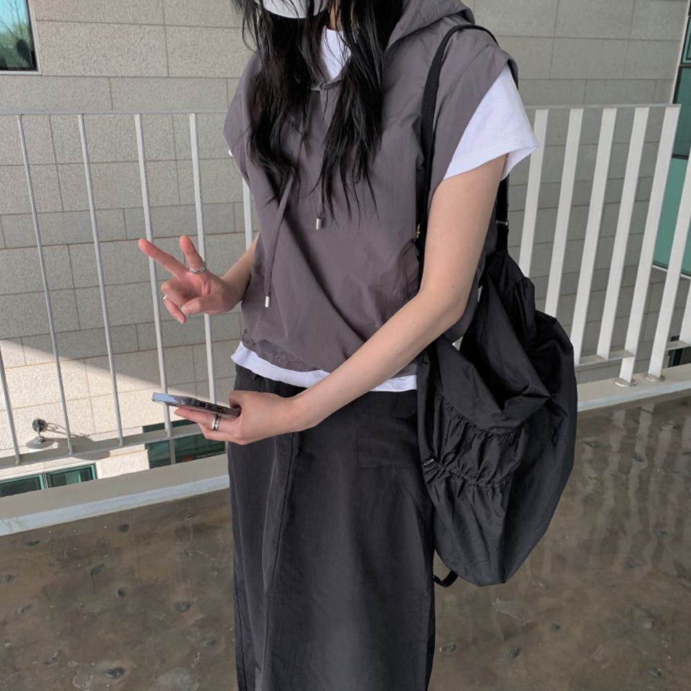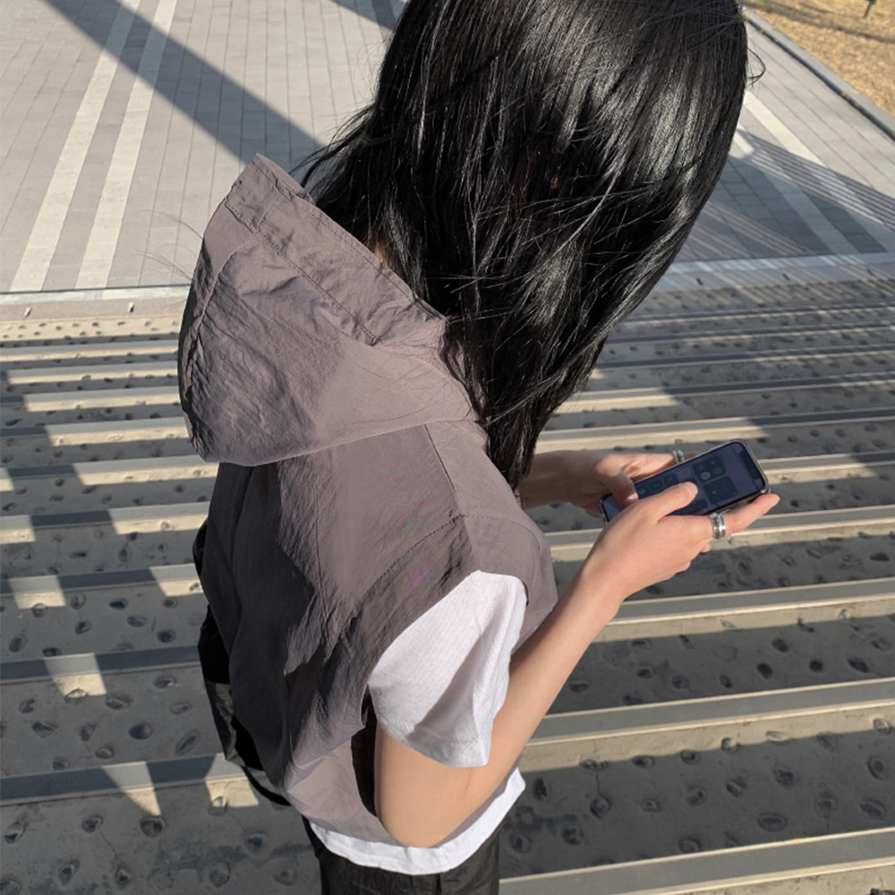 軽くレイヤードしやすいフードベストです!