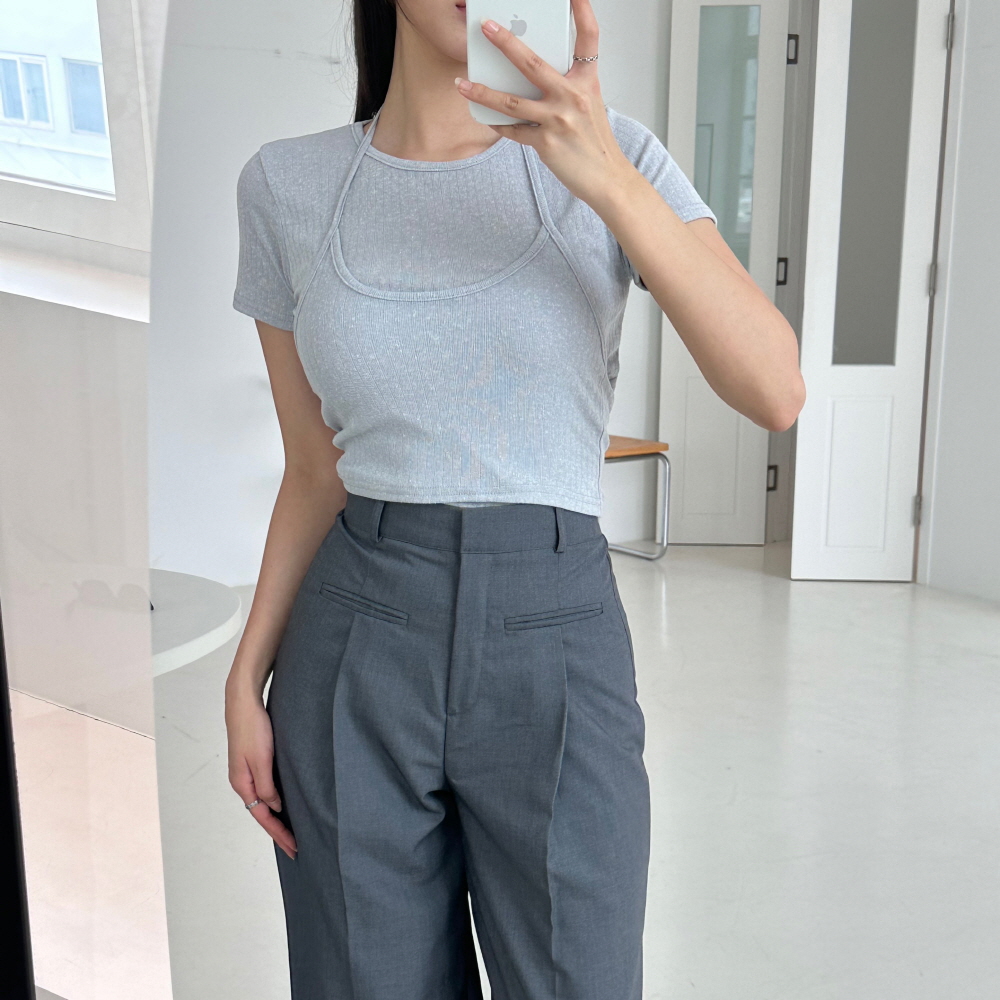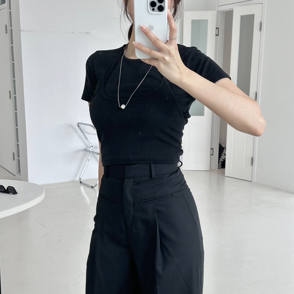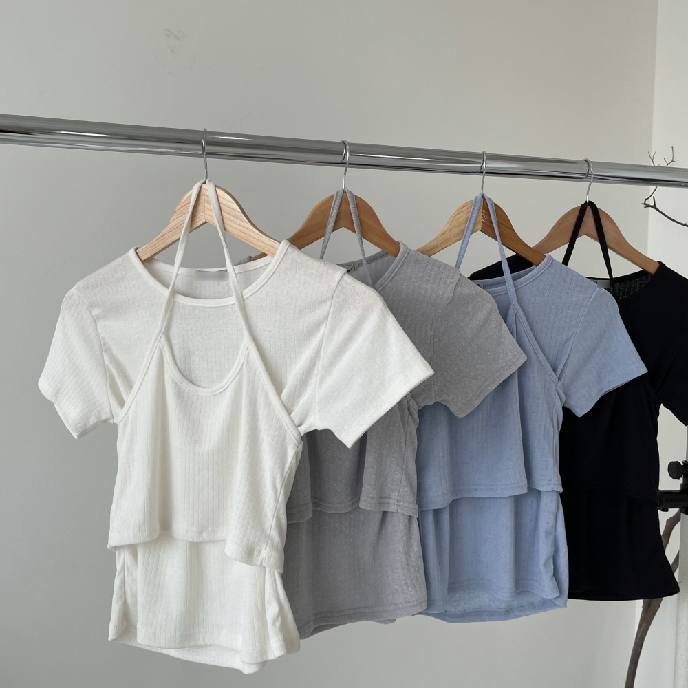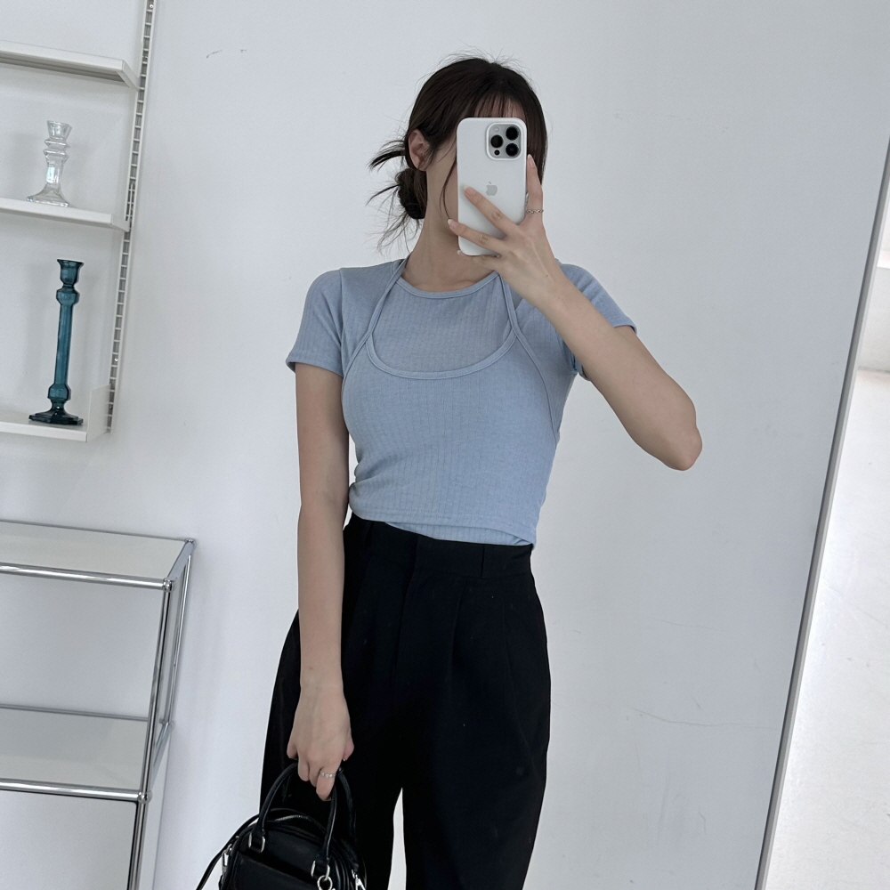 リネンレイヤードビスチェサマー半袖Tシャツ4color