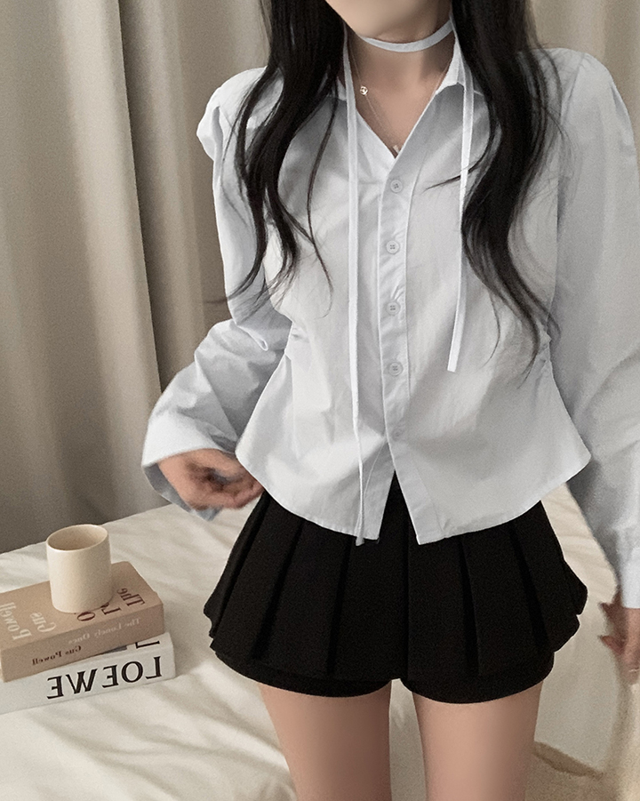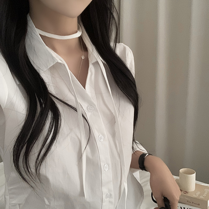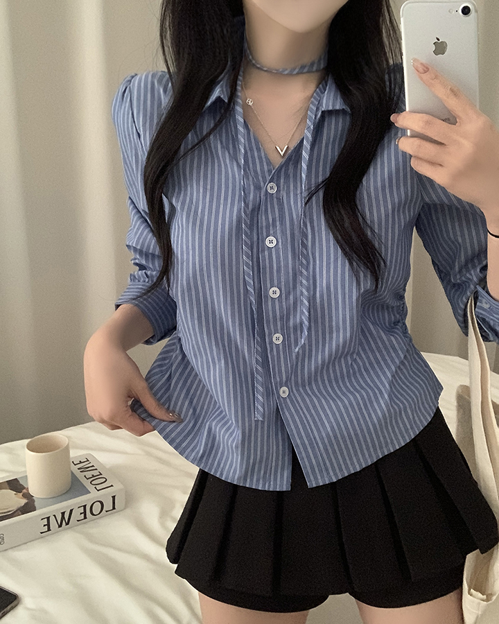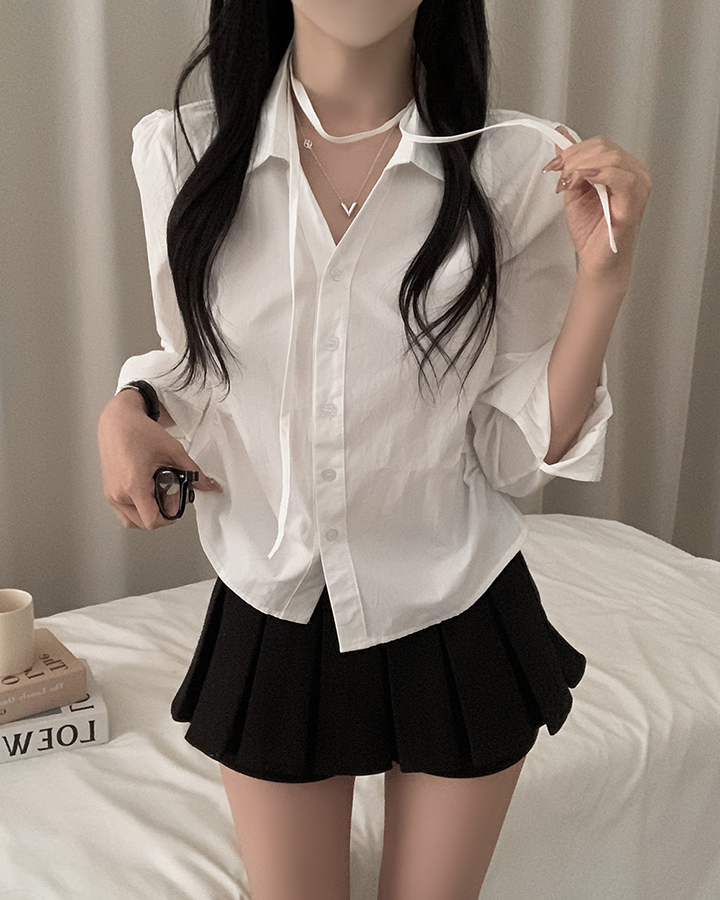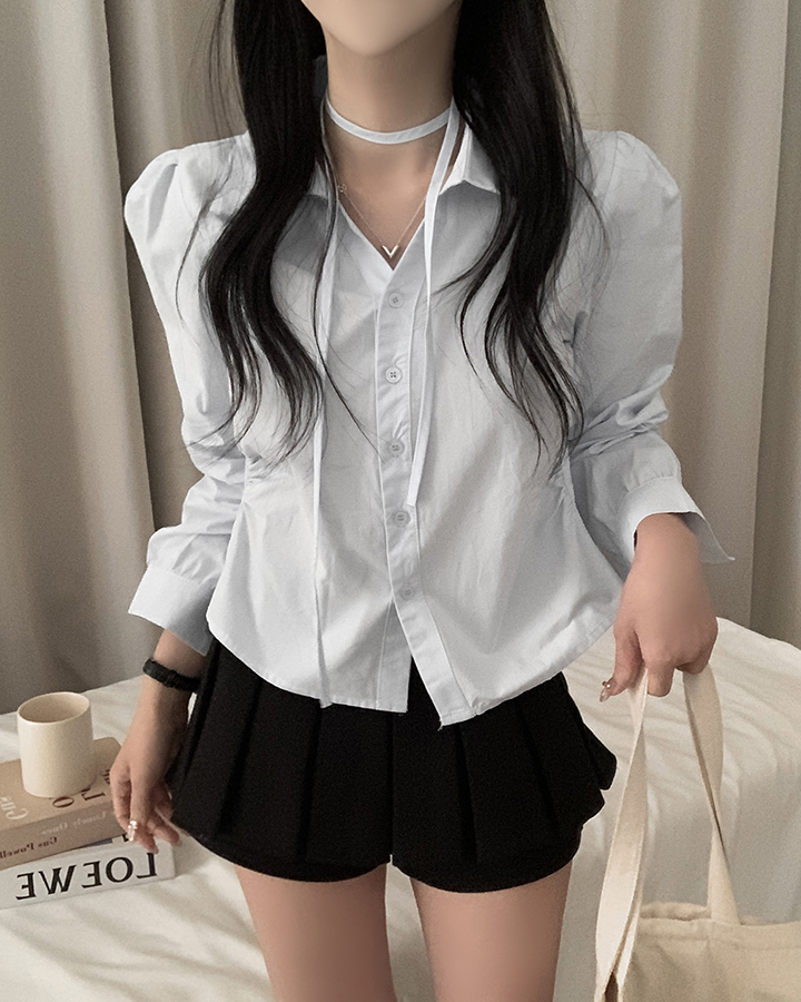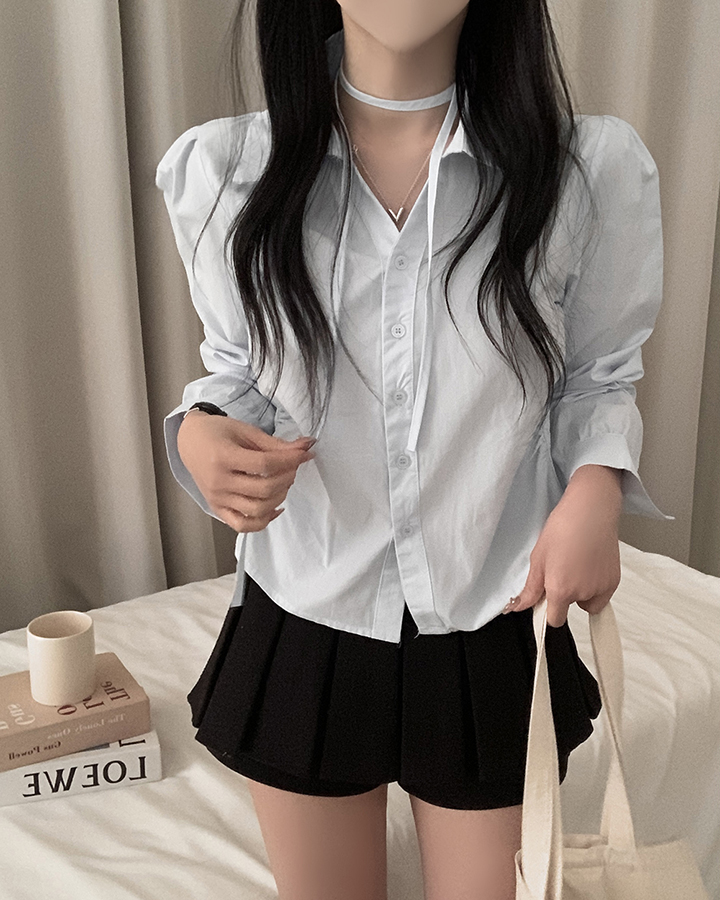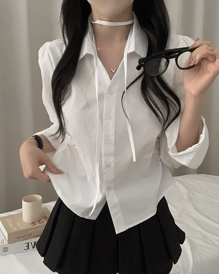 (set)(3color)チョーカーVネックシャーリングシャツ