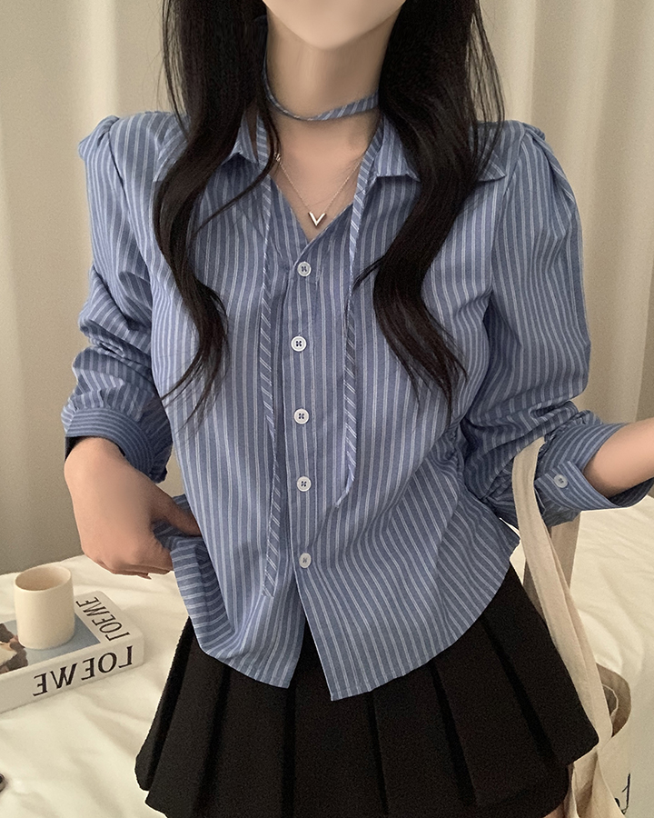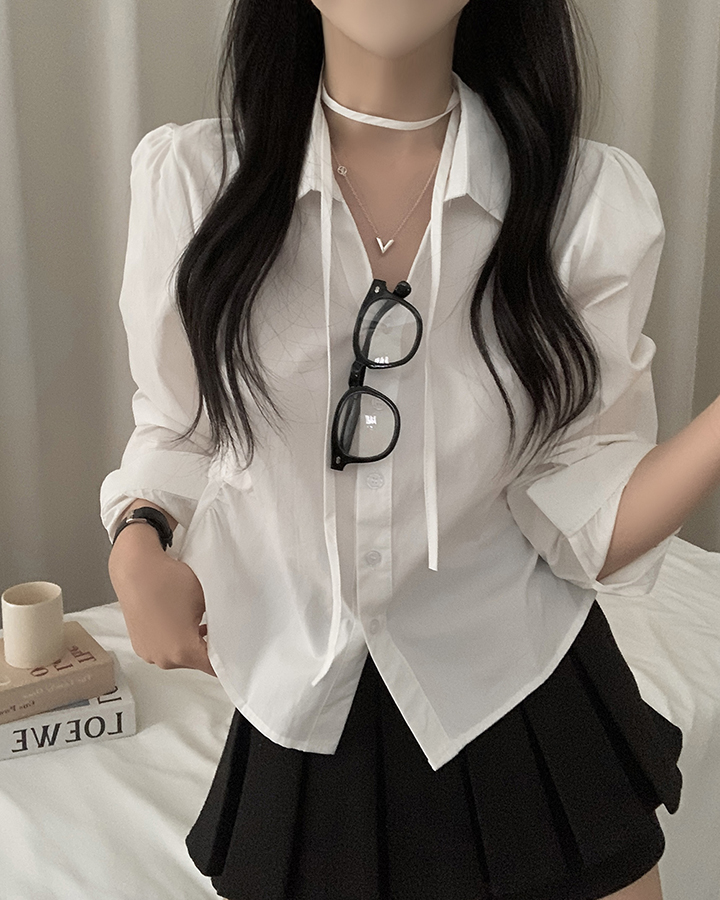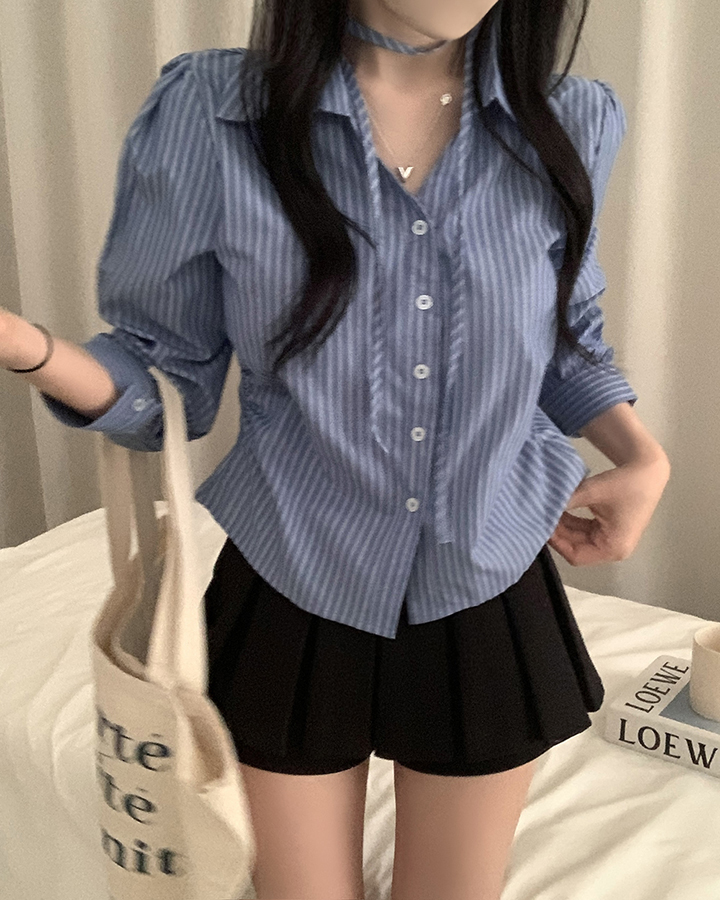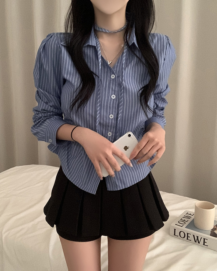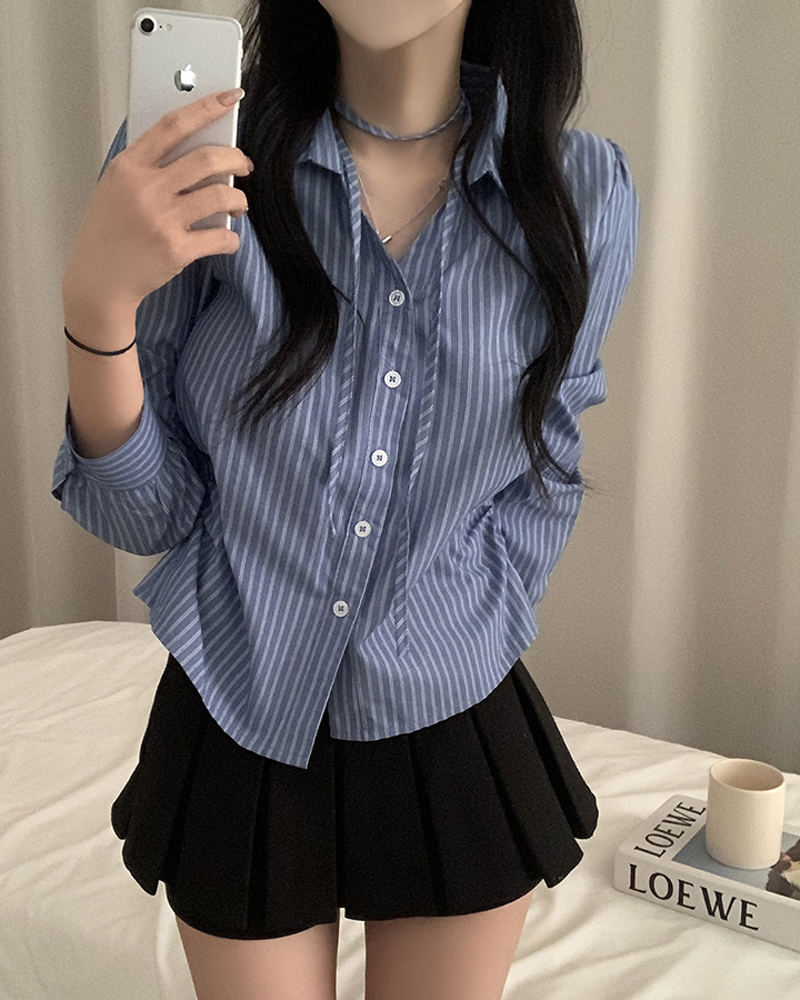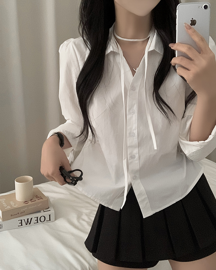 (set)(3color)チョーカーVネックシャーリングシャツ