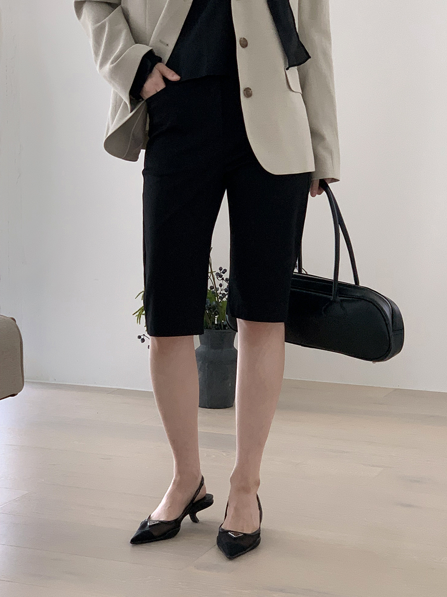 スリムスパンバックゴム5分丈バイカーパンツ2color