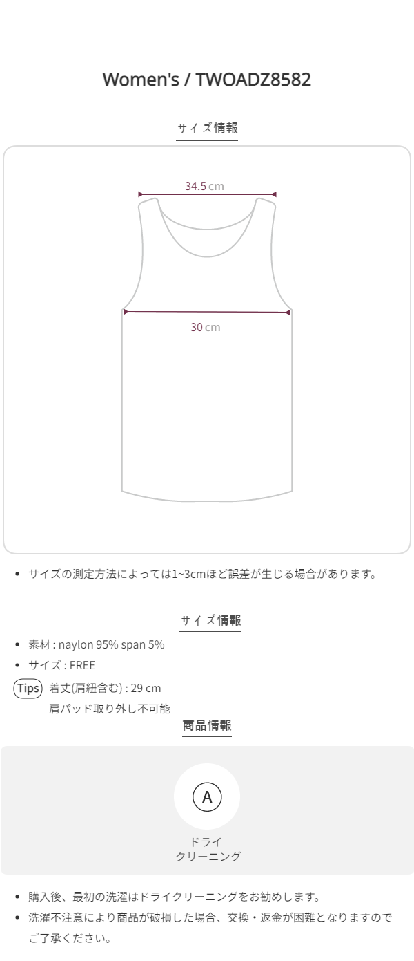 [패드 탈부착 불가] ㅁ어깨34.5 ㅁ가슴30 ㅁ밑단31 ㅁ총장(어깨끈포함)29