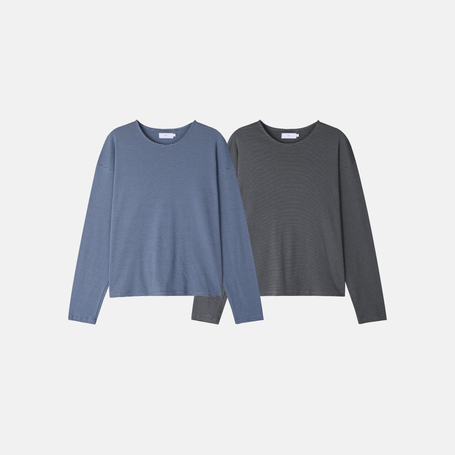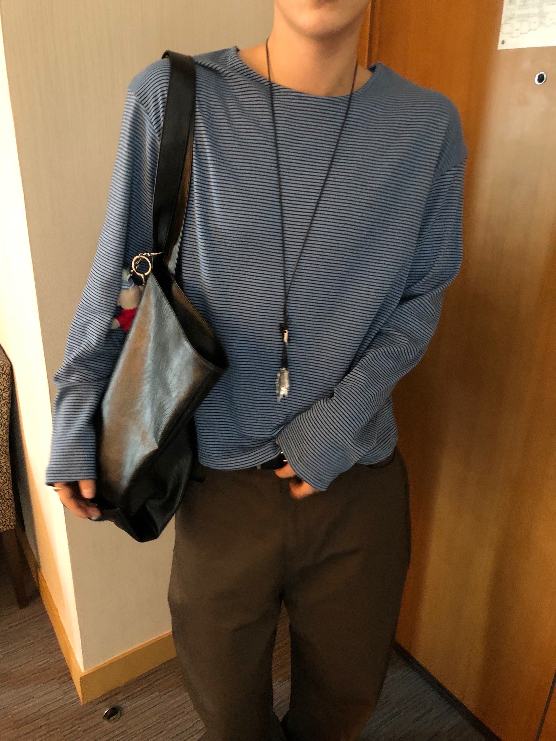(2color)ボーダークルーネックロングスリーブTシャツ