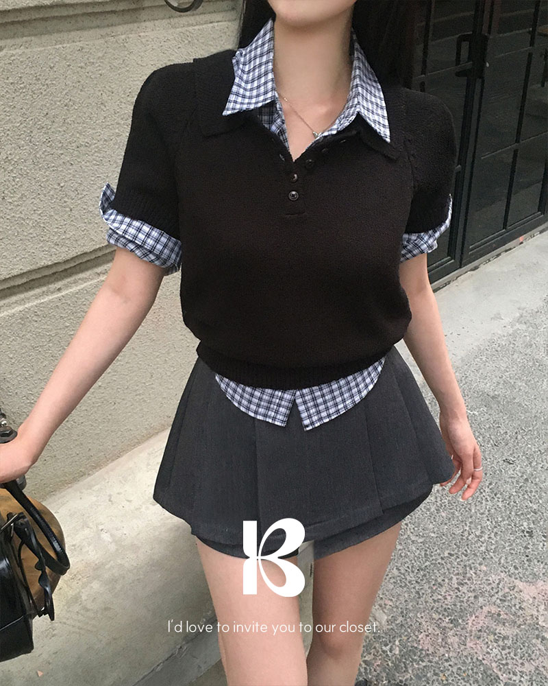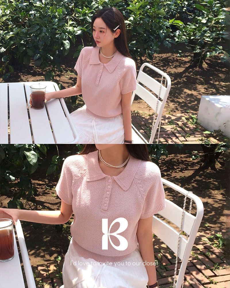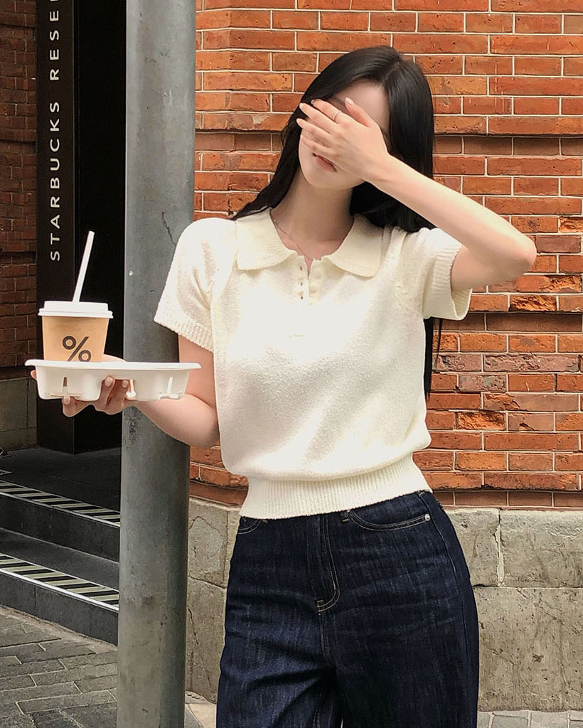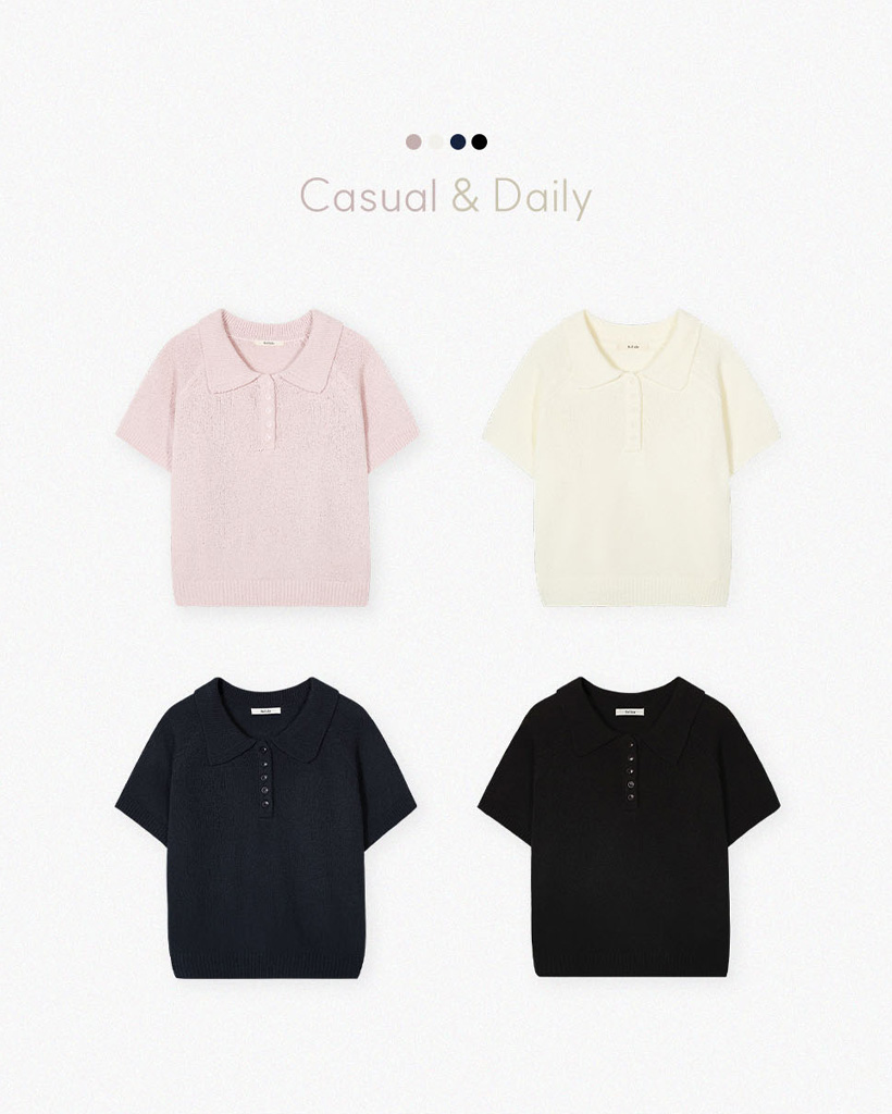 [ORIGINAL/4color]カラーネックブクル半袖ニット