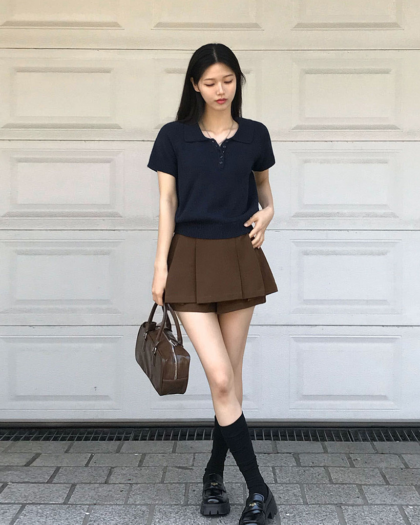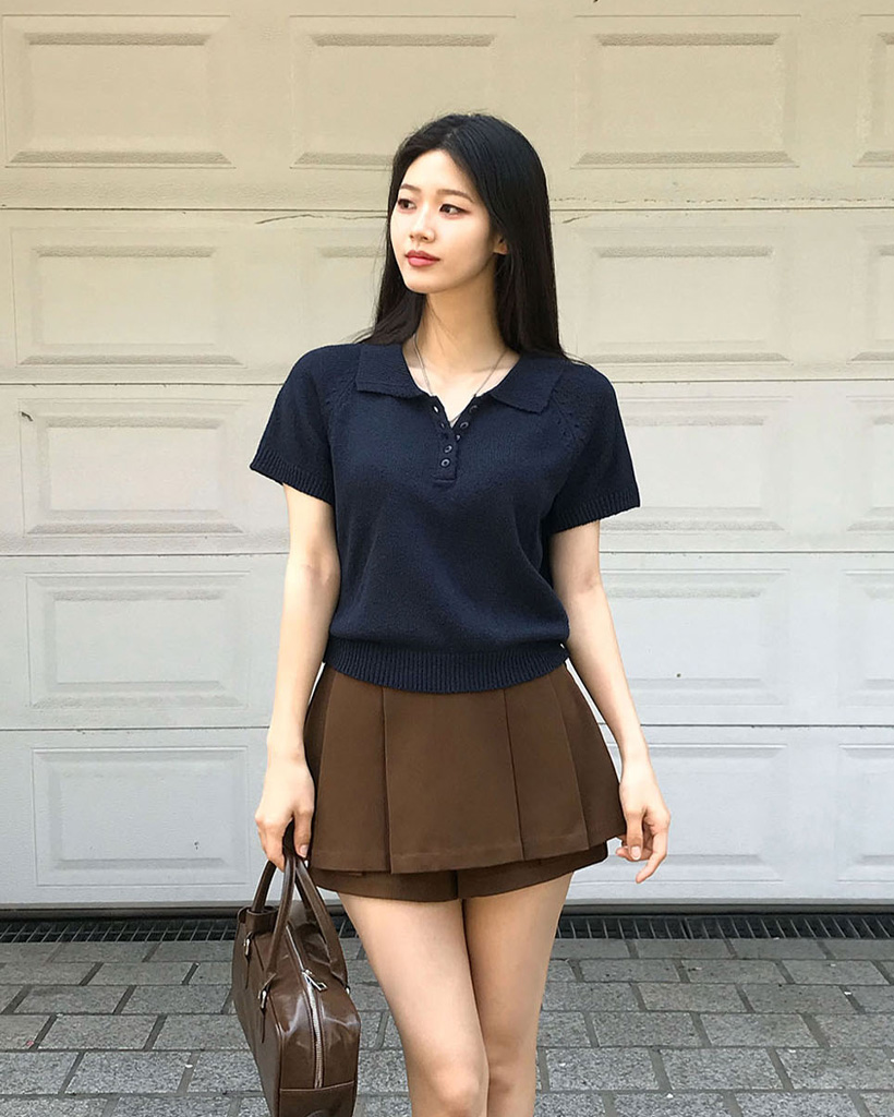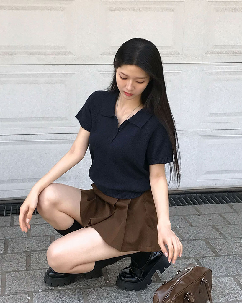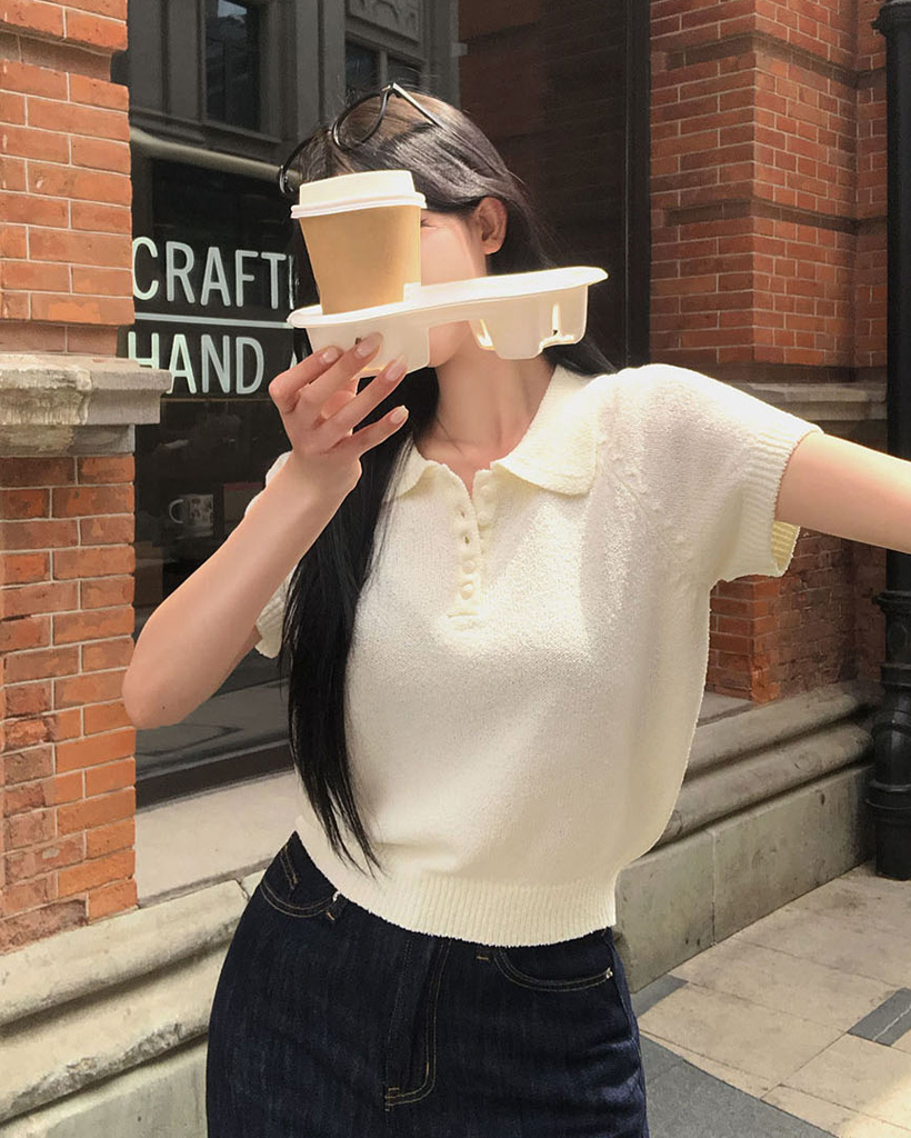 [ORIGINAL/4color]カラーネックブクル半袖ニット