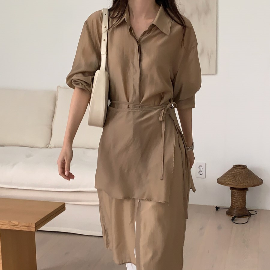 [SET]レイヤードラップスカート&シャツロングワンピースセット