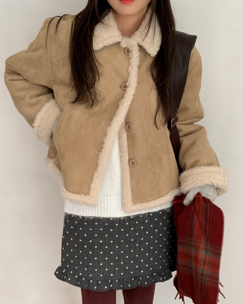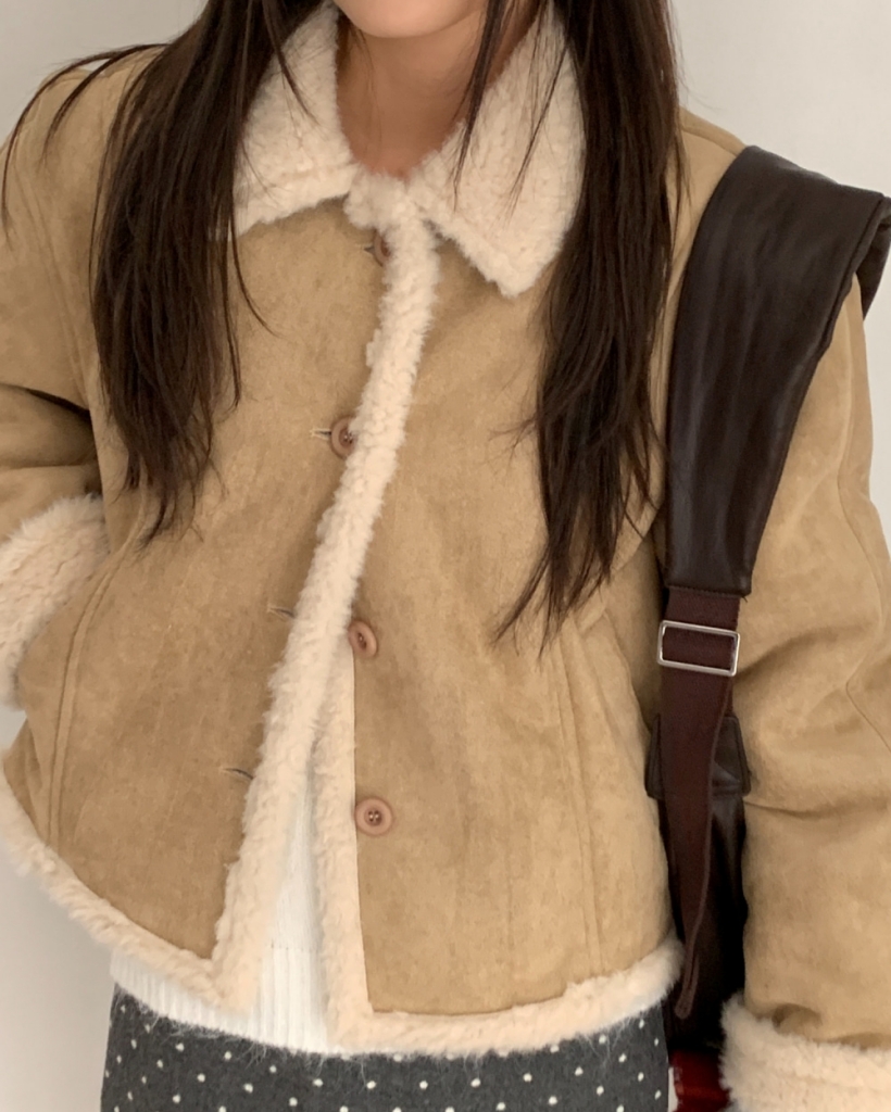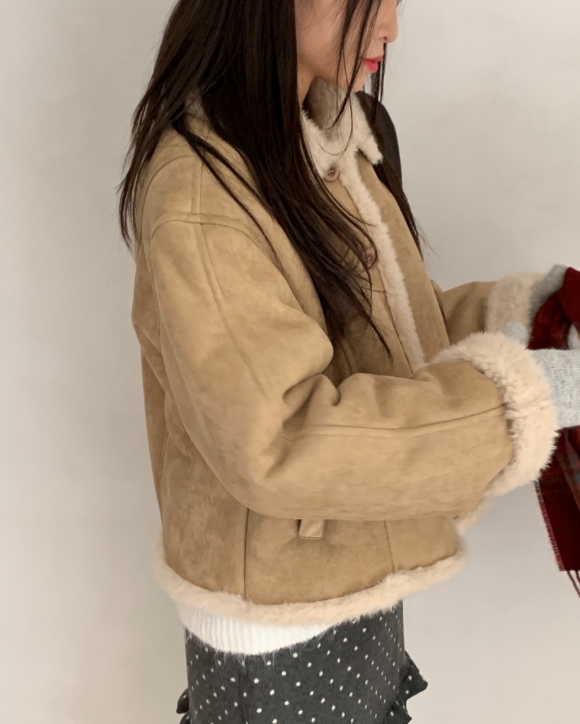 (3 color) フェイクファー裏地 スエード ムートンジャケット アウター