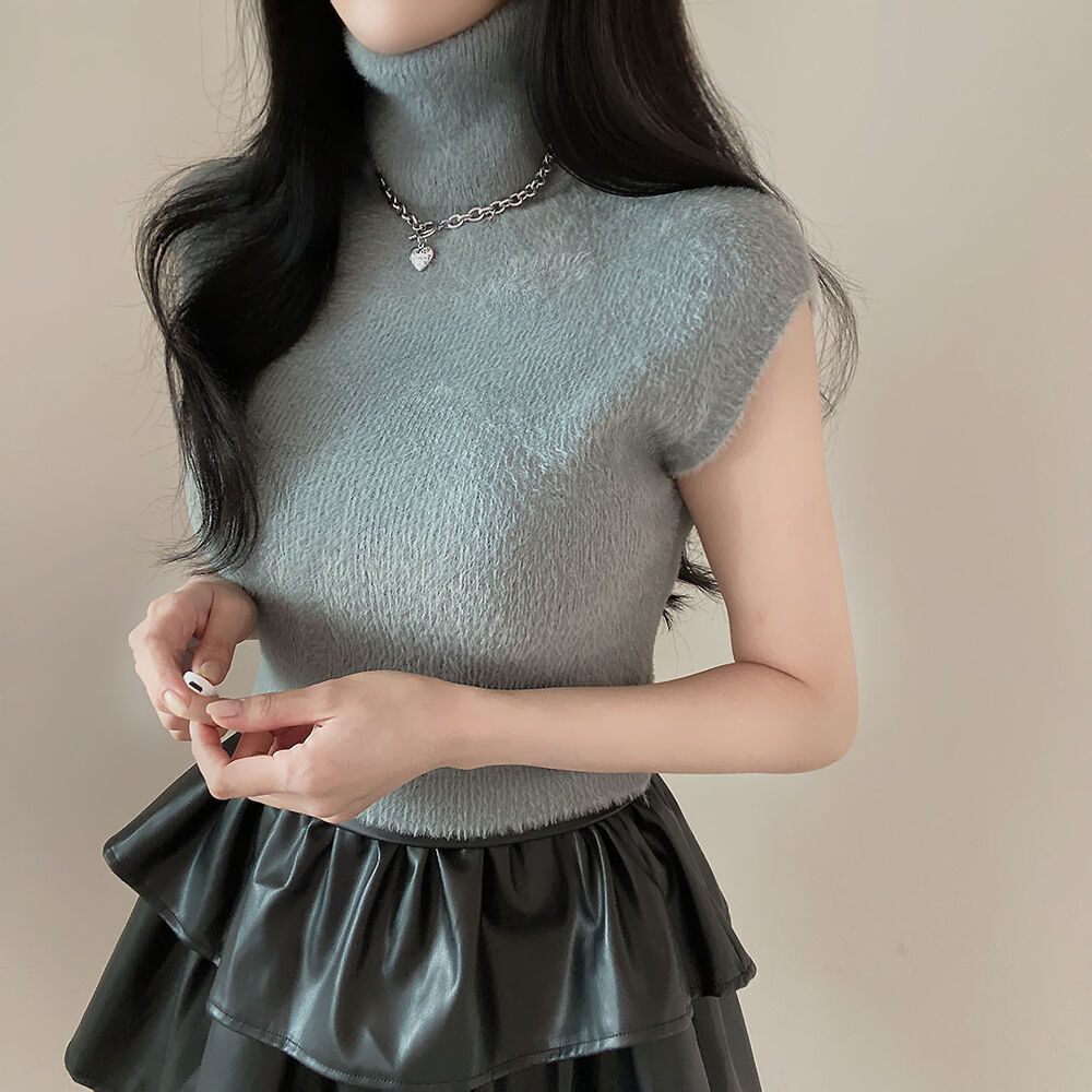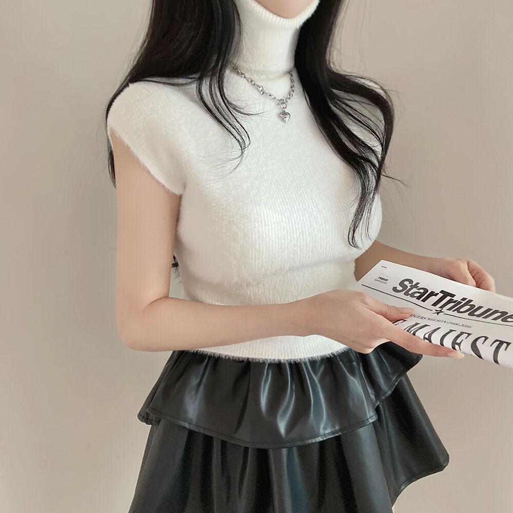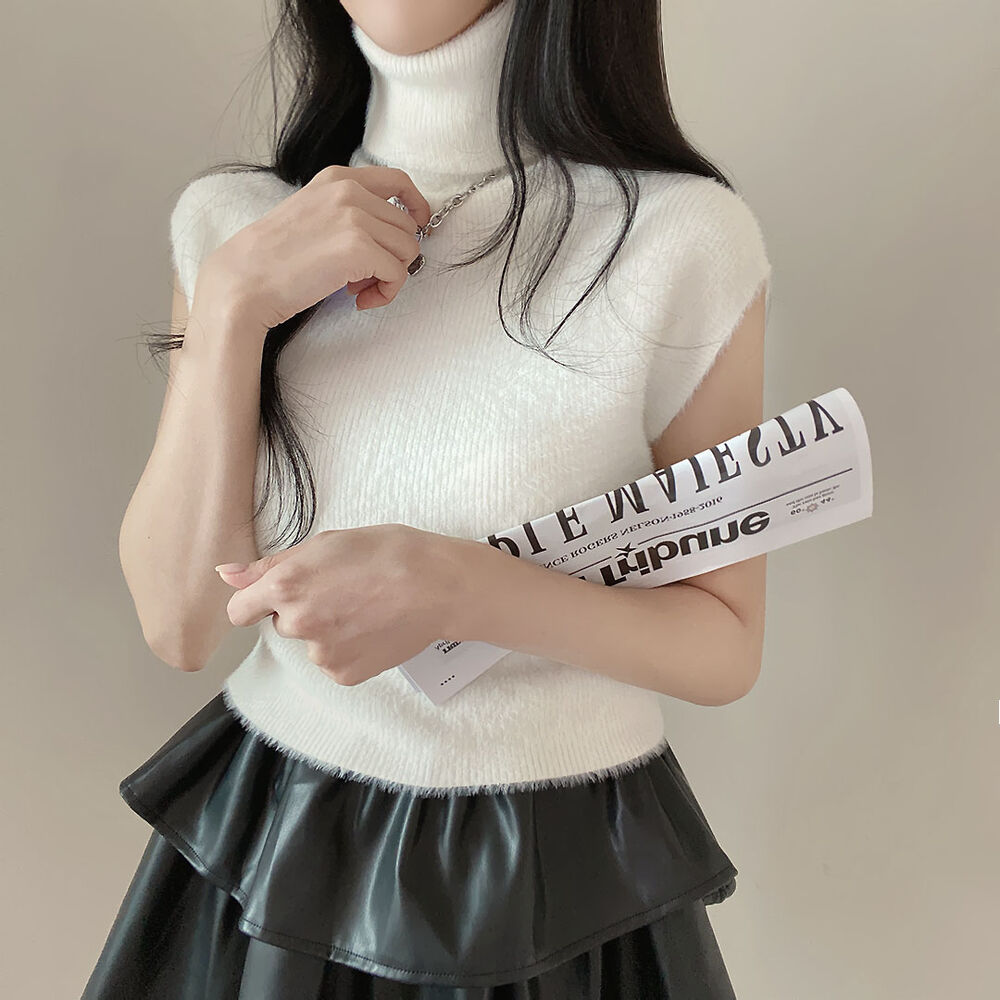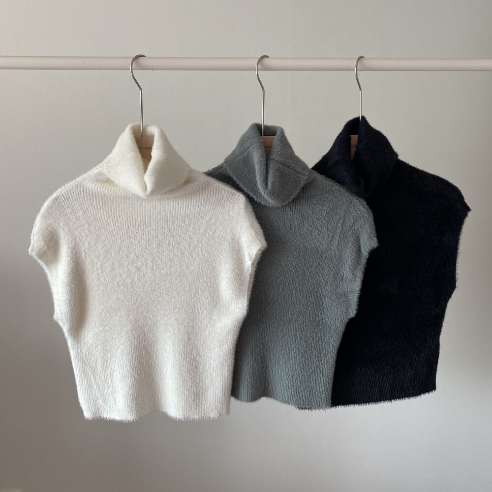 タートルネックノースリーブクロップドニット