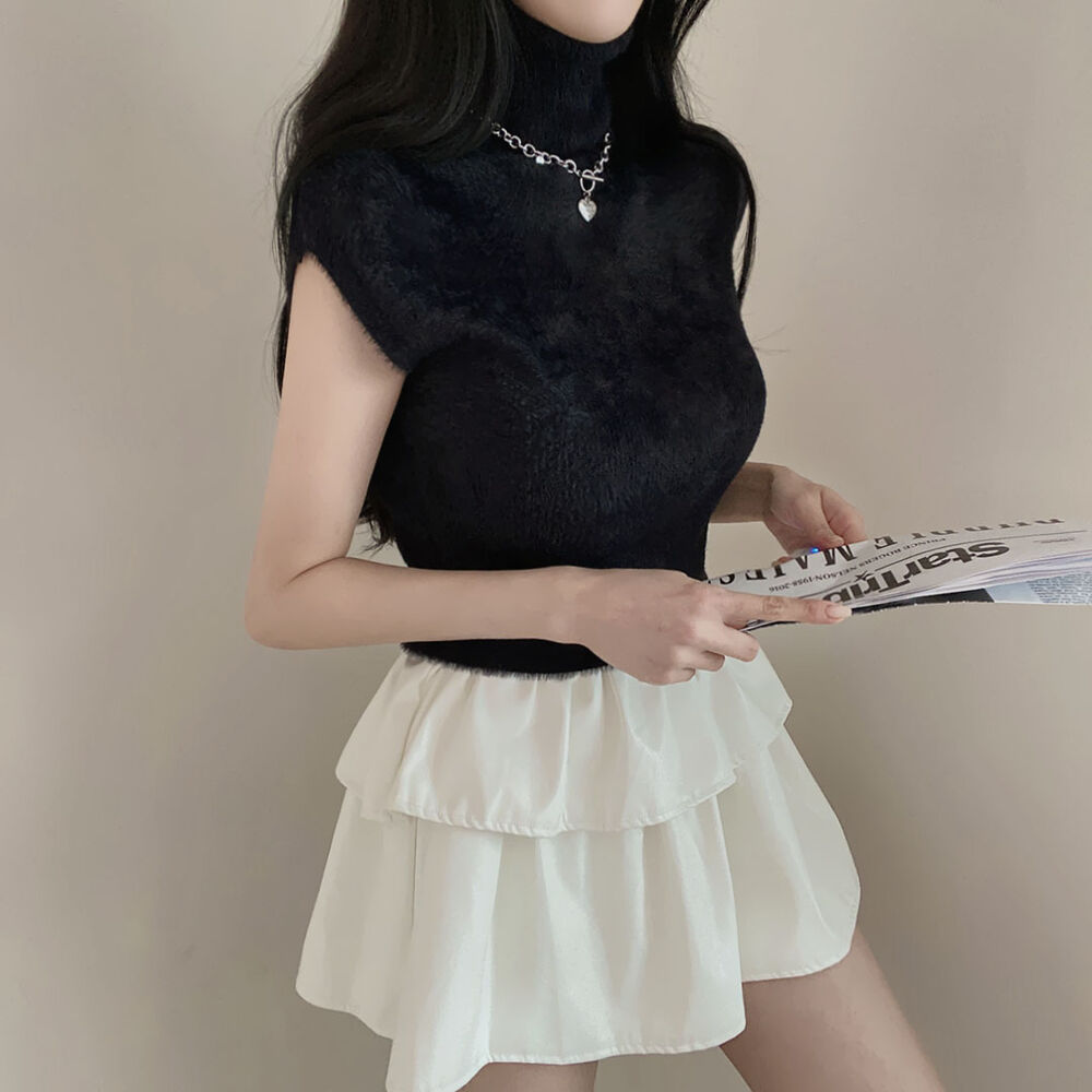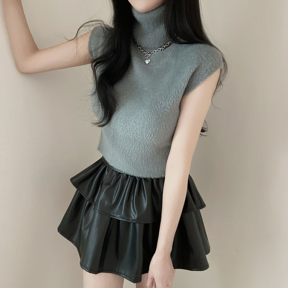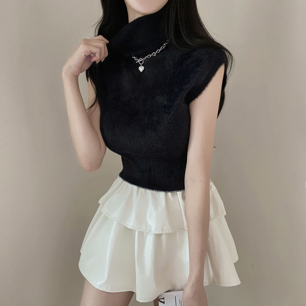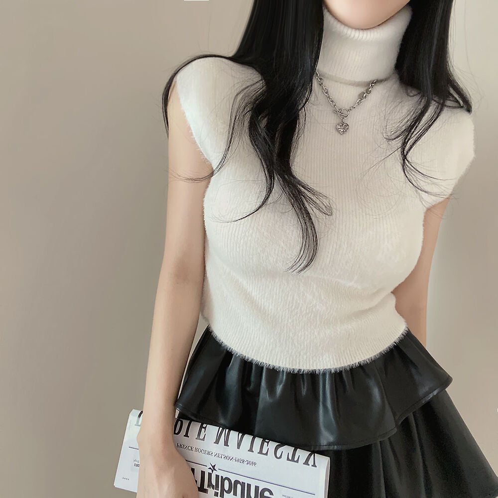 タートルネックノースリーブクロップドニット