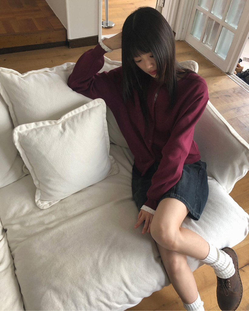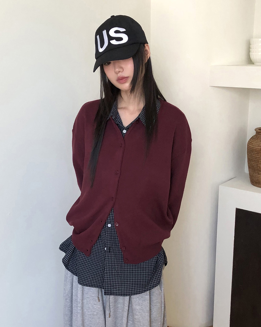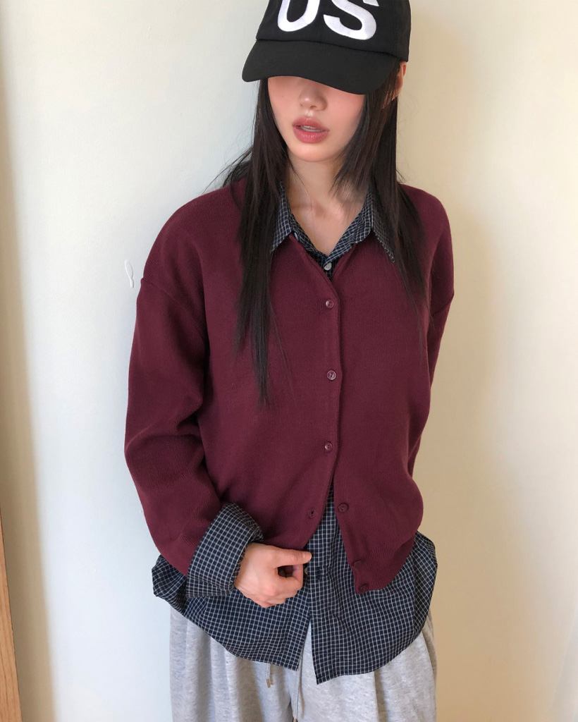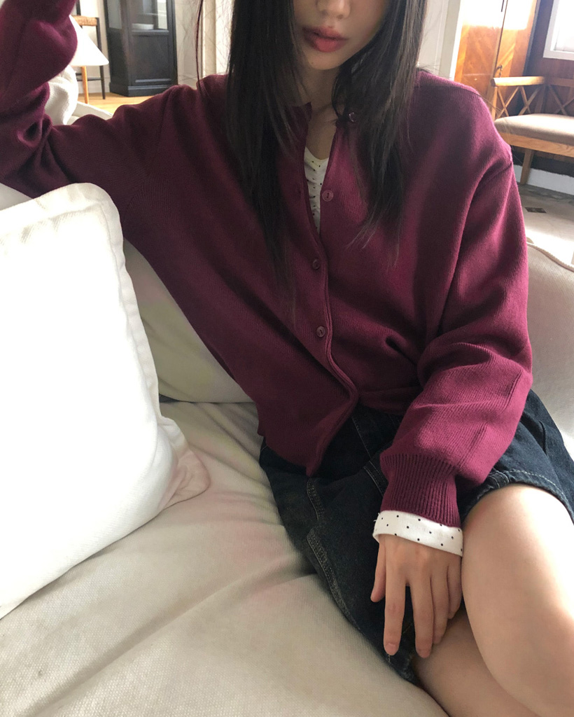 (14color) ベーシックルーズフィット長袖ニットカーディガン