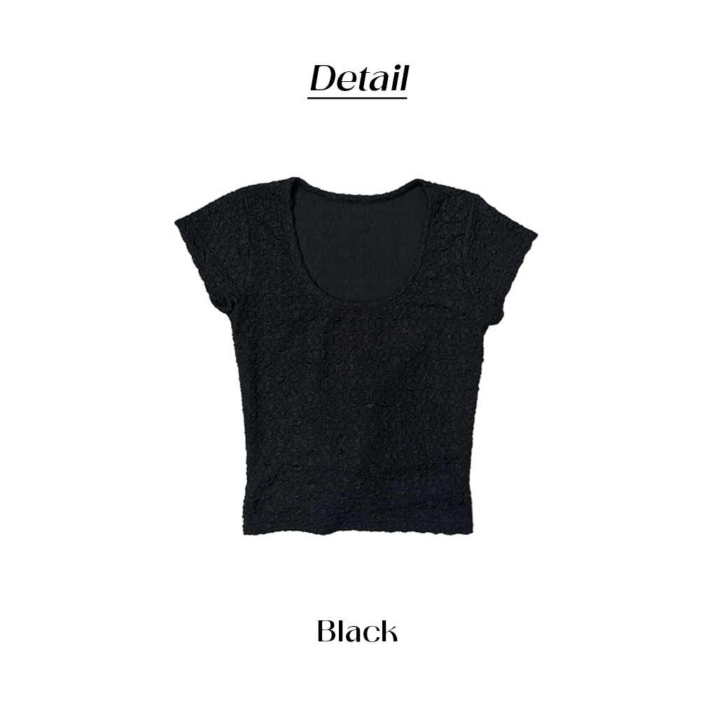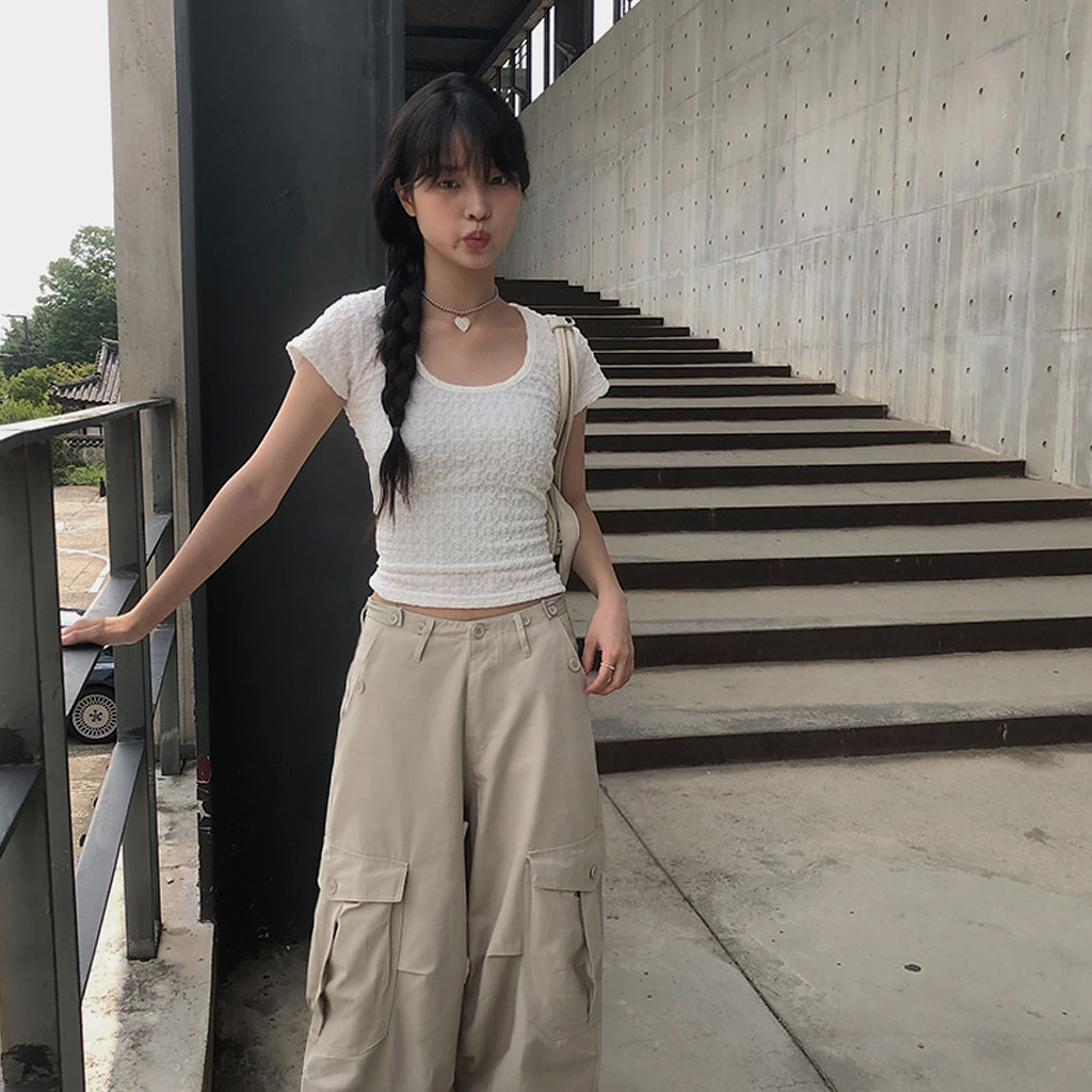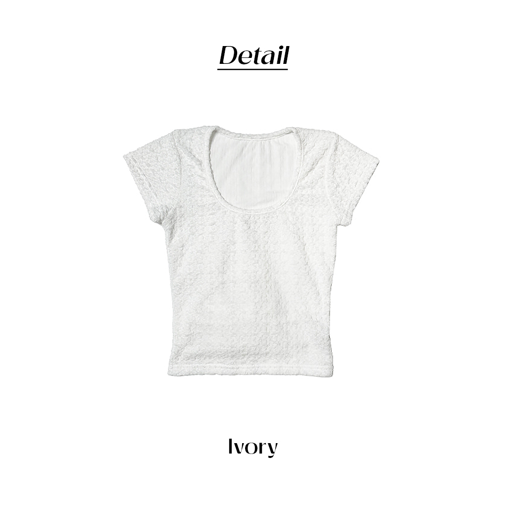 Uネック背中開きリボン半袖Tシャツ (2color)