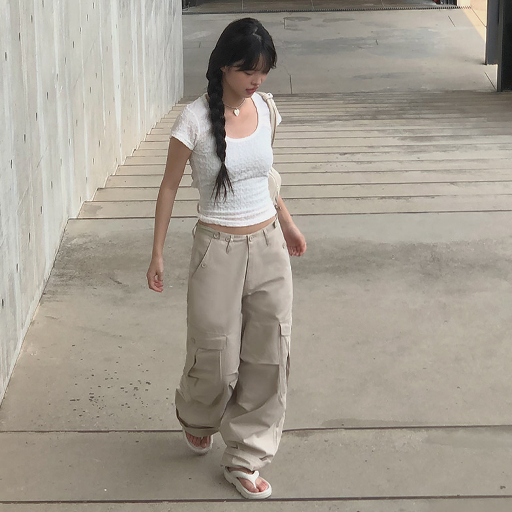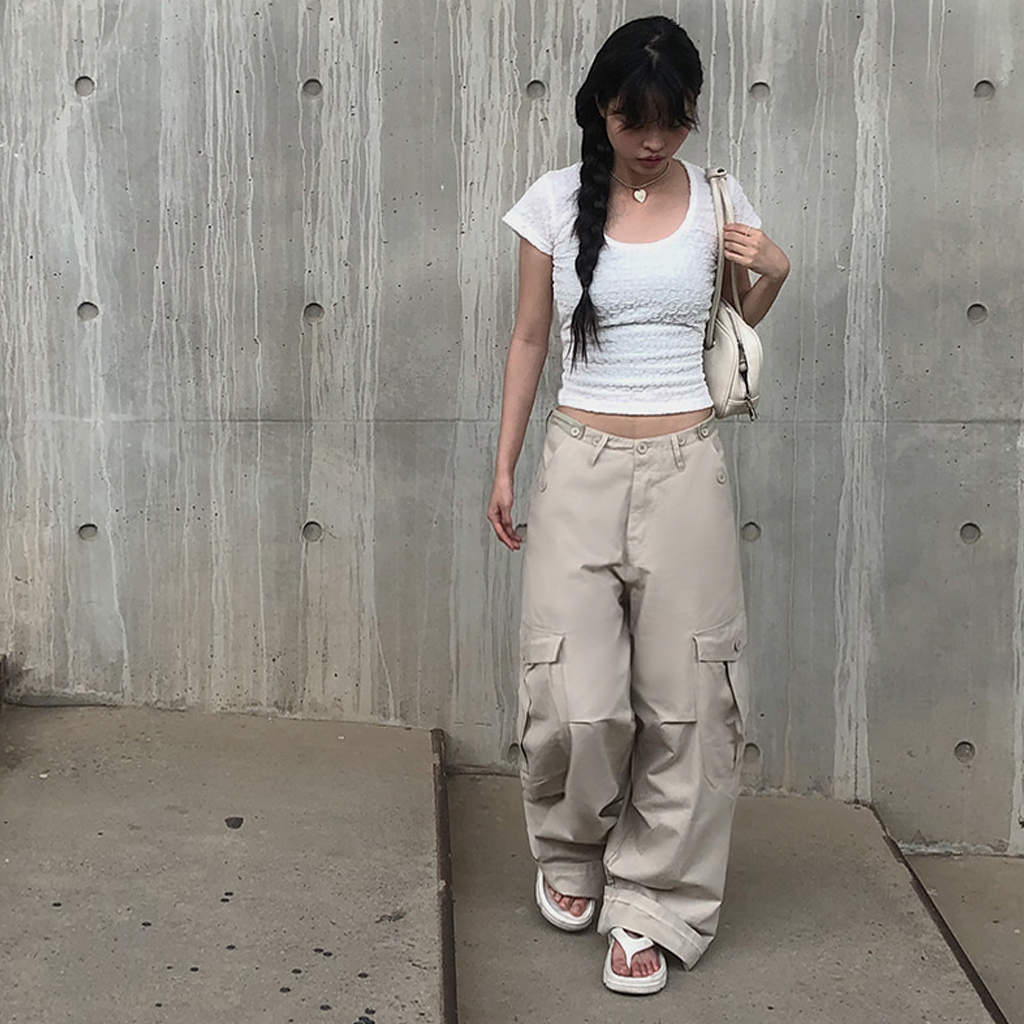 程よい丈感で合わせるボトムス次第に