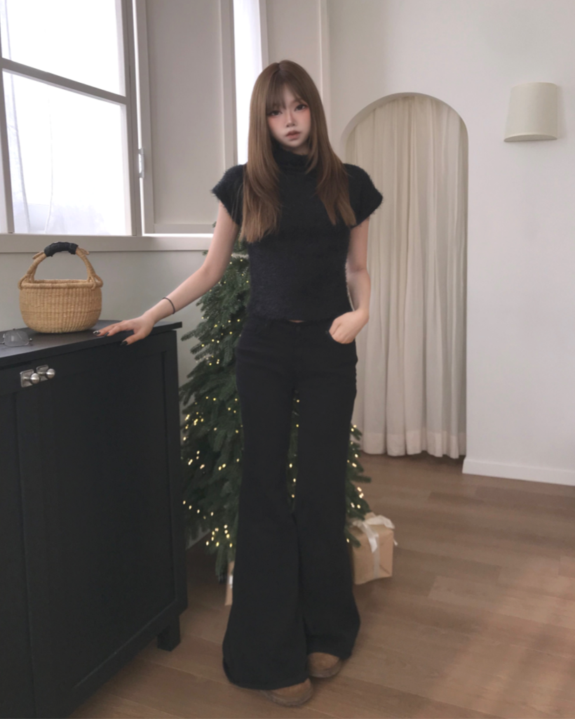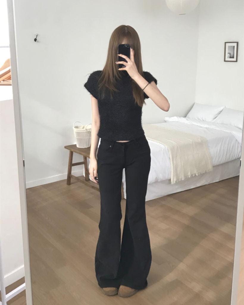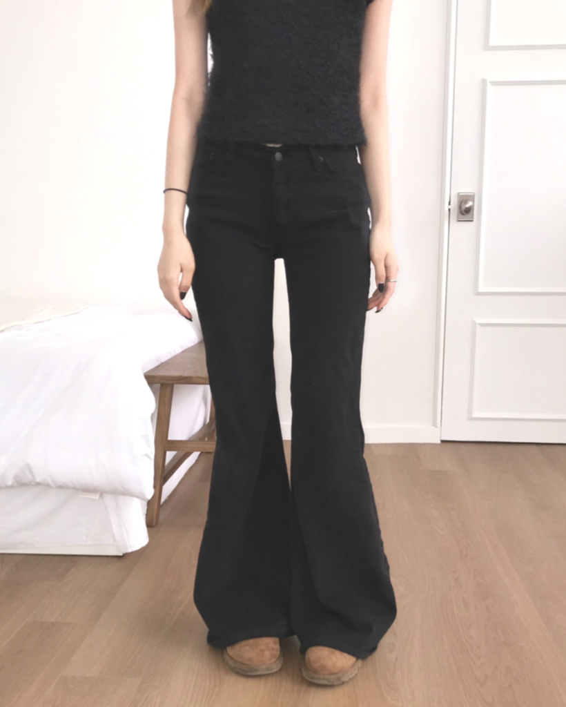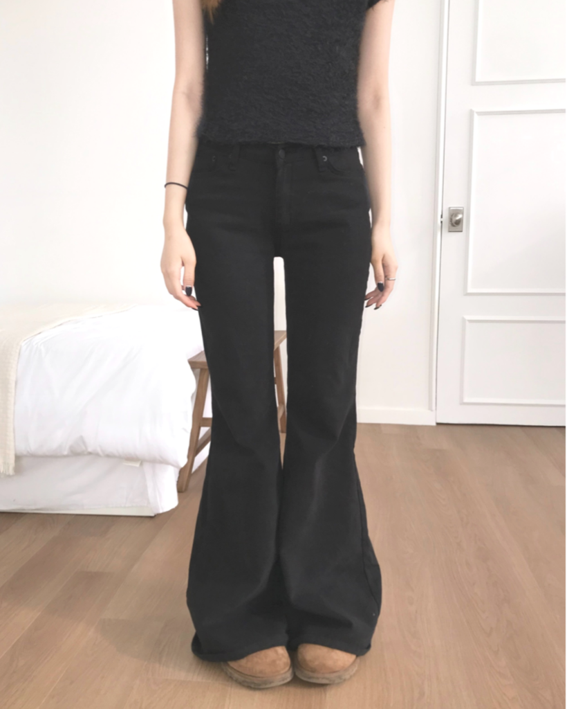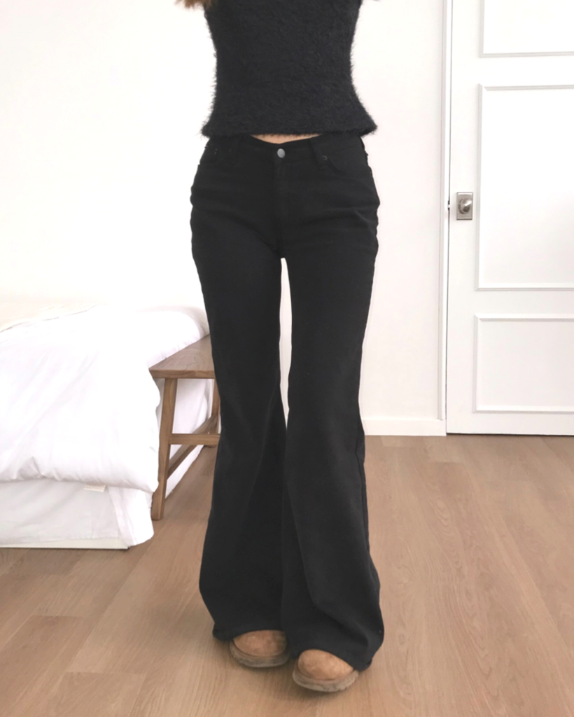[裏起毛] フレア ローライズ ブーツカット パンツ