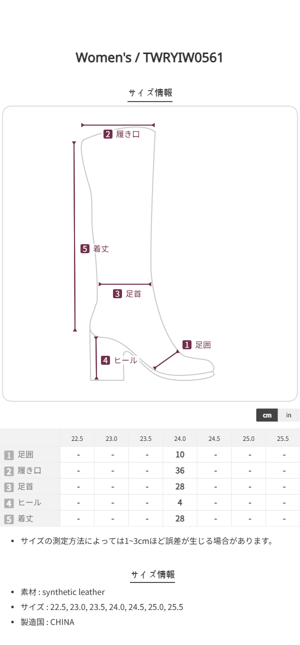 足幅が広い方や甲高の方には、ワンサイズ上をおすすめいたします。