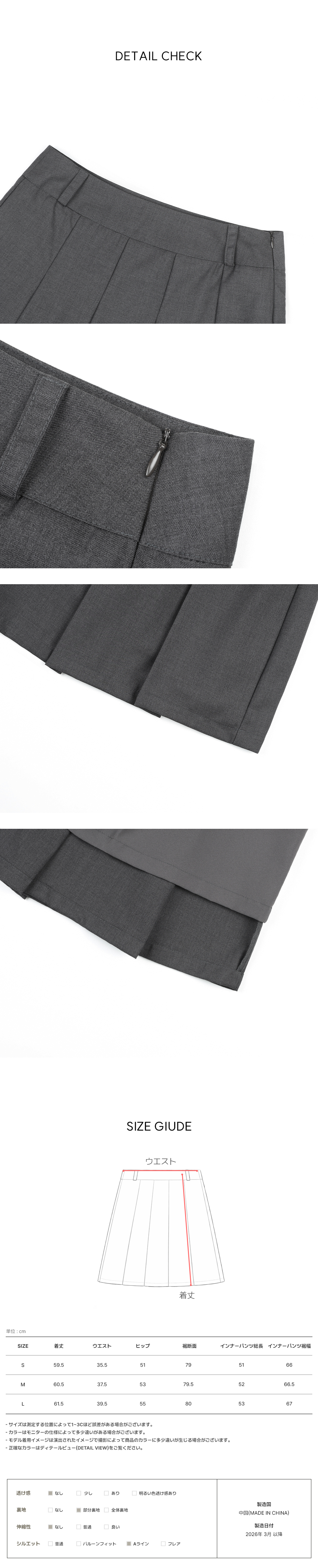 [original] カチ ミディアムプリーツスカート
