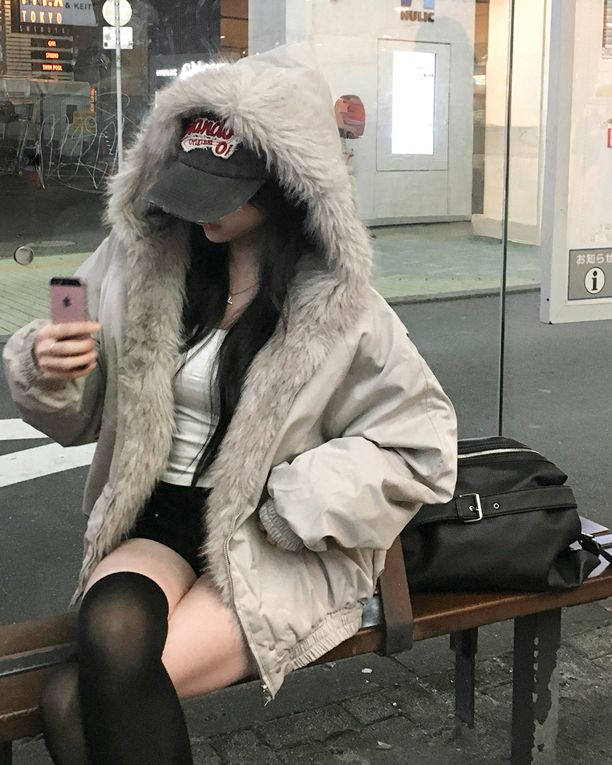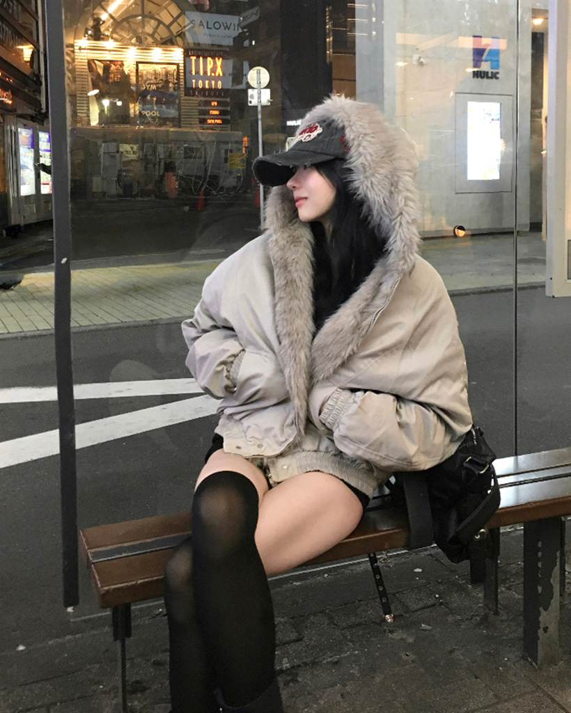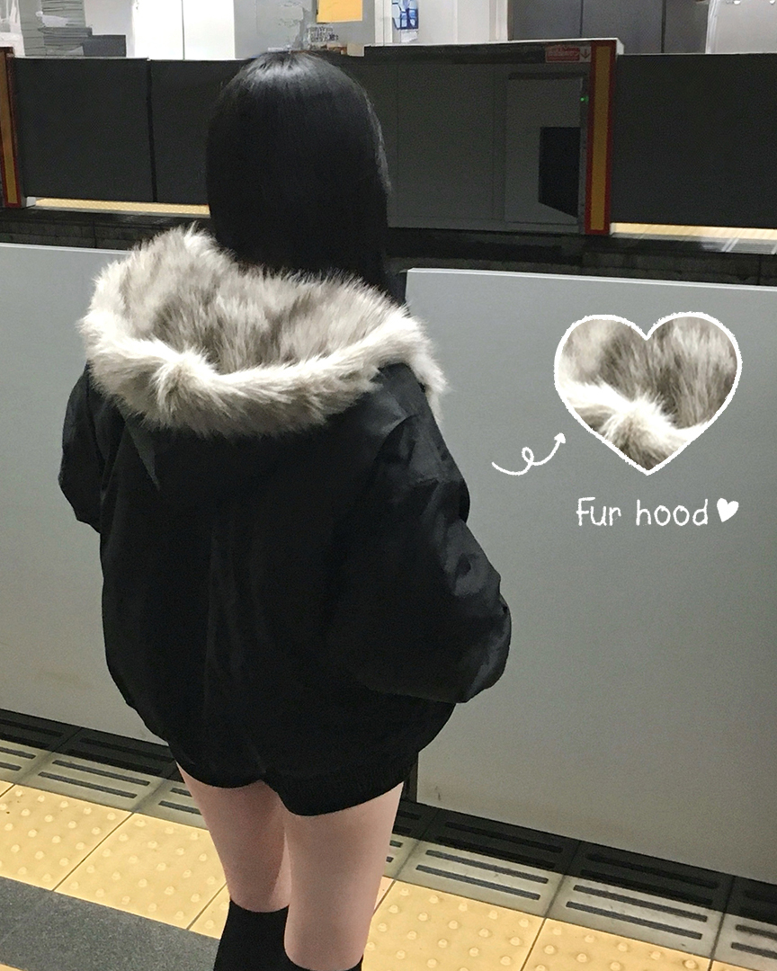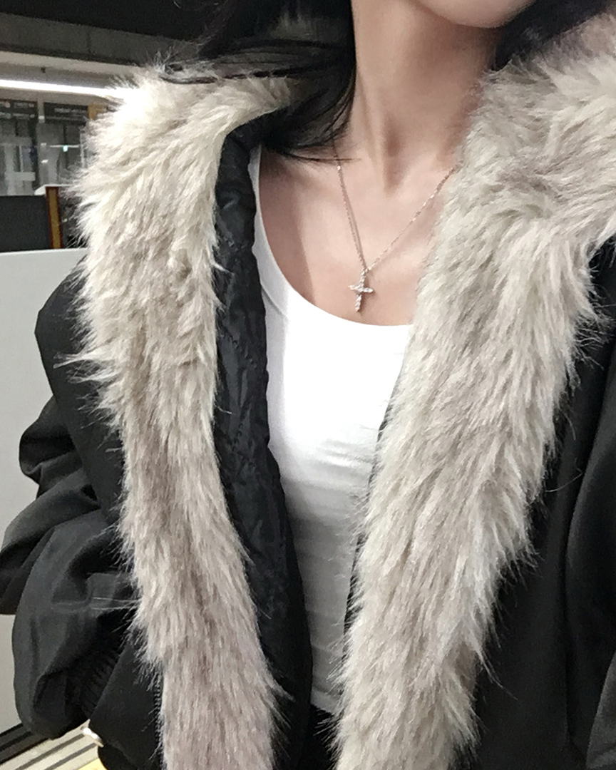 - 후드 안쪽은 퍼 안감으로 넥라인까지 포근-