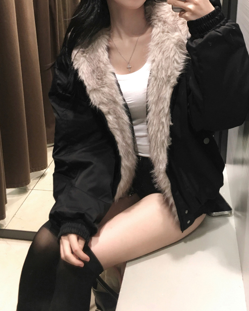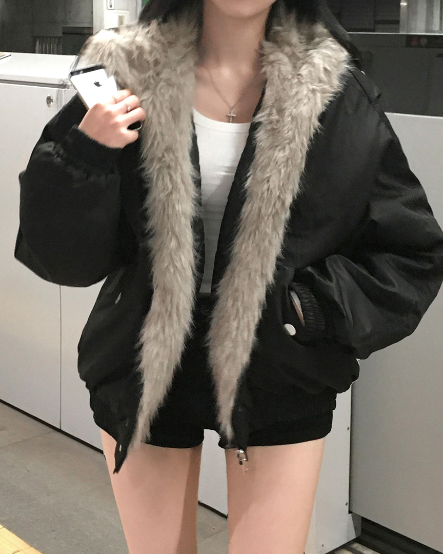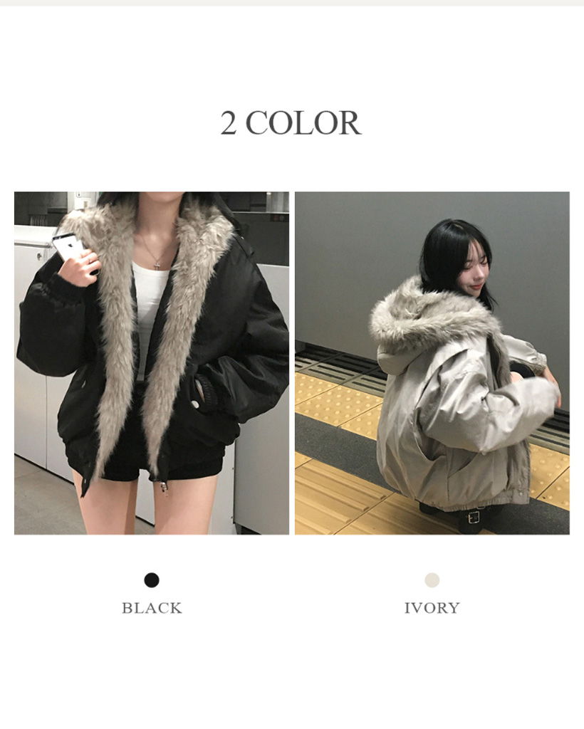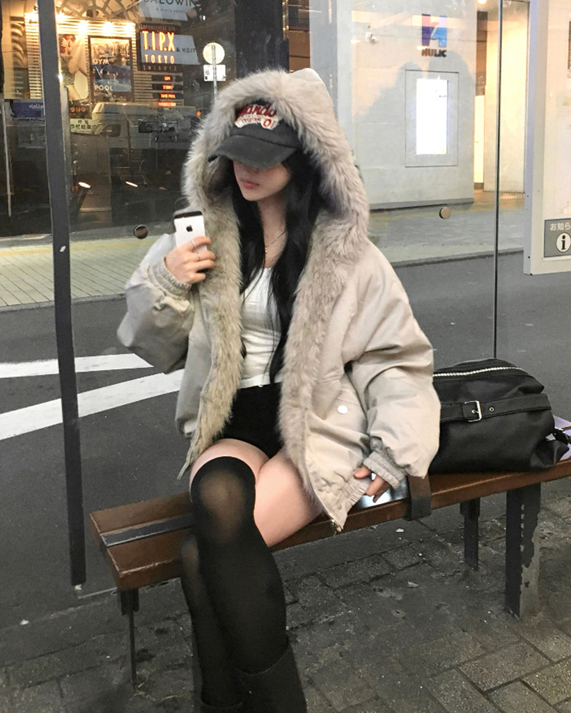 - 후드 안쪽은 퍼 안감으로 넥라인까지 포근-
