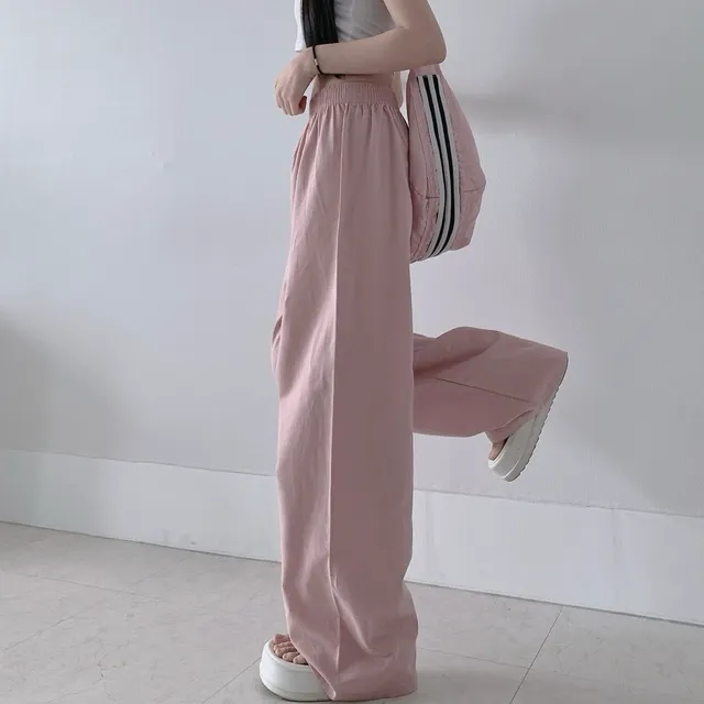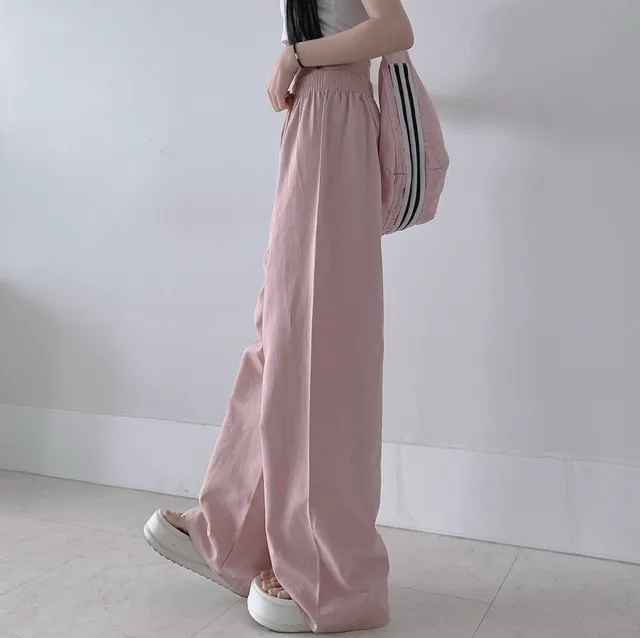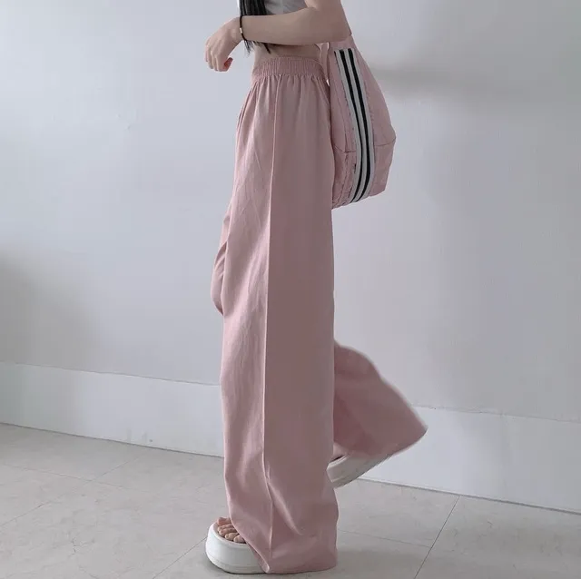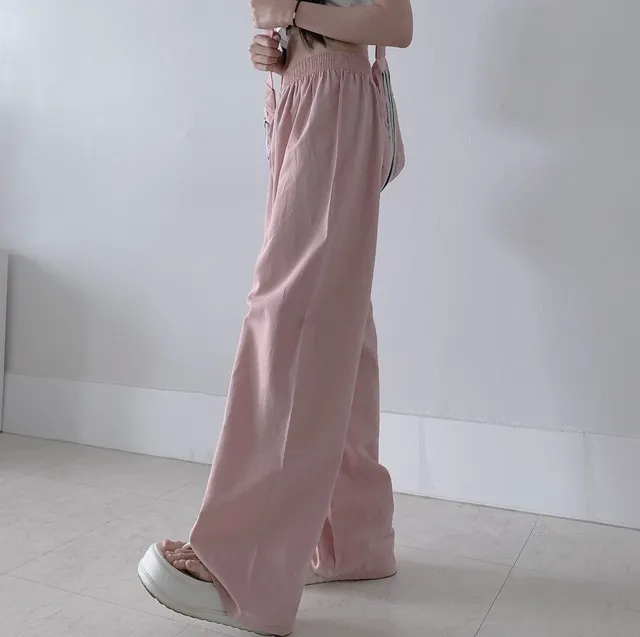 [選べる着丈] ウエストゴムリネンワイドパンツ