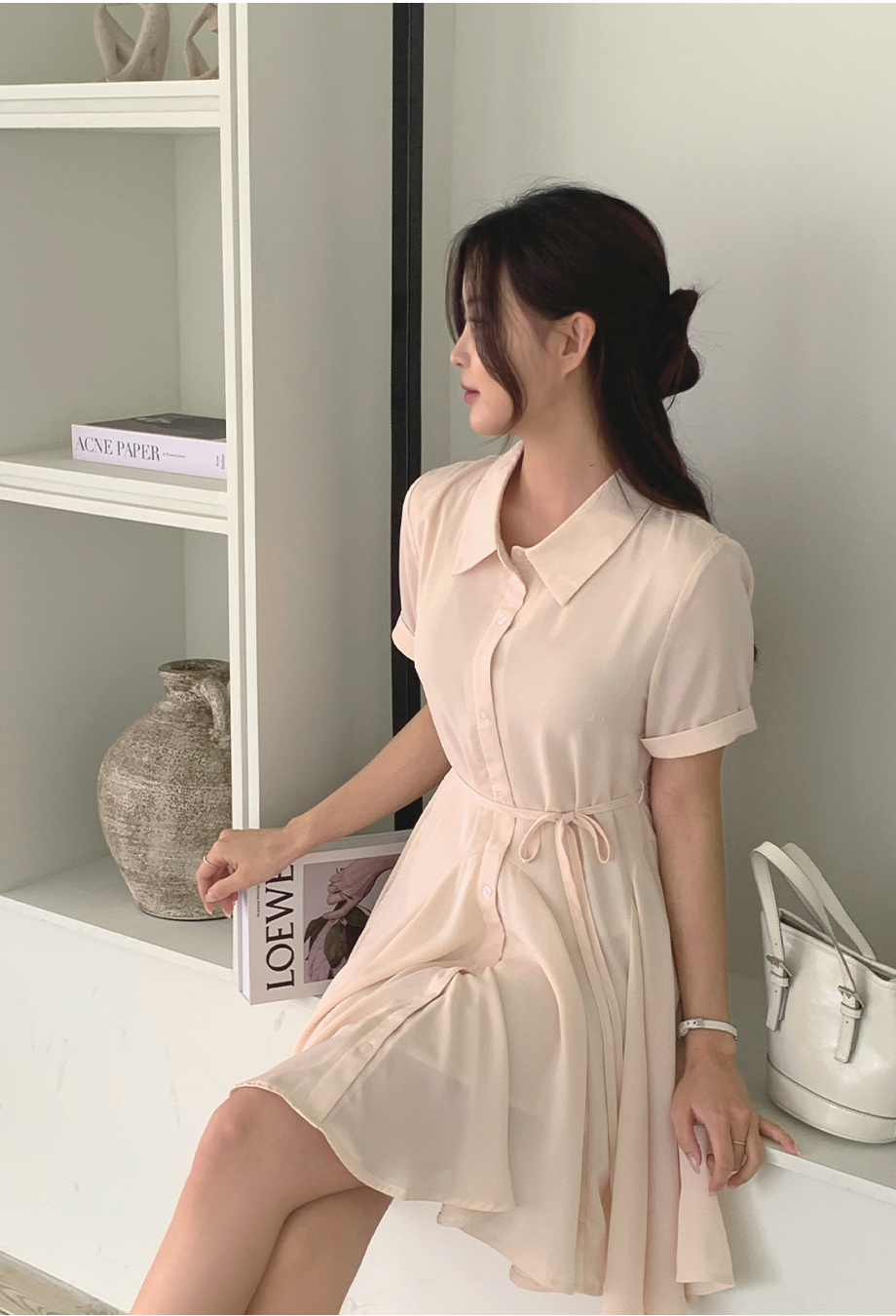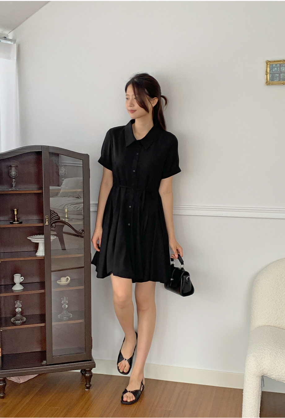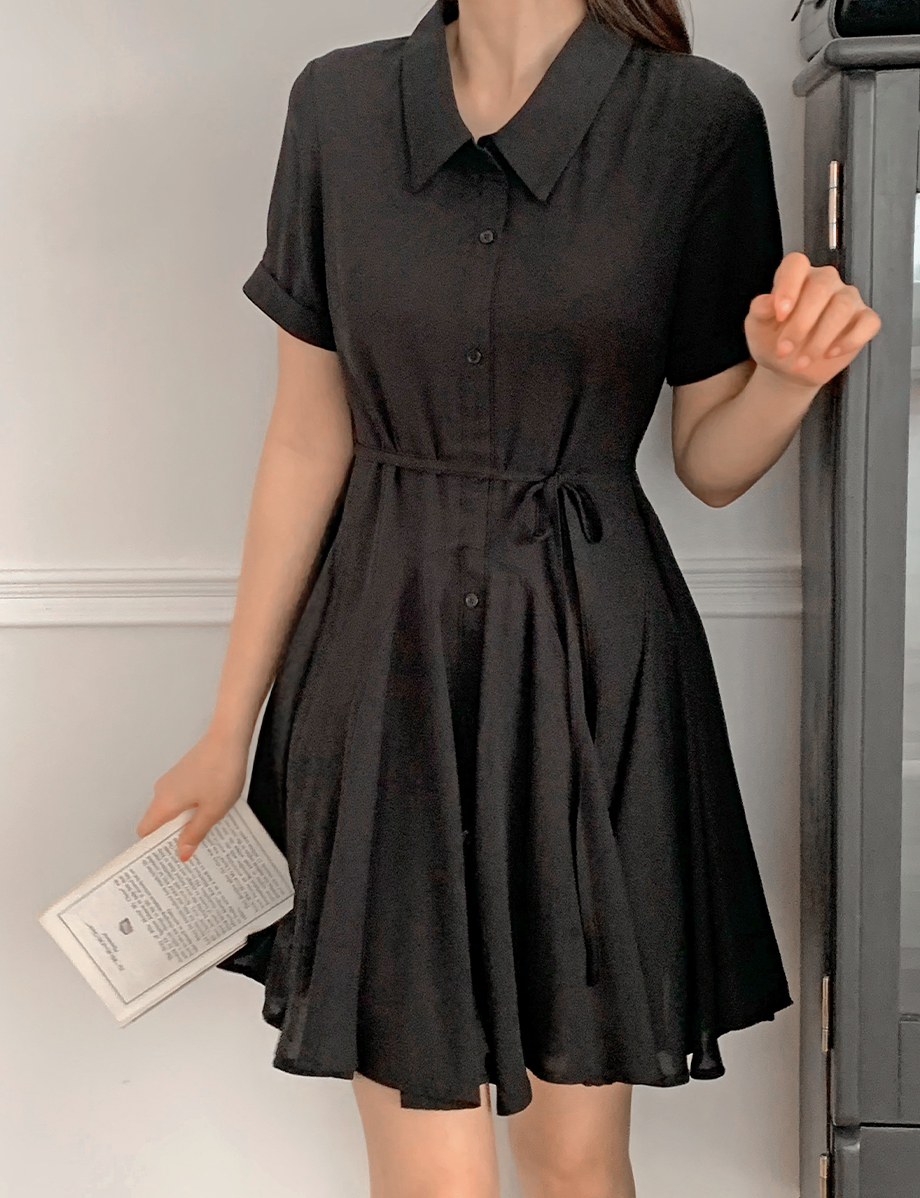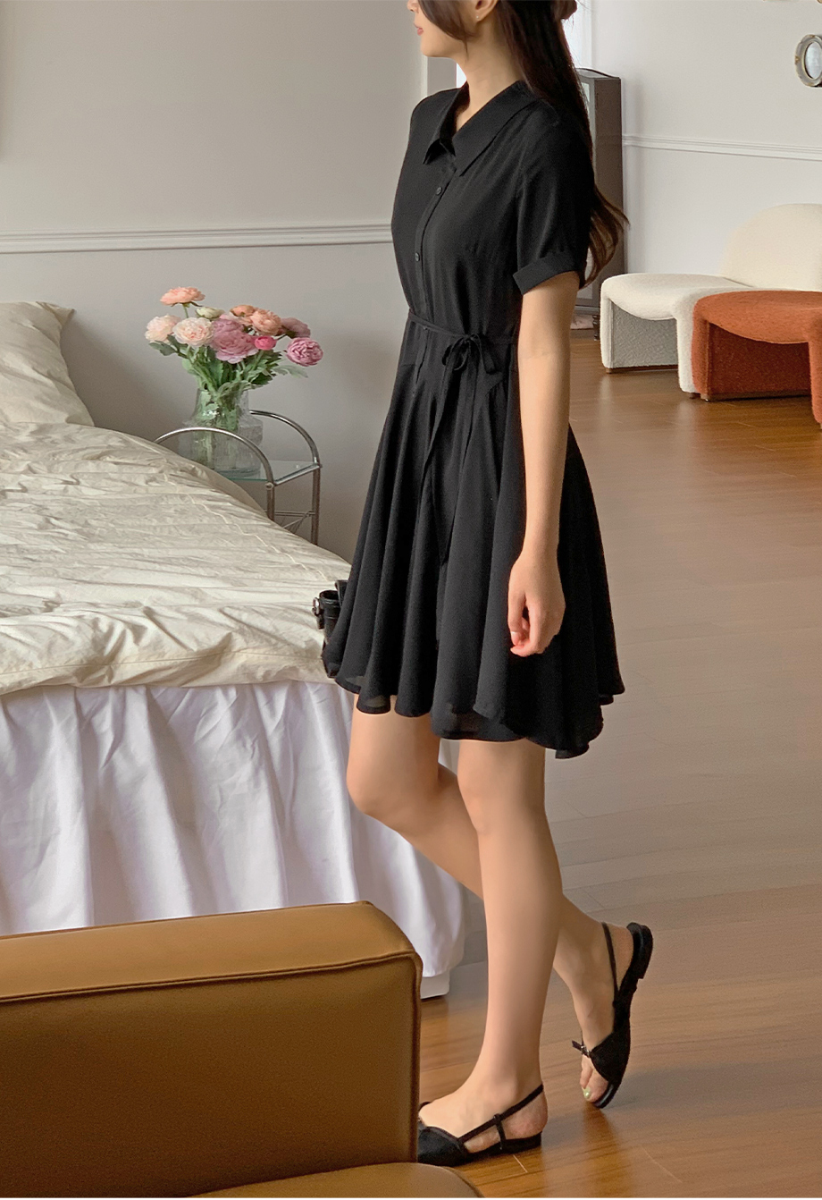 【オケージョン】シフォンカラーリボンストラップ半袖ミニワンピース