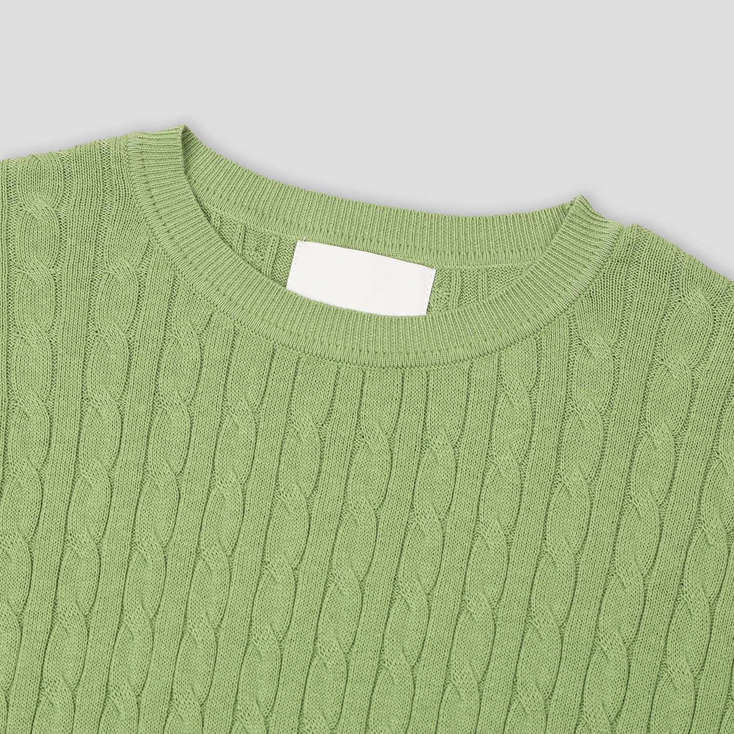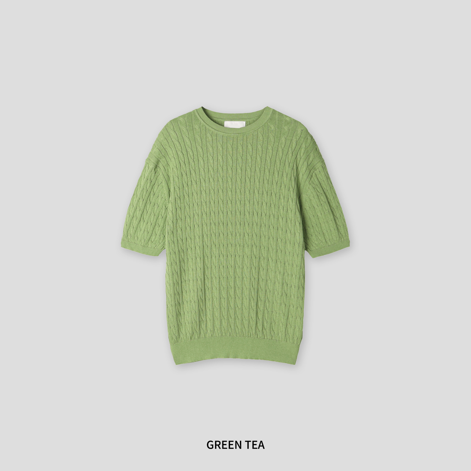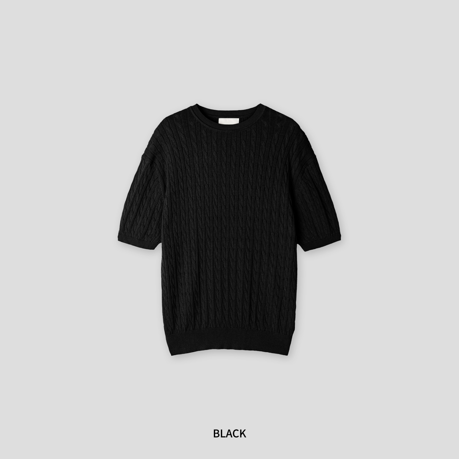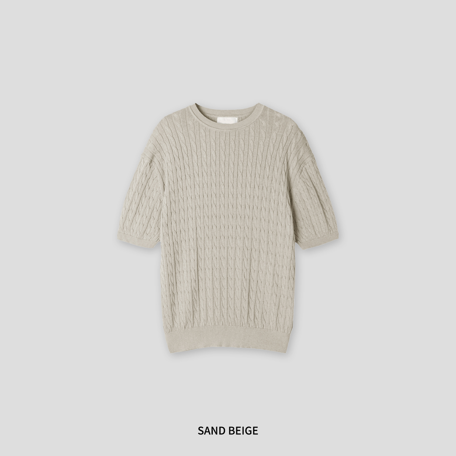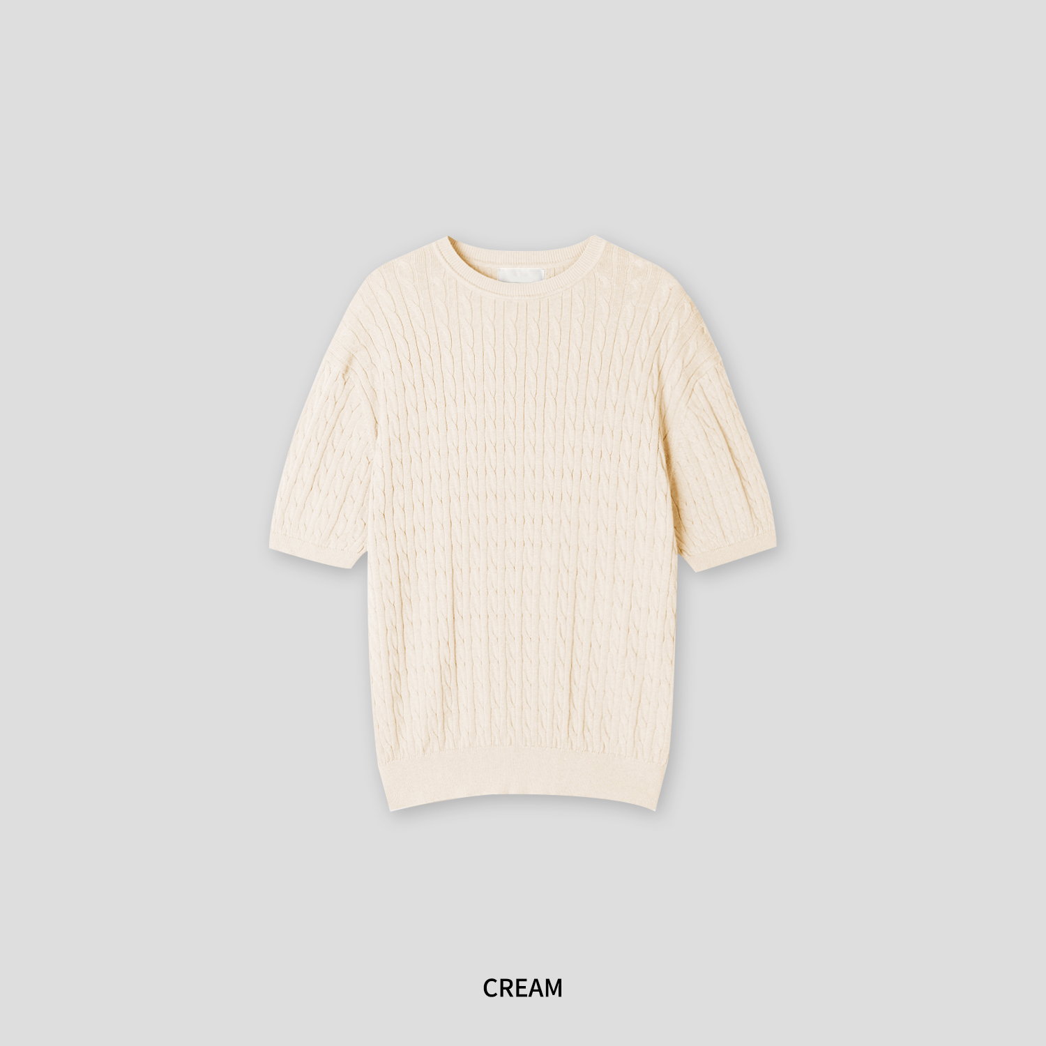 ケーブルラウンドコットン半袖ニット