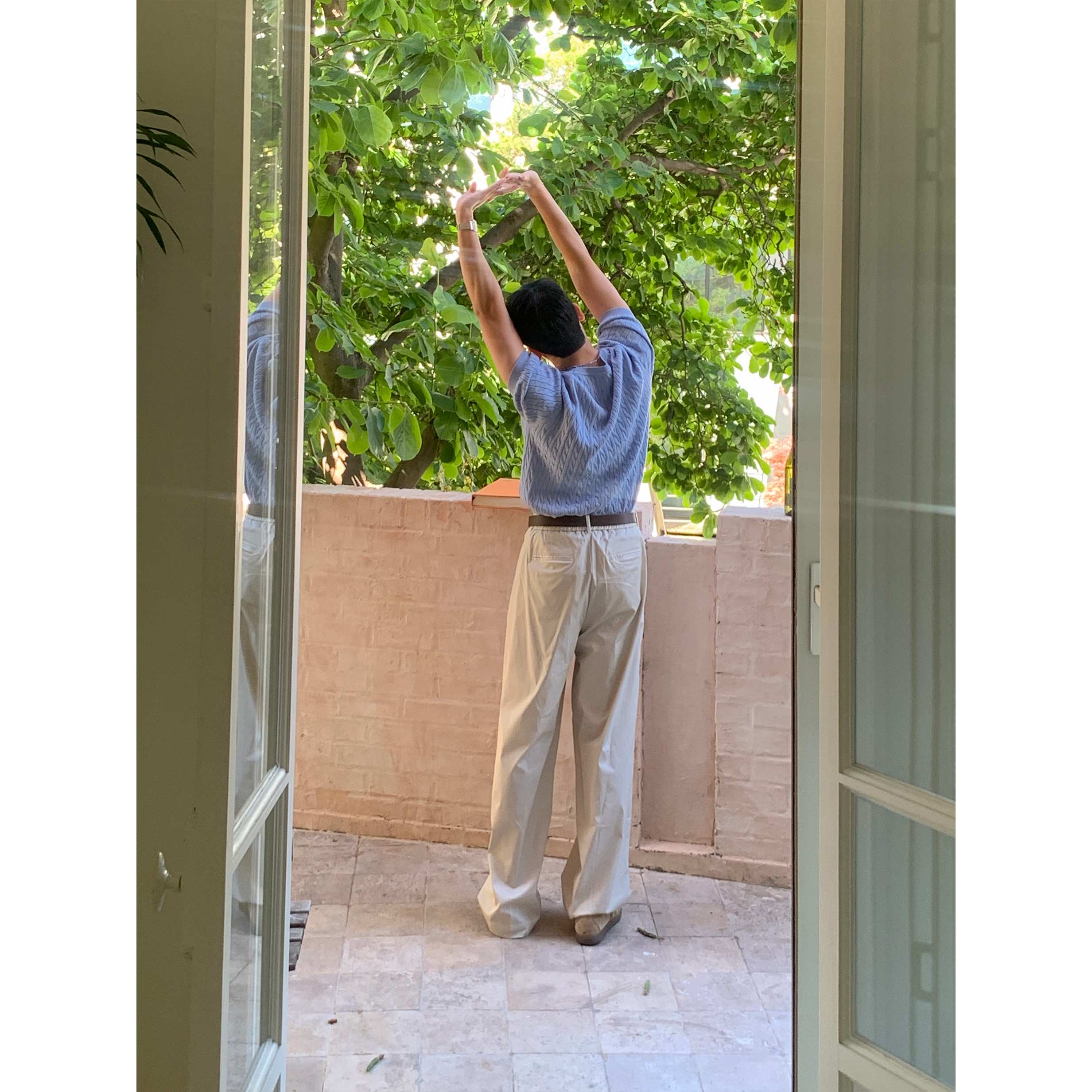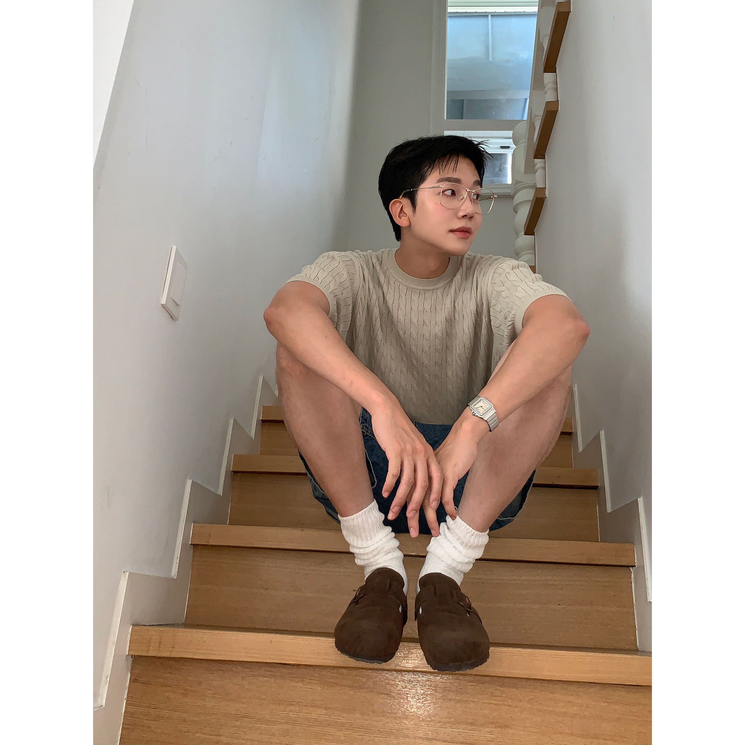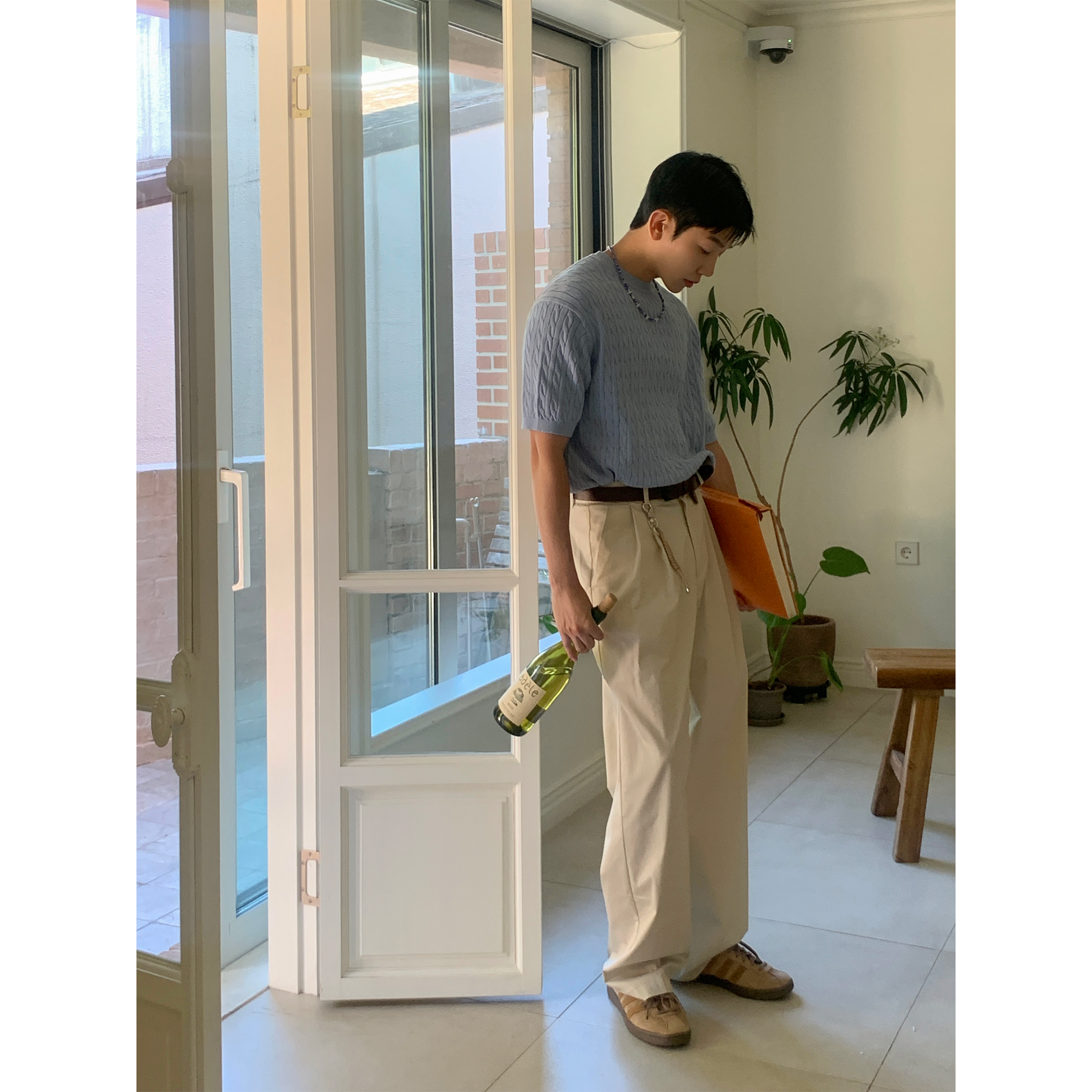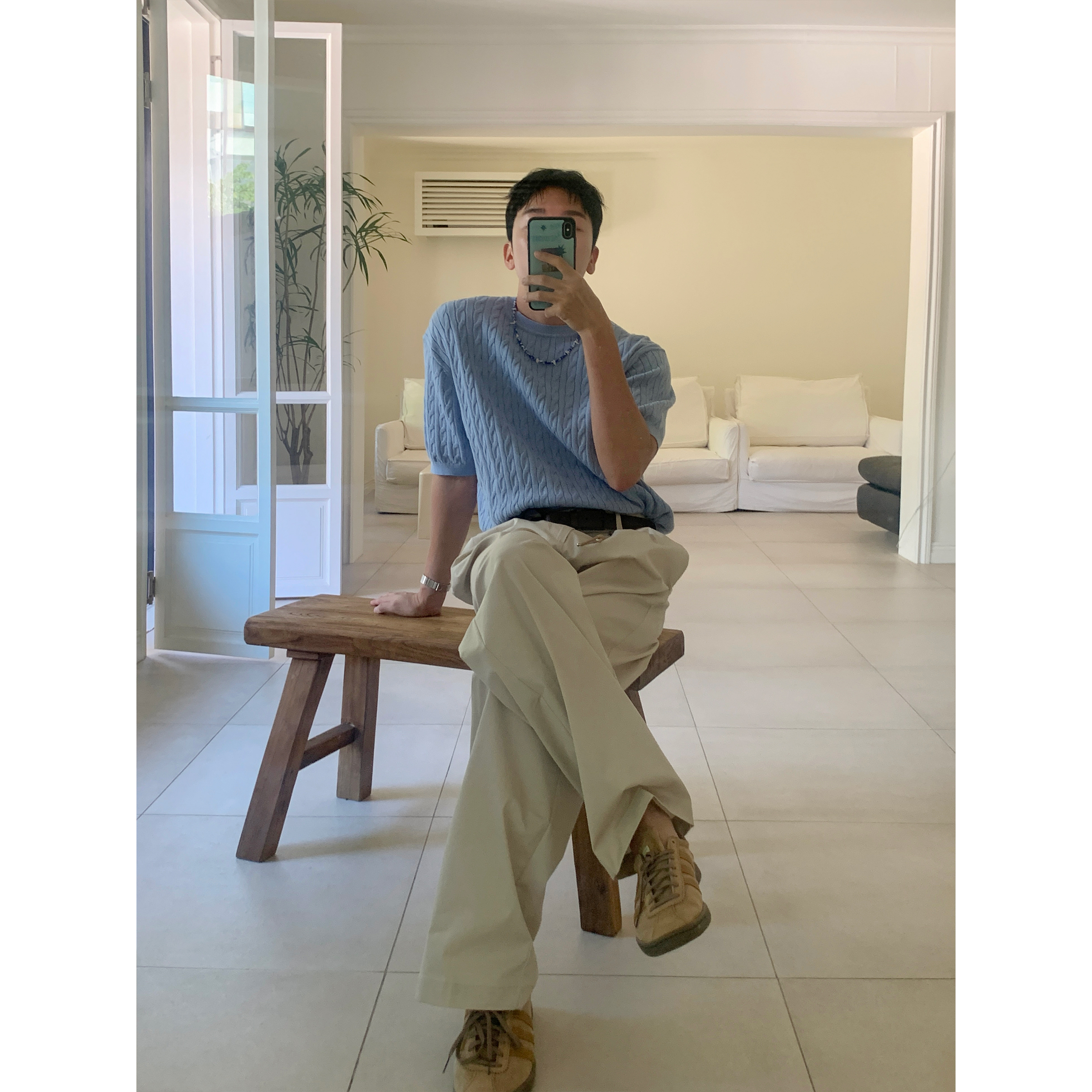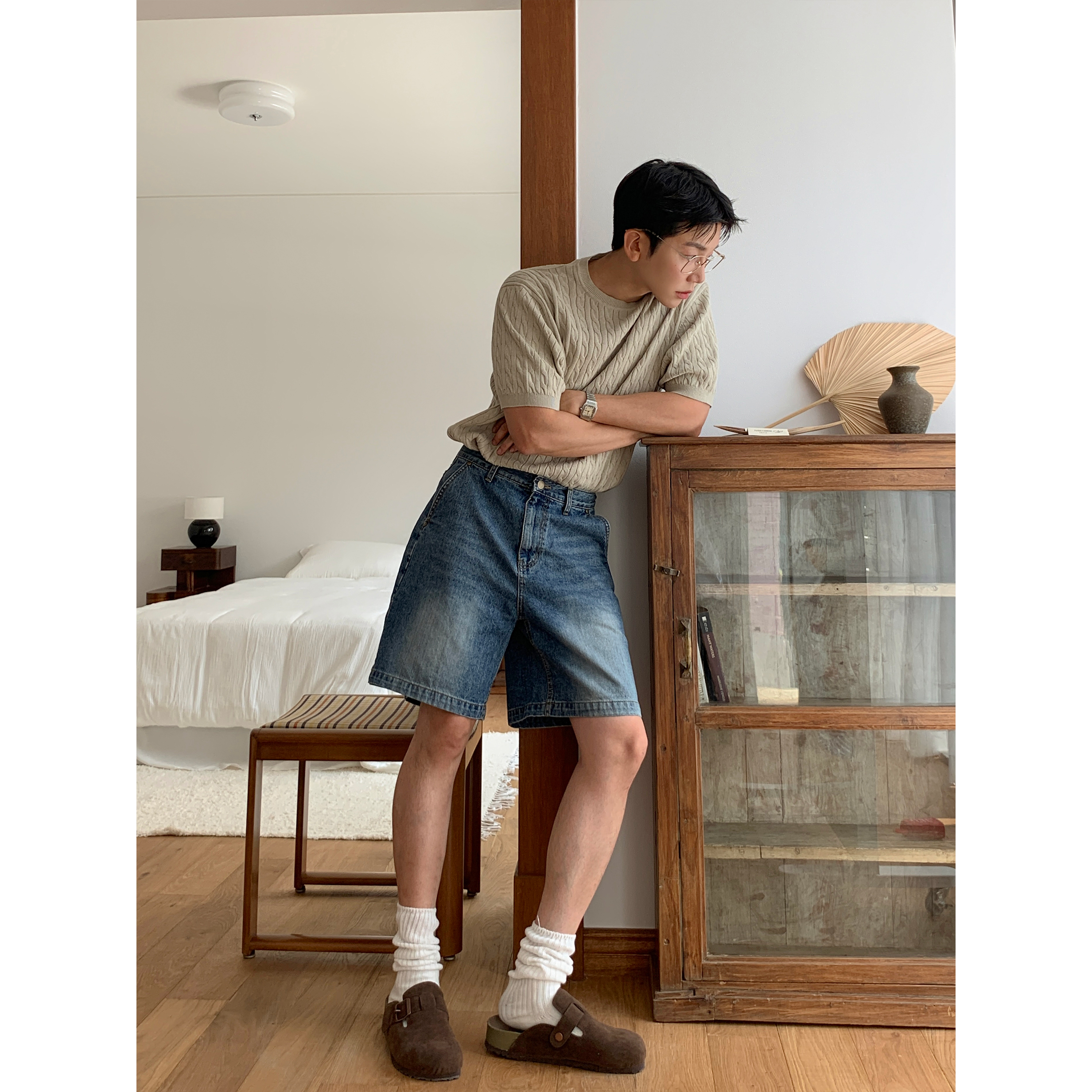 ケーブルラウンドコットン半袖ニット