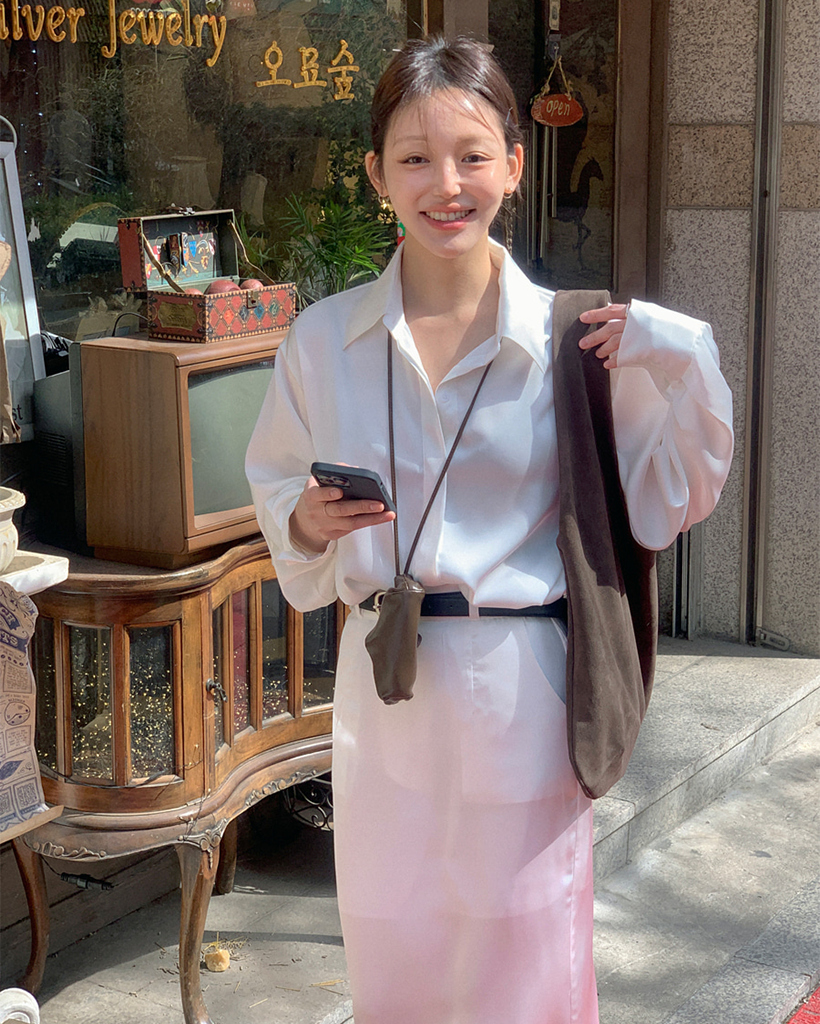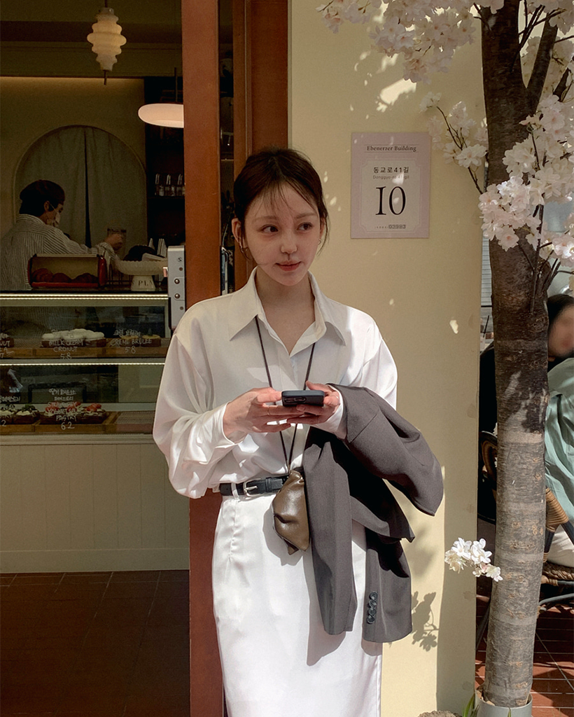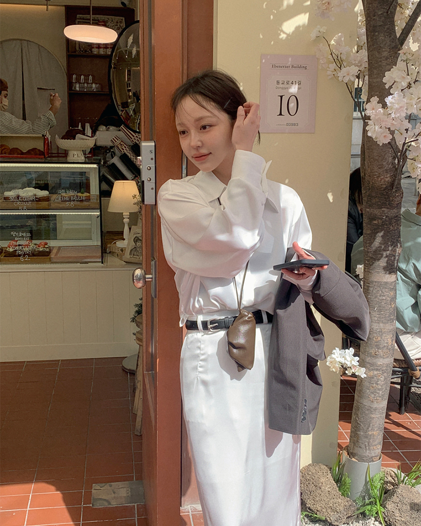 サテンブラウス